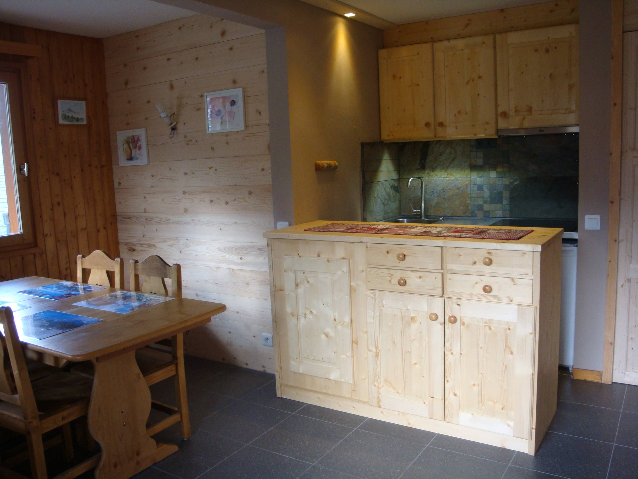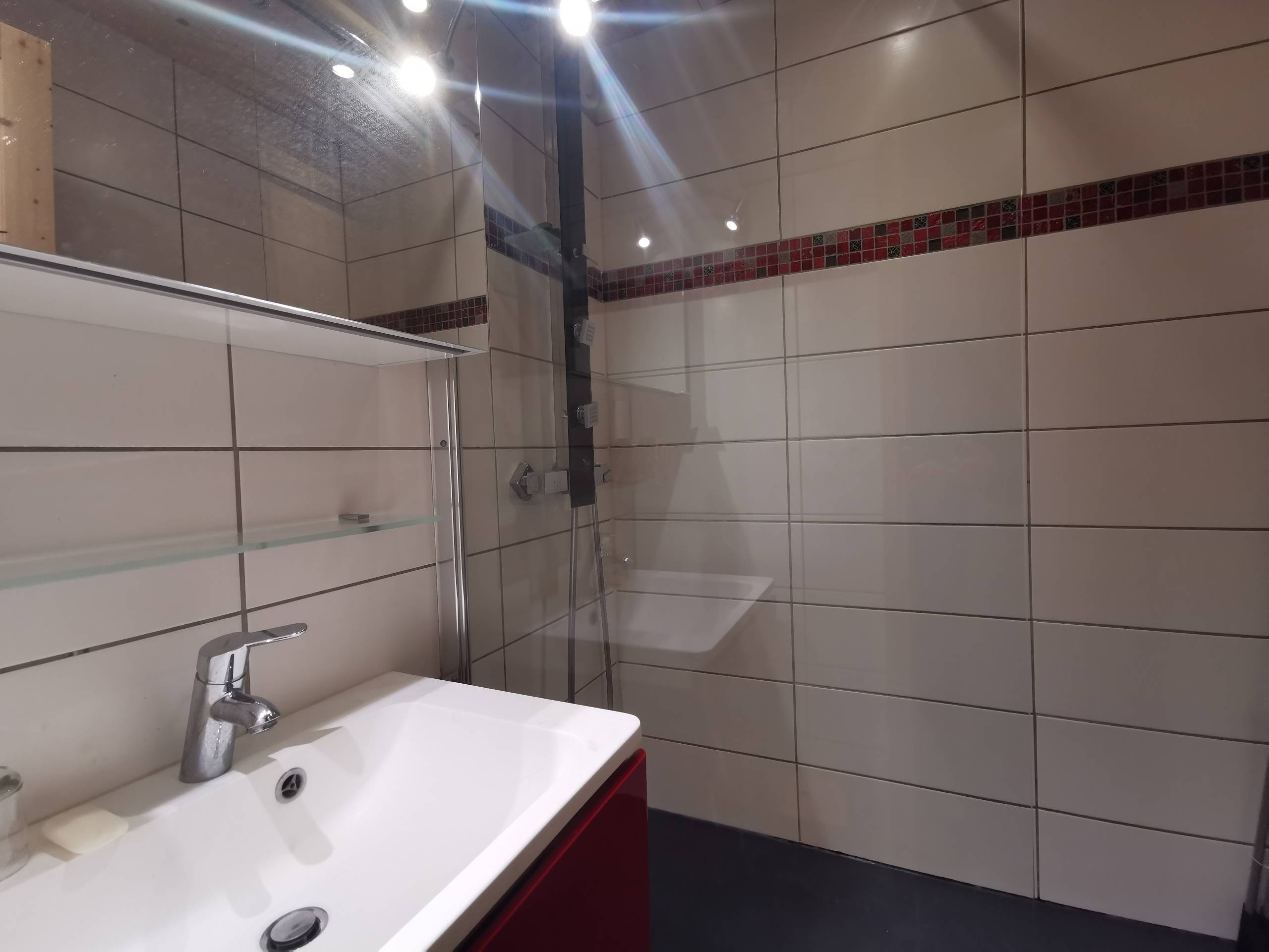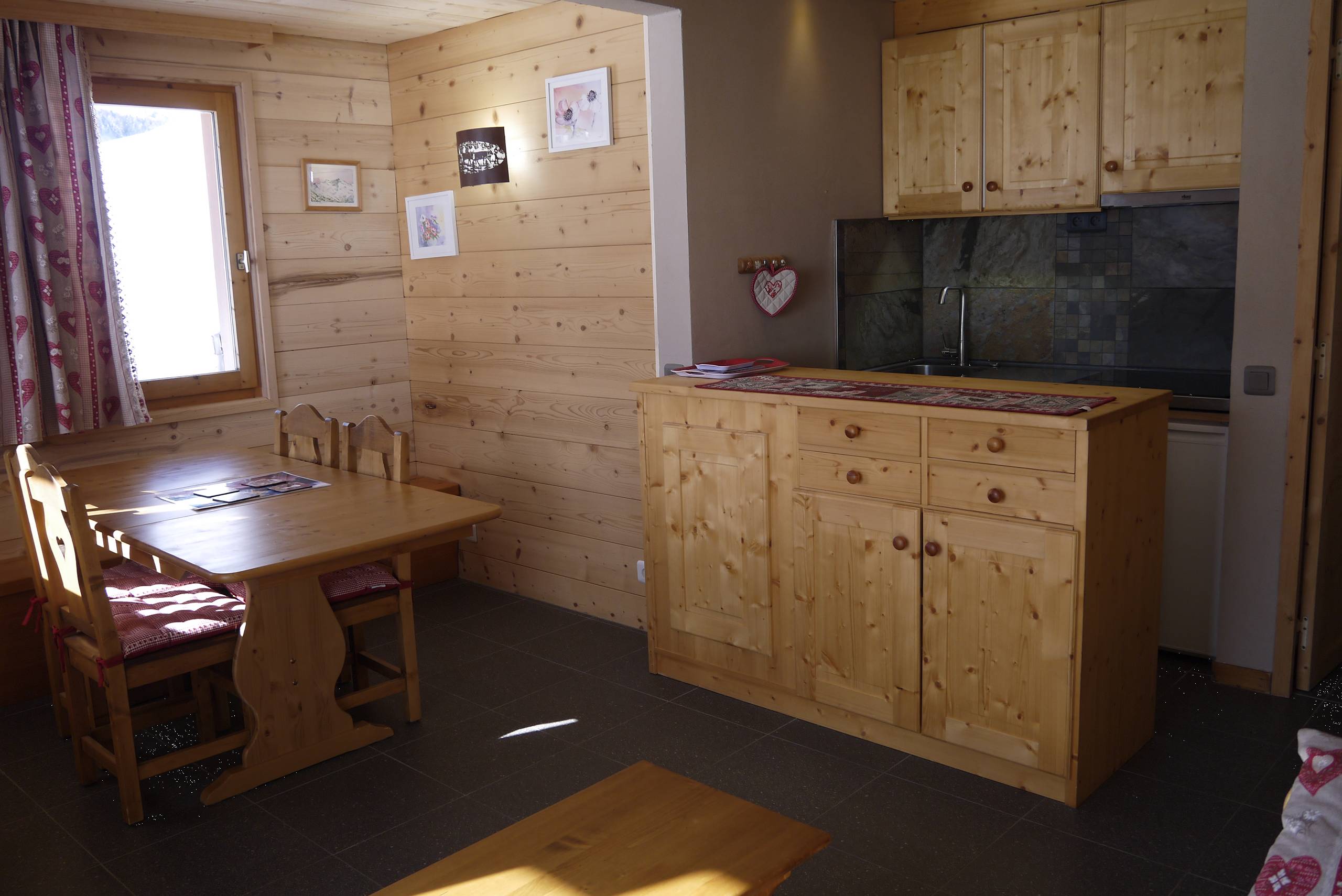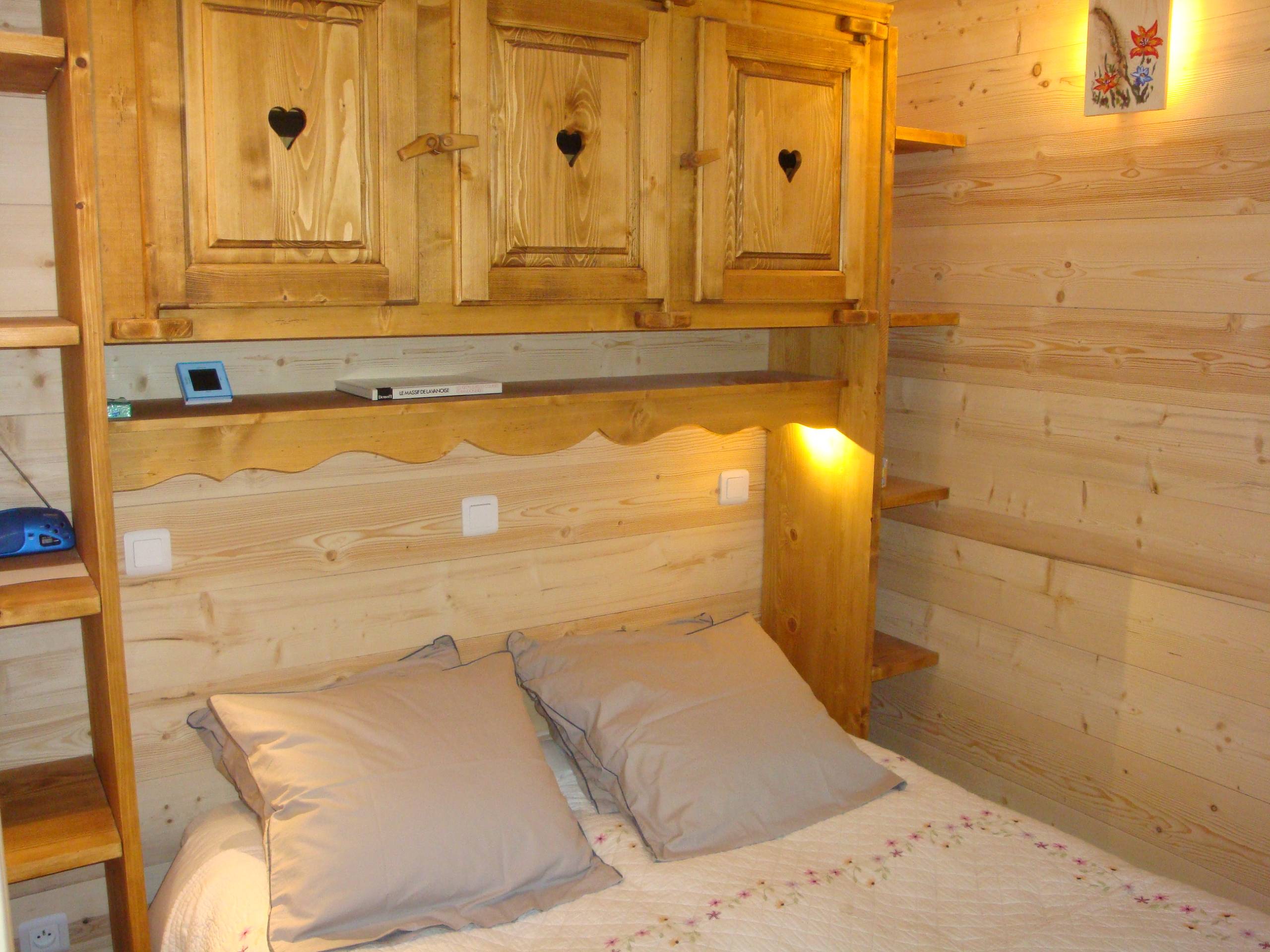Lounge with a single bed, a pull-out bed (80x190) a TV, and a balcony southern exposure. A bedroom with a double bed (140x190). The kitchen is equipped with an electric hob, an oven, a microwave, and a dishwasher. The shower room and toilets are separated. LABEL MERIBEL. 4th floor. Non smoking apartment.