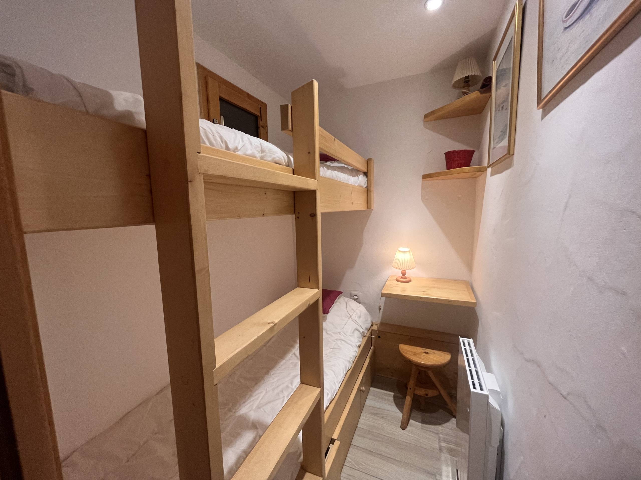 Apartment without TV. Apartment composed of an entrance hall leading to a separate toilet, a bathroom with bathtub, a cabin with a set of bunk beds (70x190) and a living room with a sofa bed (140x190). Kitchenette equipped with dishwasher, oven, 2-burner ceramic hob, toaster, kettle, Nespresso coffee machine, and 1 filter coffee maker. Non-smoking apartment /Pets not allowed