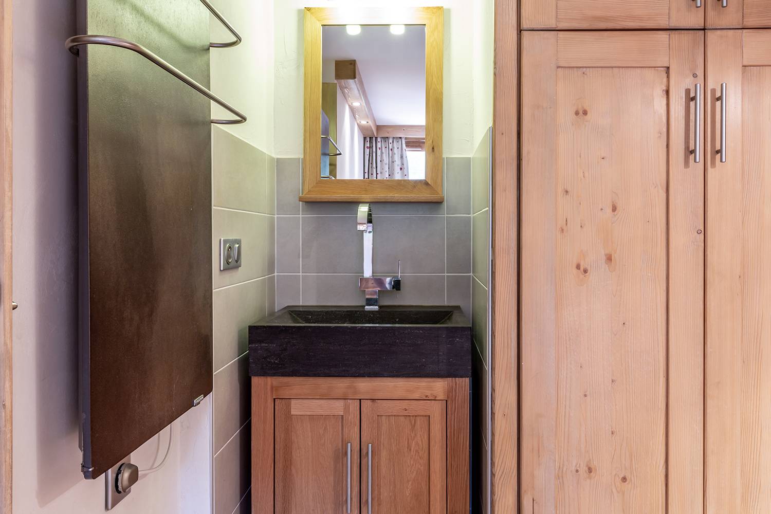 Shower room, wc. Balcony, ski locker and a lift in the residence.