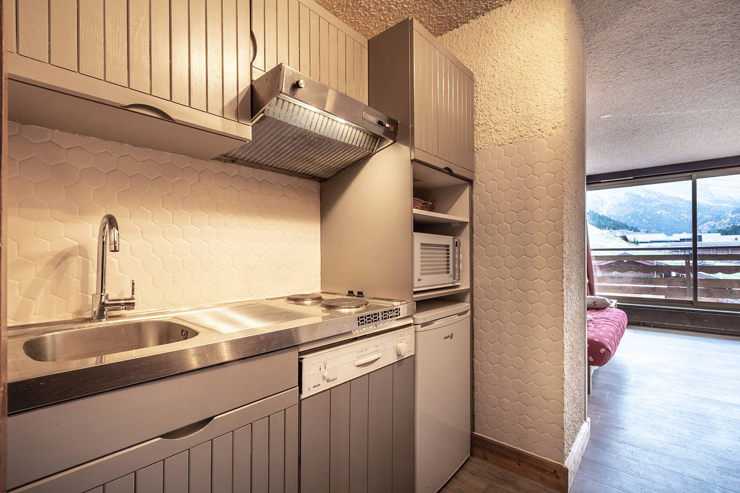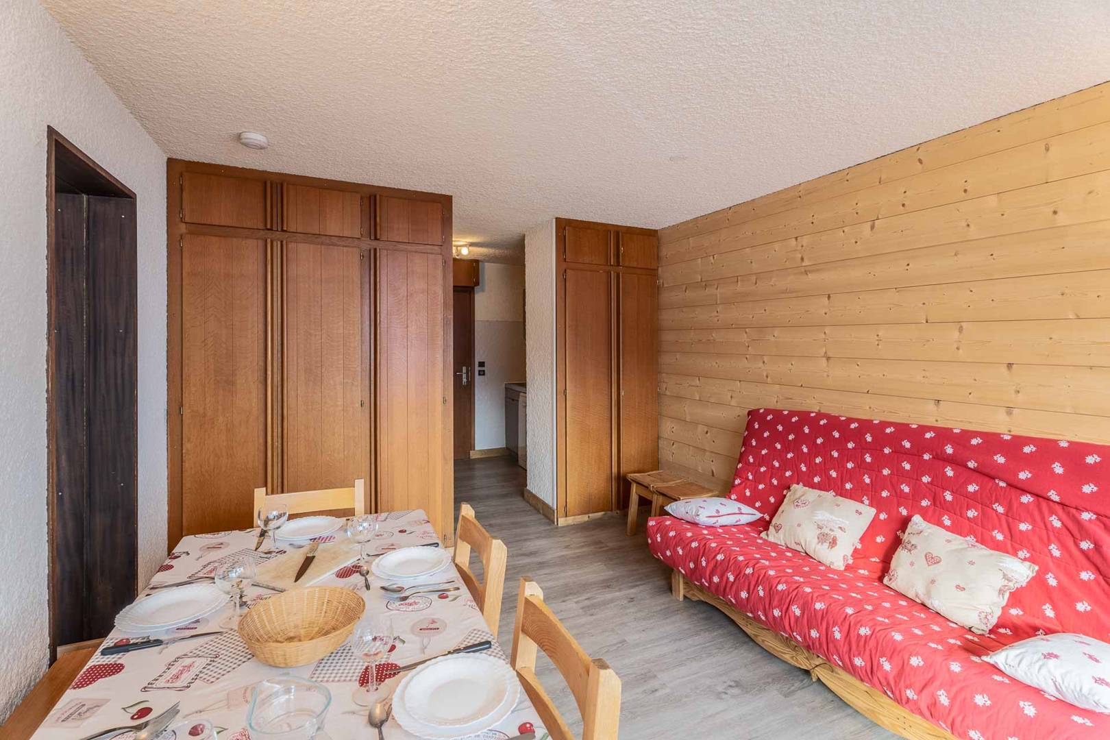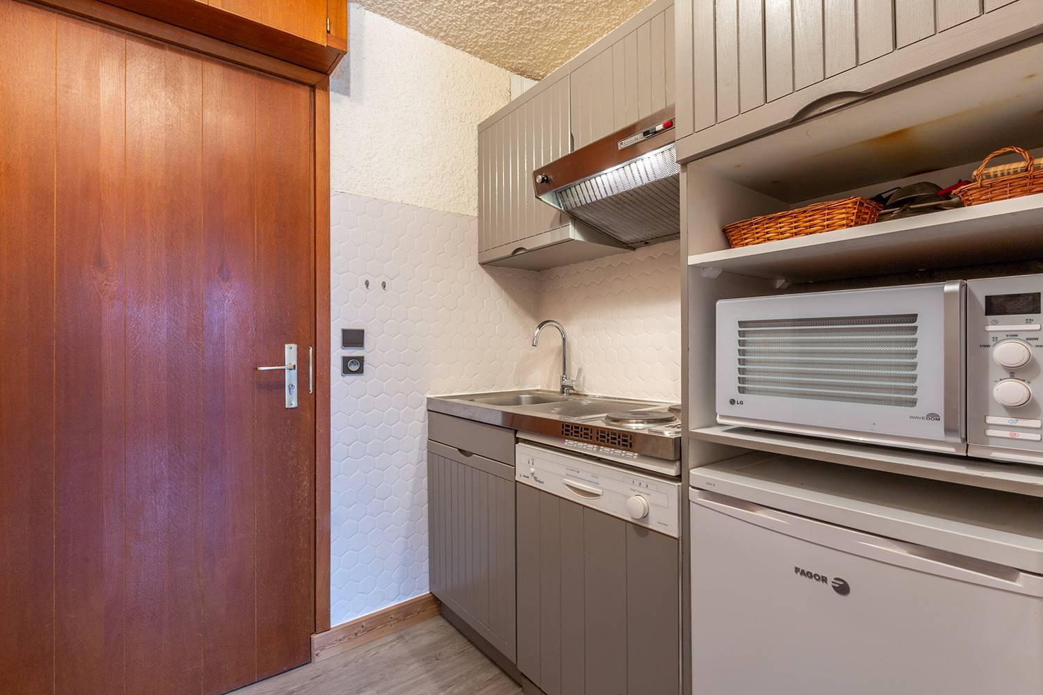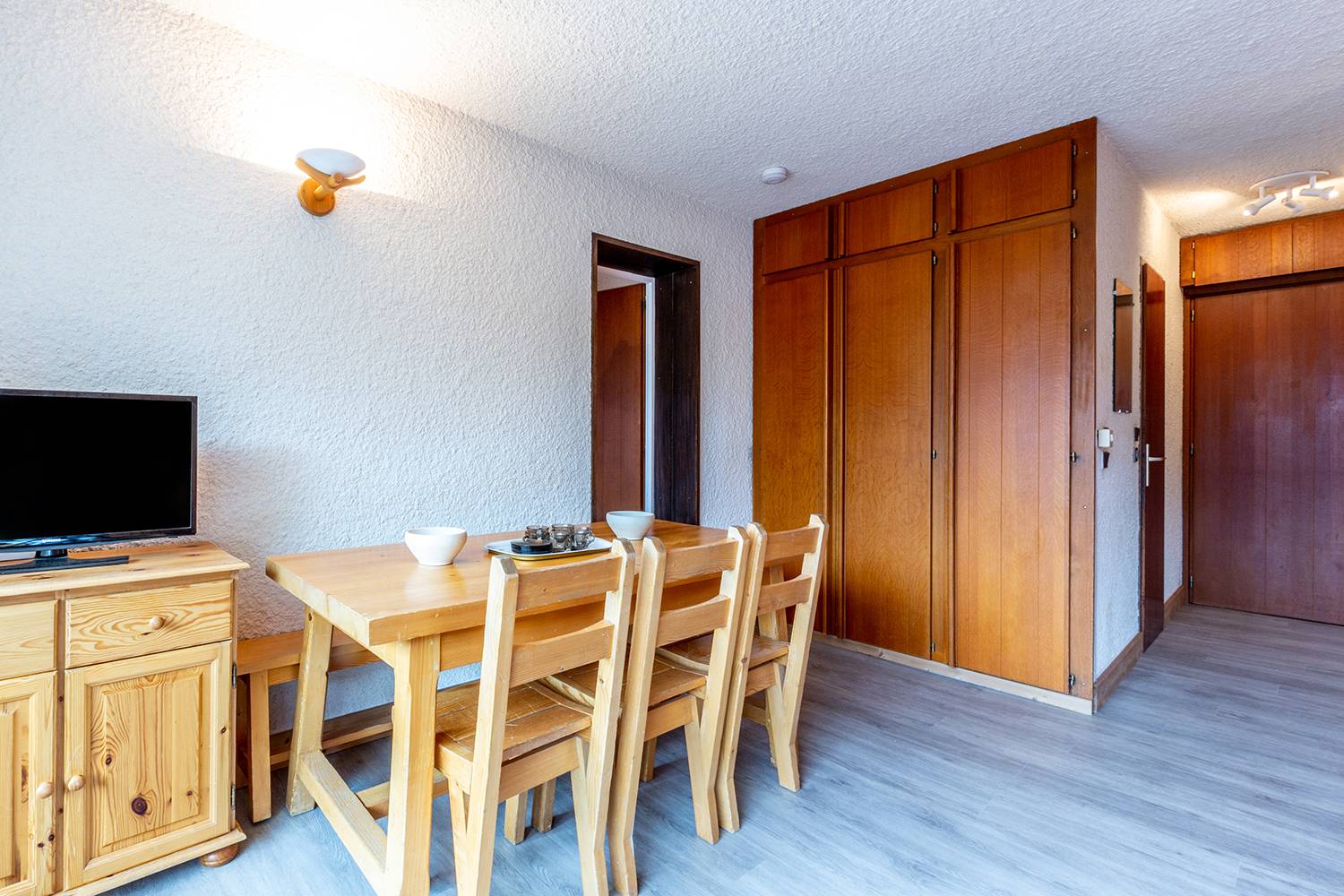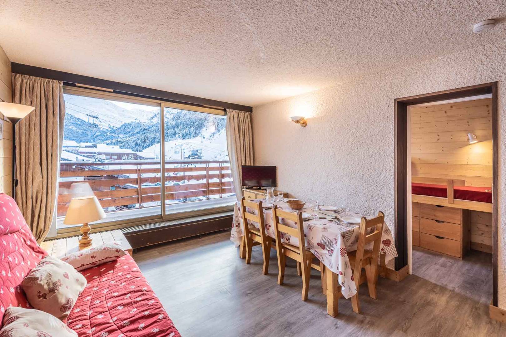 Living room with a sofa bed, television. Bedroom with 3 bunk beds. Equipped with hob, microwave, dishwasher and refrigerator. Bathroom with toilet. Balcony, ski locker and a lift in the residence. Non smoking apartment. Pets forbidden.