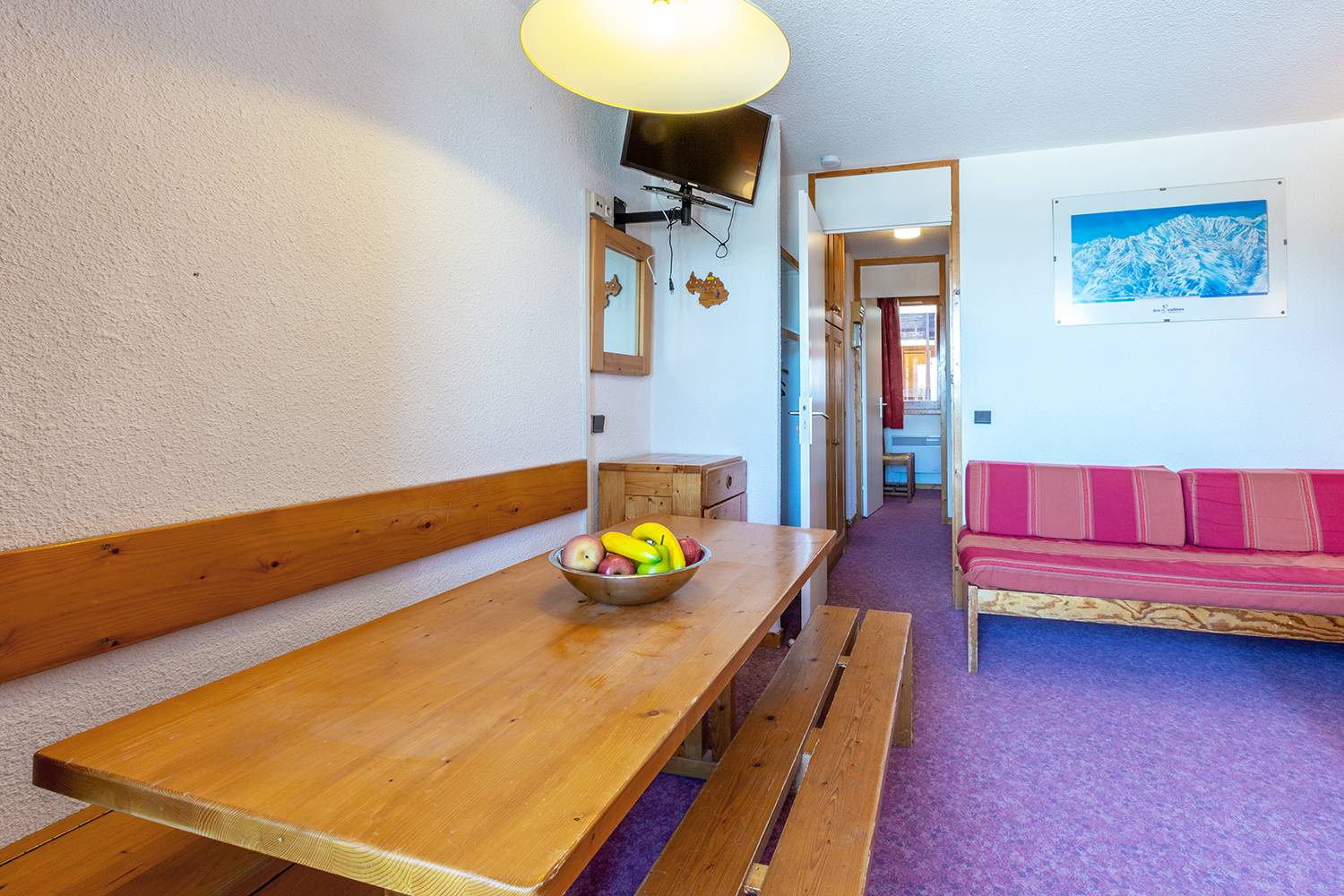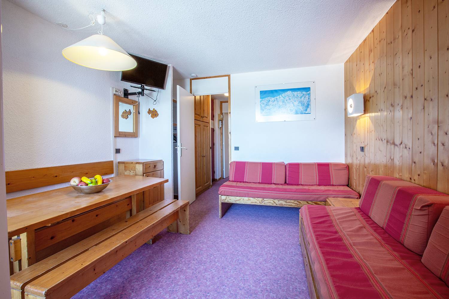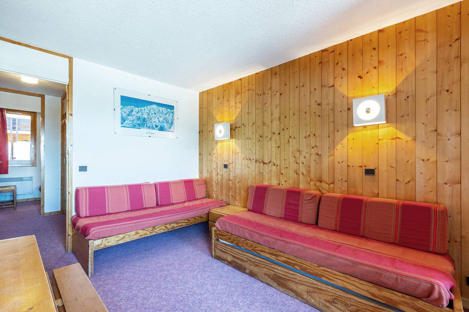The lounge is equipped with 2 single beds and a trundle bed (80x190), a TV, and a balcony. The bedroom features 2 single beds (80x190). The kitchen is fitted with a glass hob, a dishwasher, oven, fridge, toaster, kettle and coffee maker. The bathroom and toilets are separate. WIFI. Ski loker and lift in the residence. 2nd floor. BED LINEN AND TOWELS NOT INCLUDED.