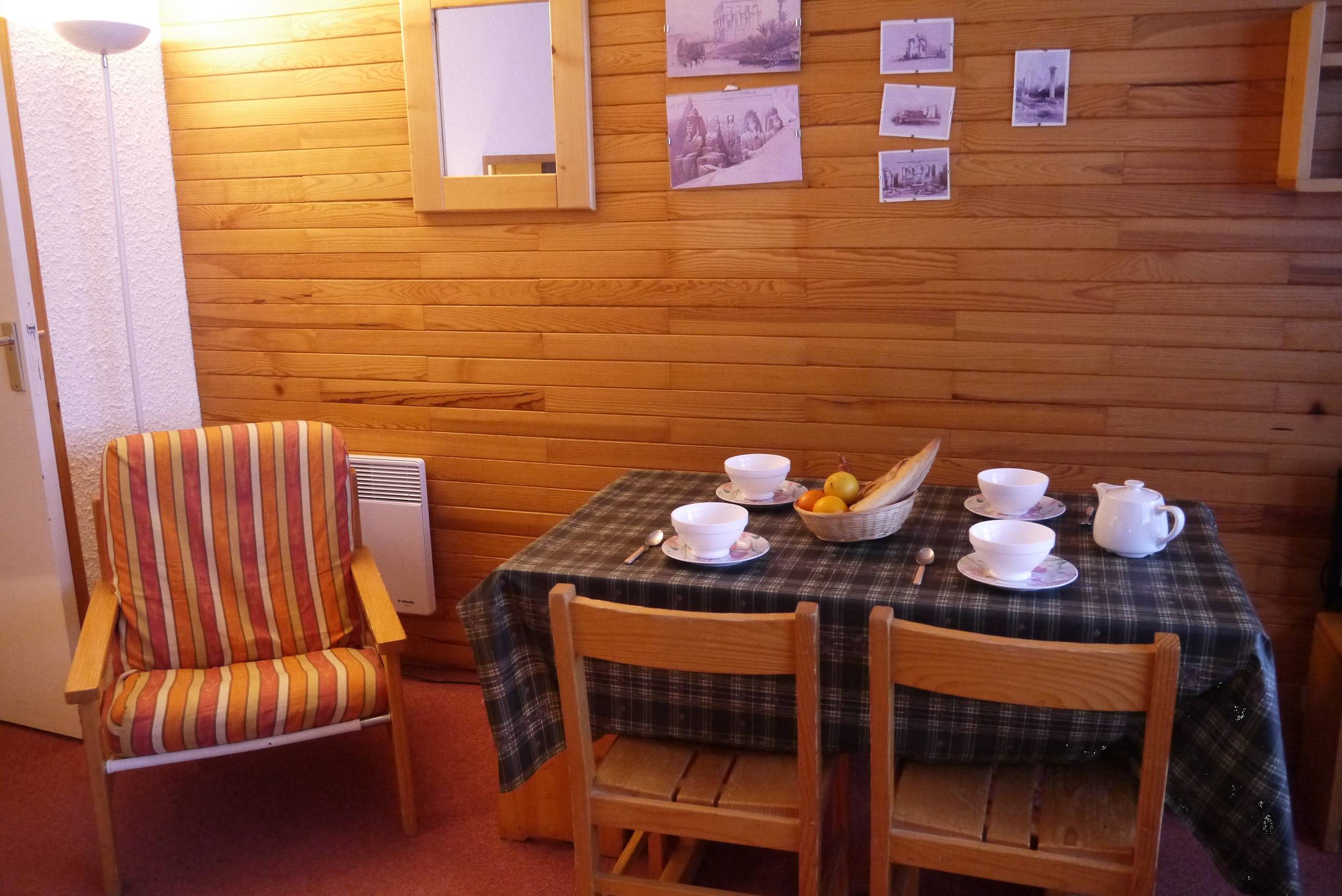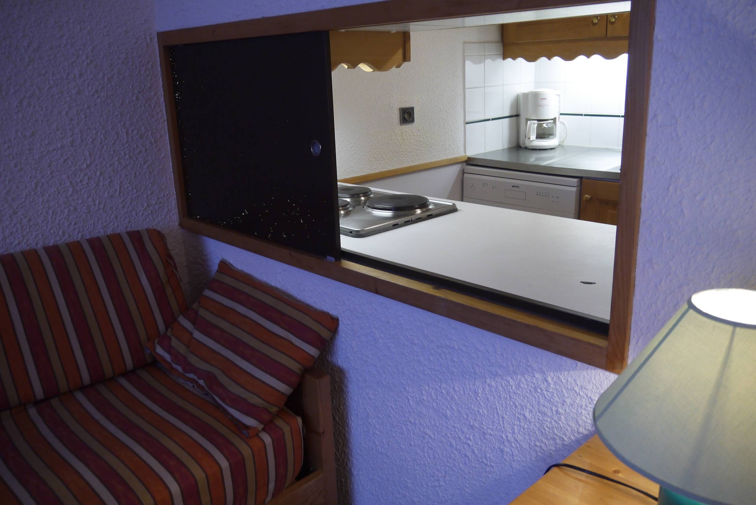 Bedroom with 2 single beds (80x190). Equipped with electric hob, oven, dishwasher, refrigerator, toasrer, kettle, coffee maker. Bathroom and separate wc. Balcony. Non-smoking apartment. Pets forbidden. Ski locker in the residence. 2nd floor.