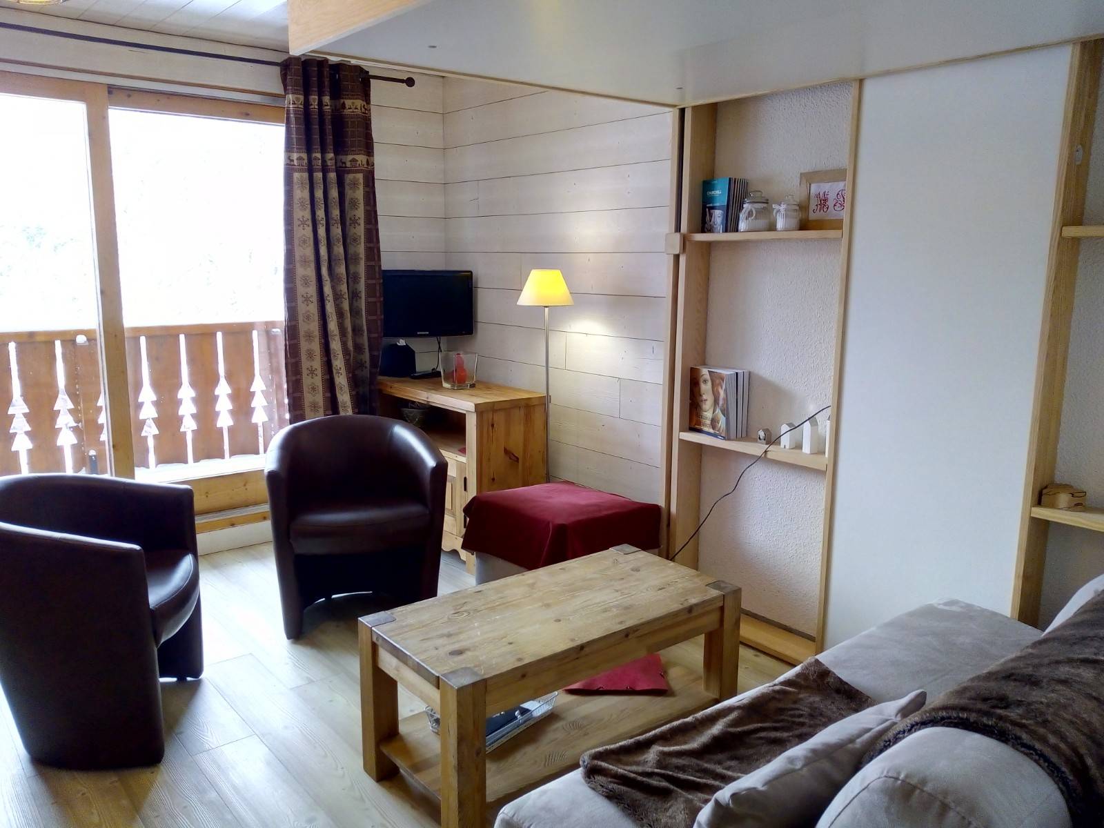 Comfortable open living room with a sofa bed. (the bed on high slides is not available for rental). South facing with a panoramic view of Mont Vallon. A room with a double bed (140x190) and a bunk double bed (80x190).