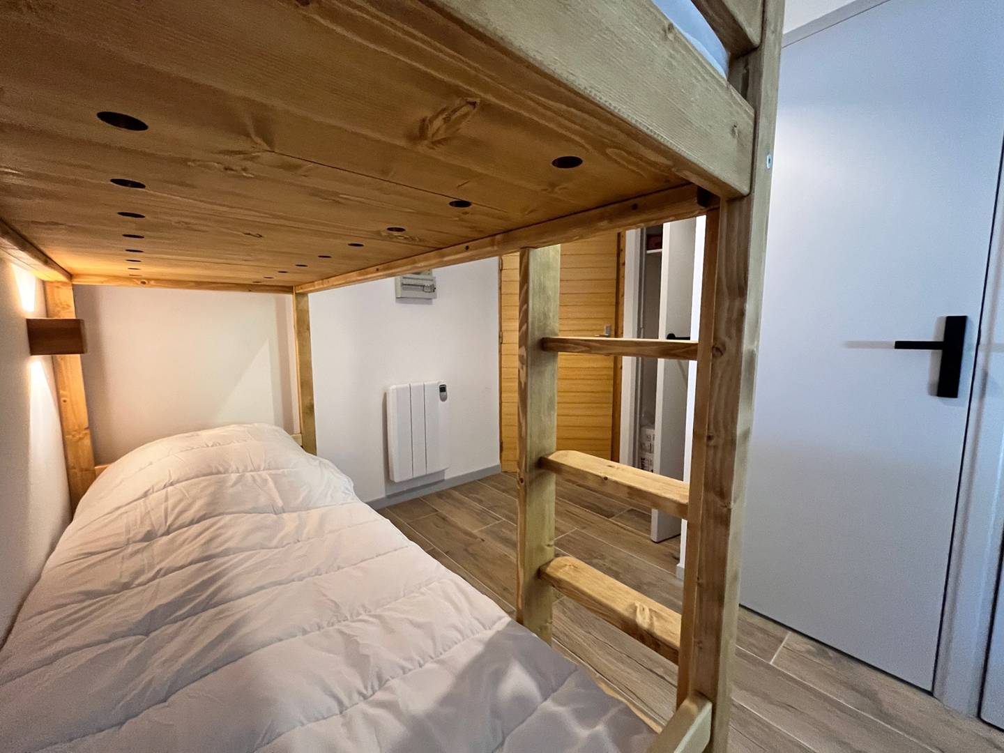 A sleeping alcove can accommodate up to three people: bunk beds and a pull-out bed (sleeps 3 singles 80×190).