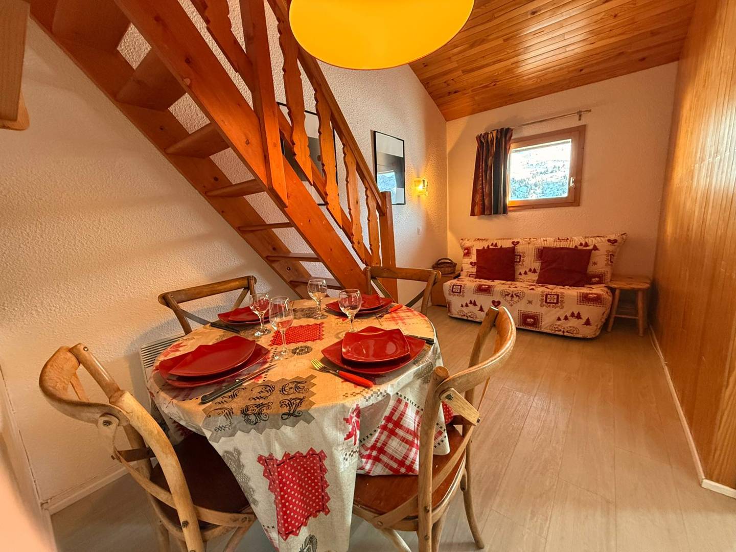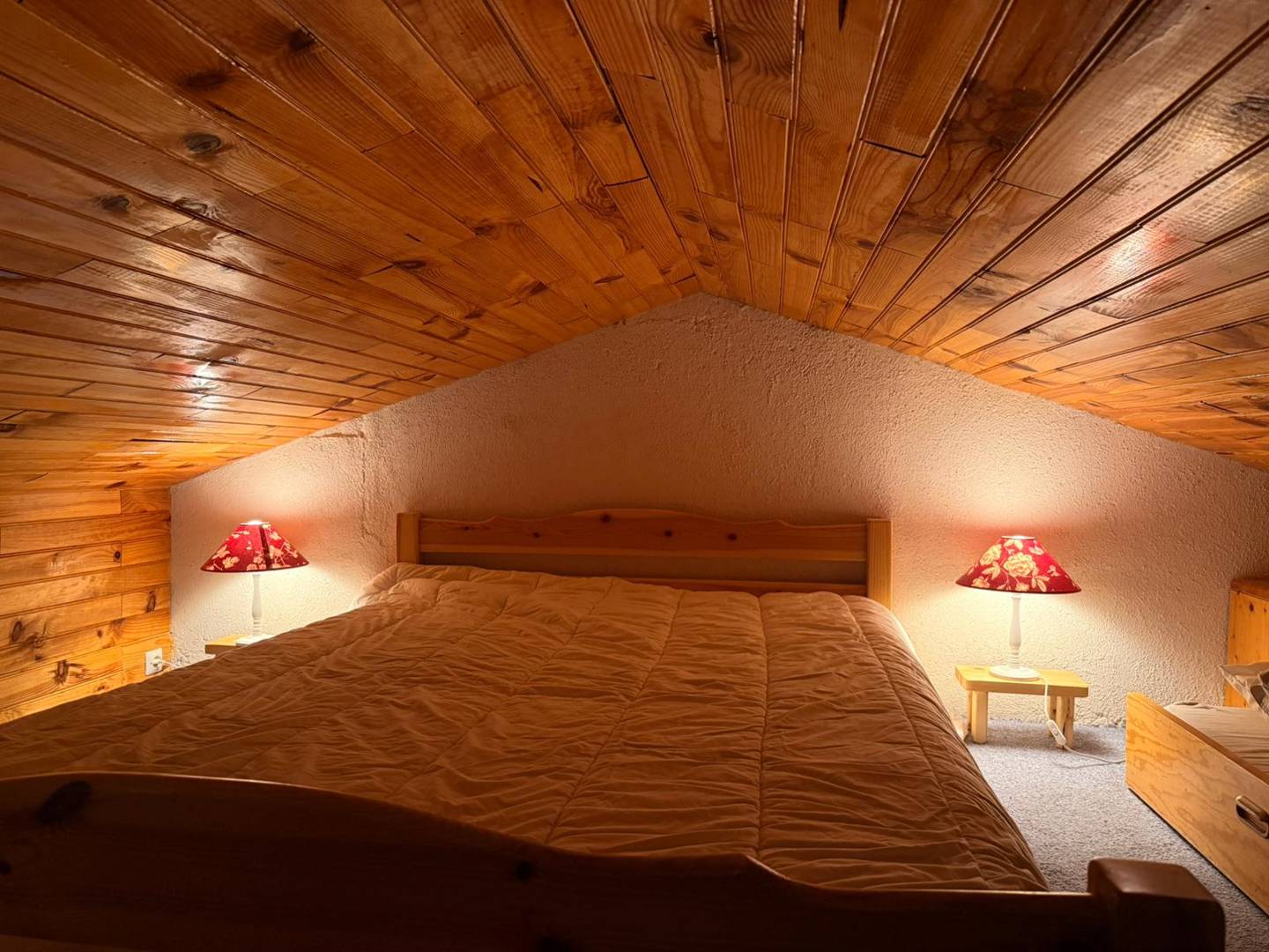 A very low-ceiling mezzanine with a double bed (no skylight). Bathroom with whirlpool bathtub. Separate WC. Balcony with a beautiful view of the ski slopes. Ski locker and elevator in the residence. Non-smoking apartment / Pets not allowed.