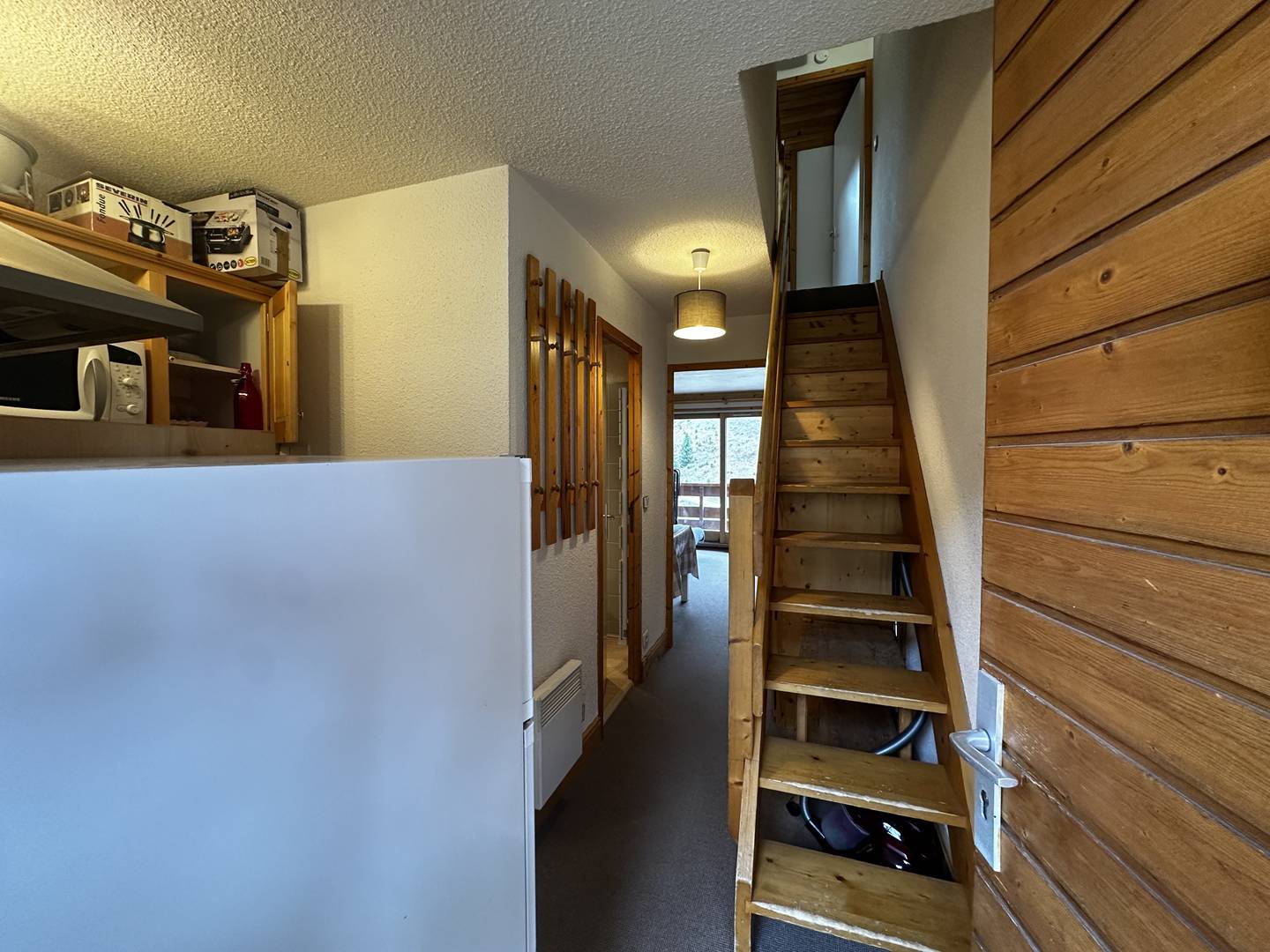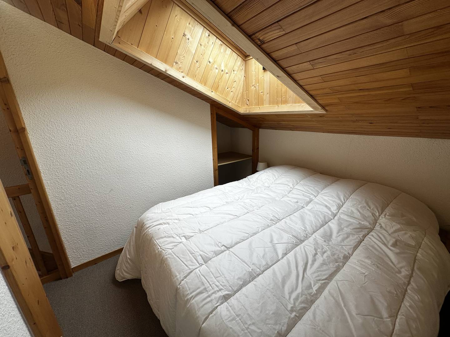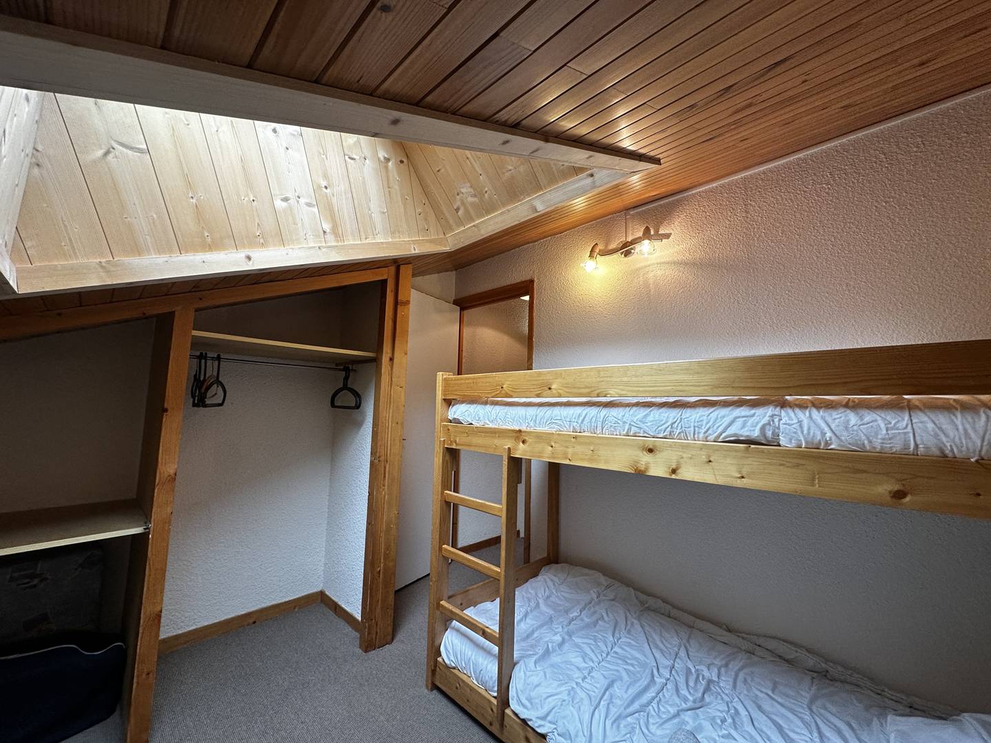 Upstairs, a double bedroom with bathroom and a bedroom with a single bed and two bunk beds. Balcony. Ski locker and elevator in the residence. West exposure. 3rd floor. Non-smoking apartment / Pets not allowed.