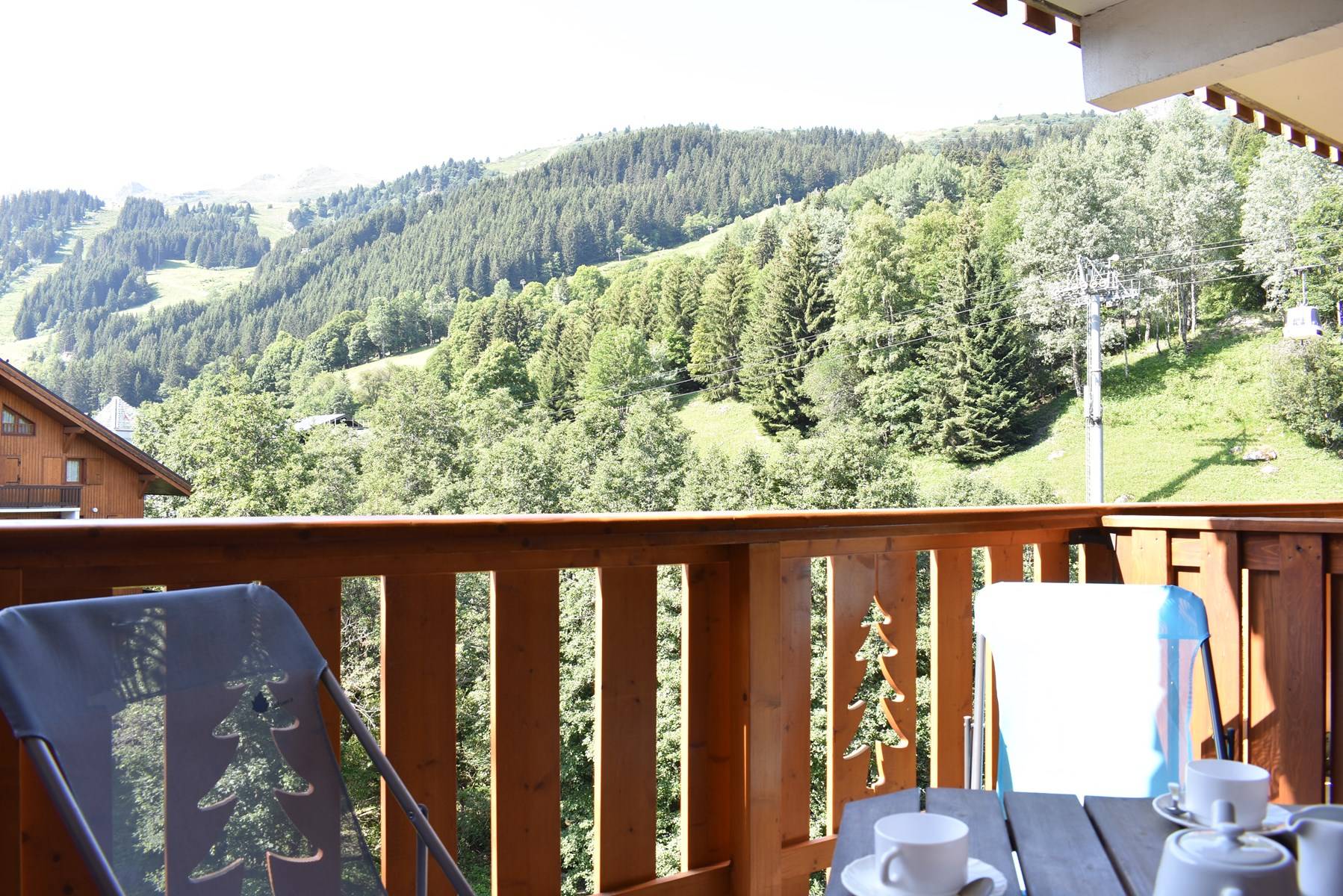 The advantages of this holiday apartment: a balcony with garden furniture facing south and a view of the mountains, a ski locker.