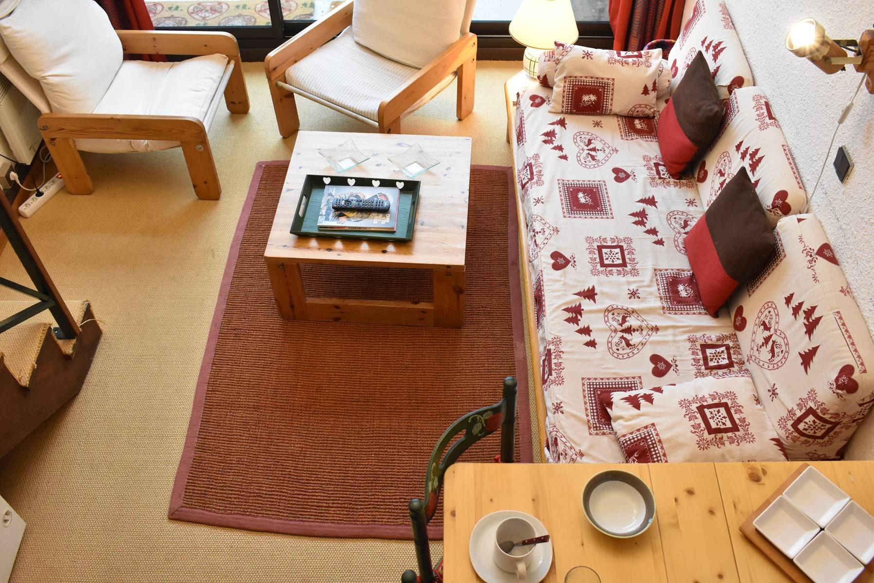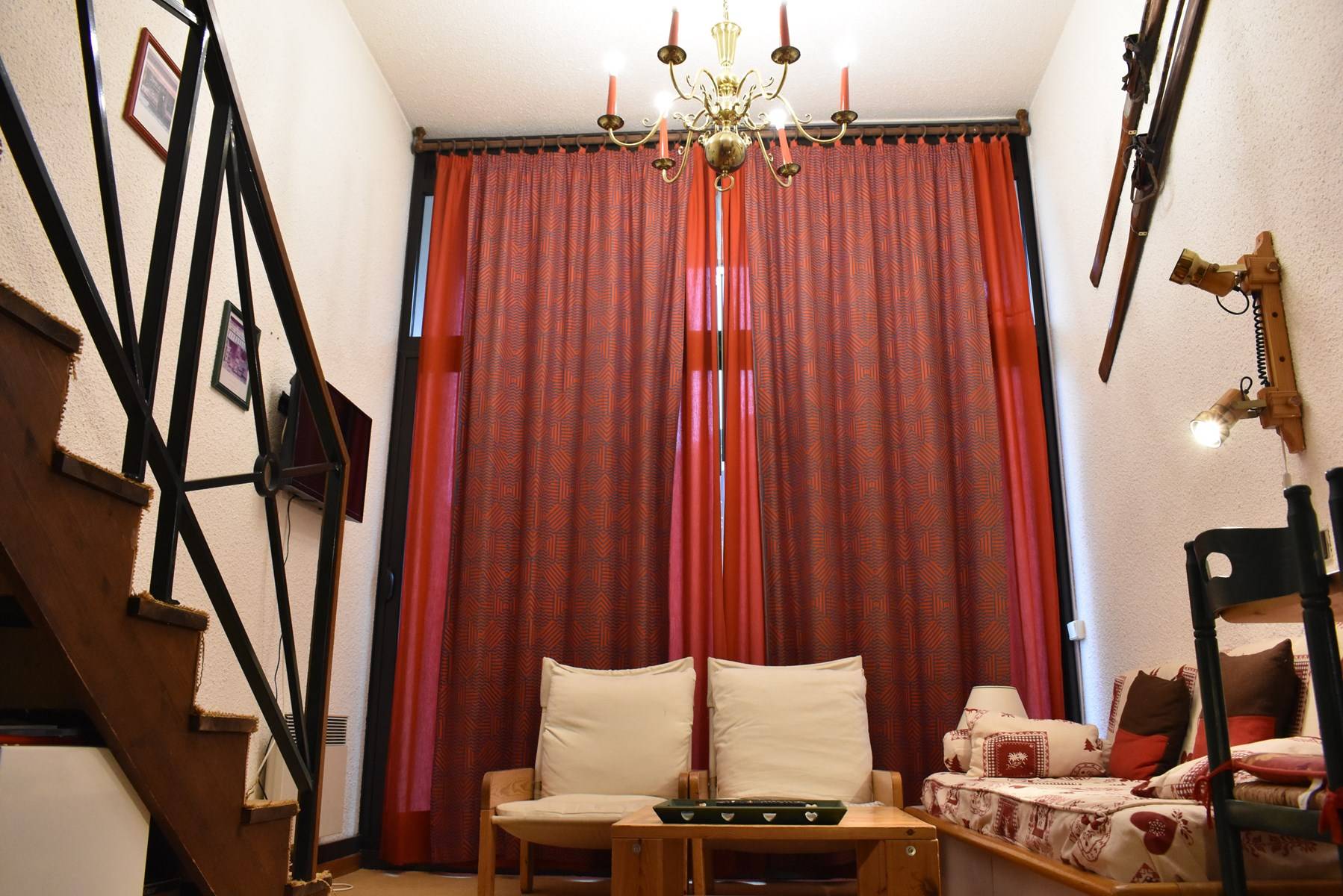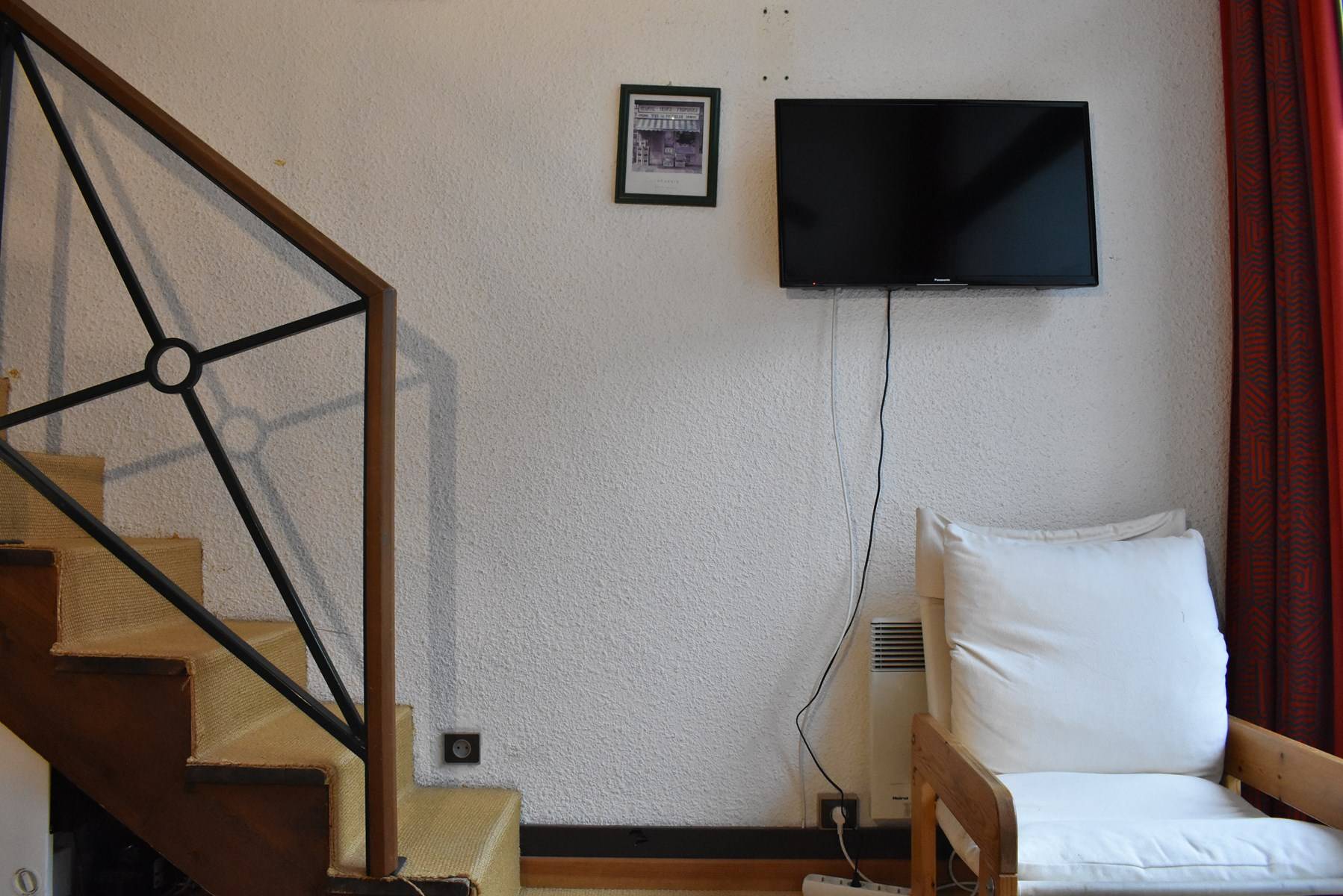 (5 floors down without elevator) includes an equipped kitchen opening onto a living room/dining area (west terrace) with a television, a mezzanine with a set of bunk beds, a bedroom opening onto the mezzanine with 1 double bed (160) , a shower room with toilet, 1 ski locker (C47).