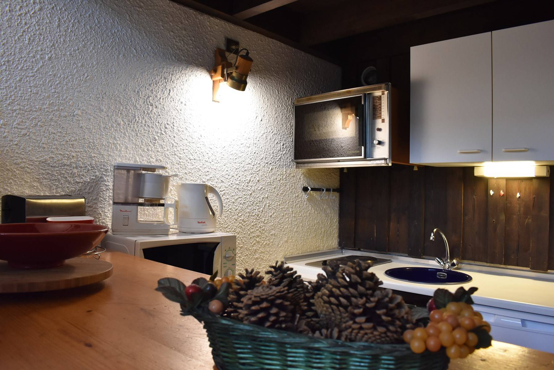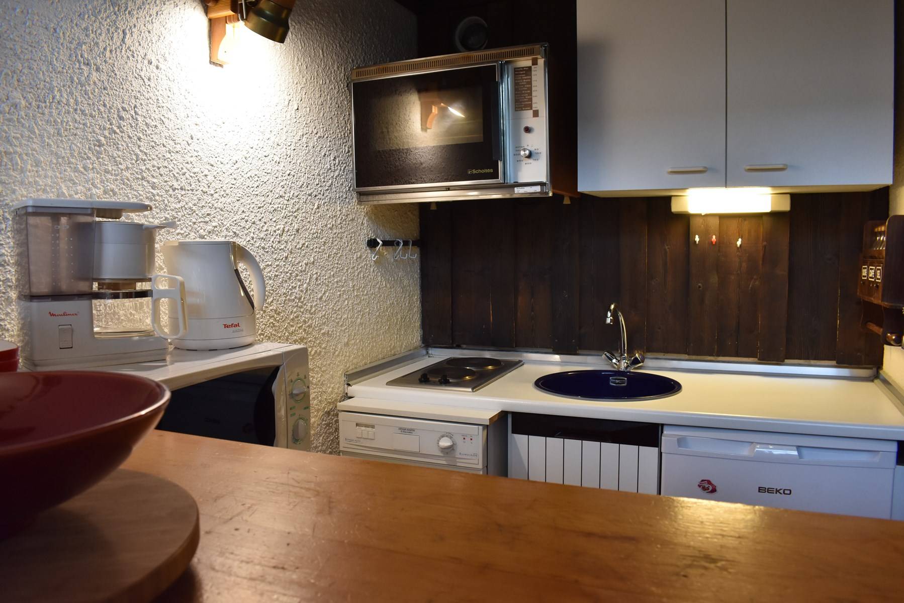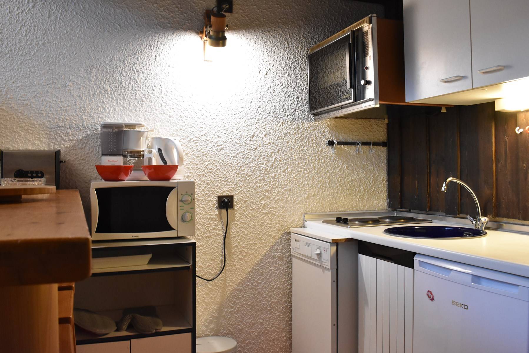 (5 floors down without elevator) includes an equipped kitchen opening onto a living room/dining area (west terrace) with a television, a mezzanine with a set of bunk beds, a bedroom opening onto the mezzanine with 1 double bed (160) , a shower room with toilet, 1 ski locker (C47).
