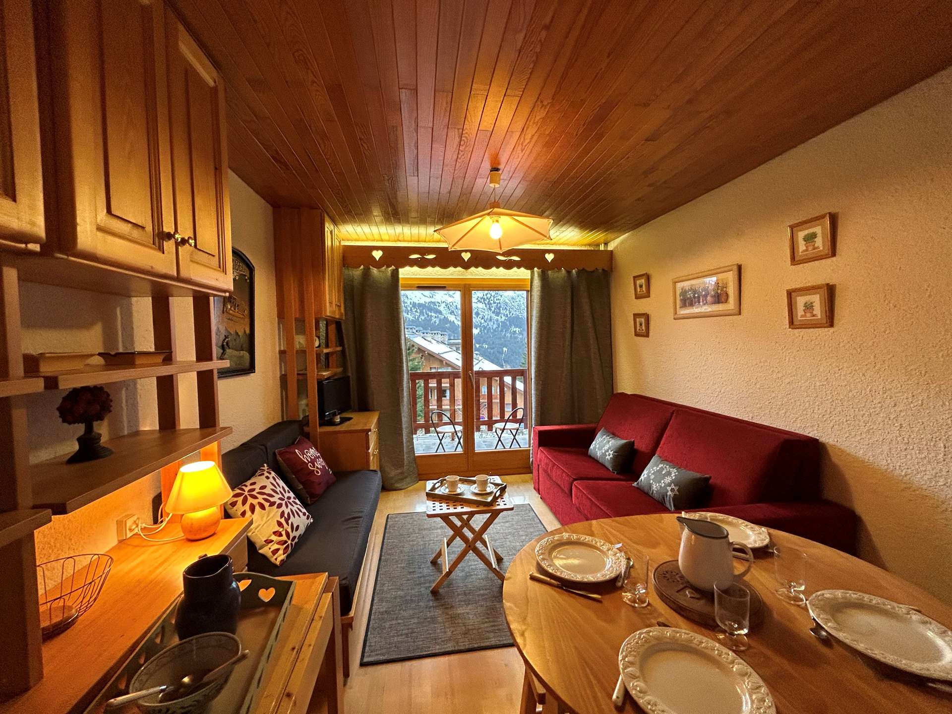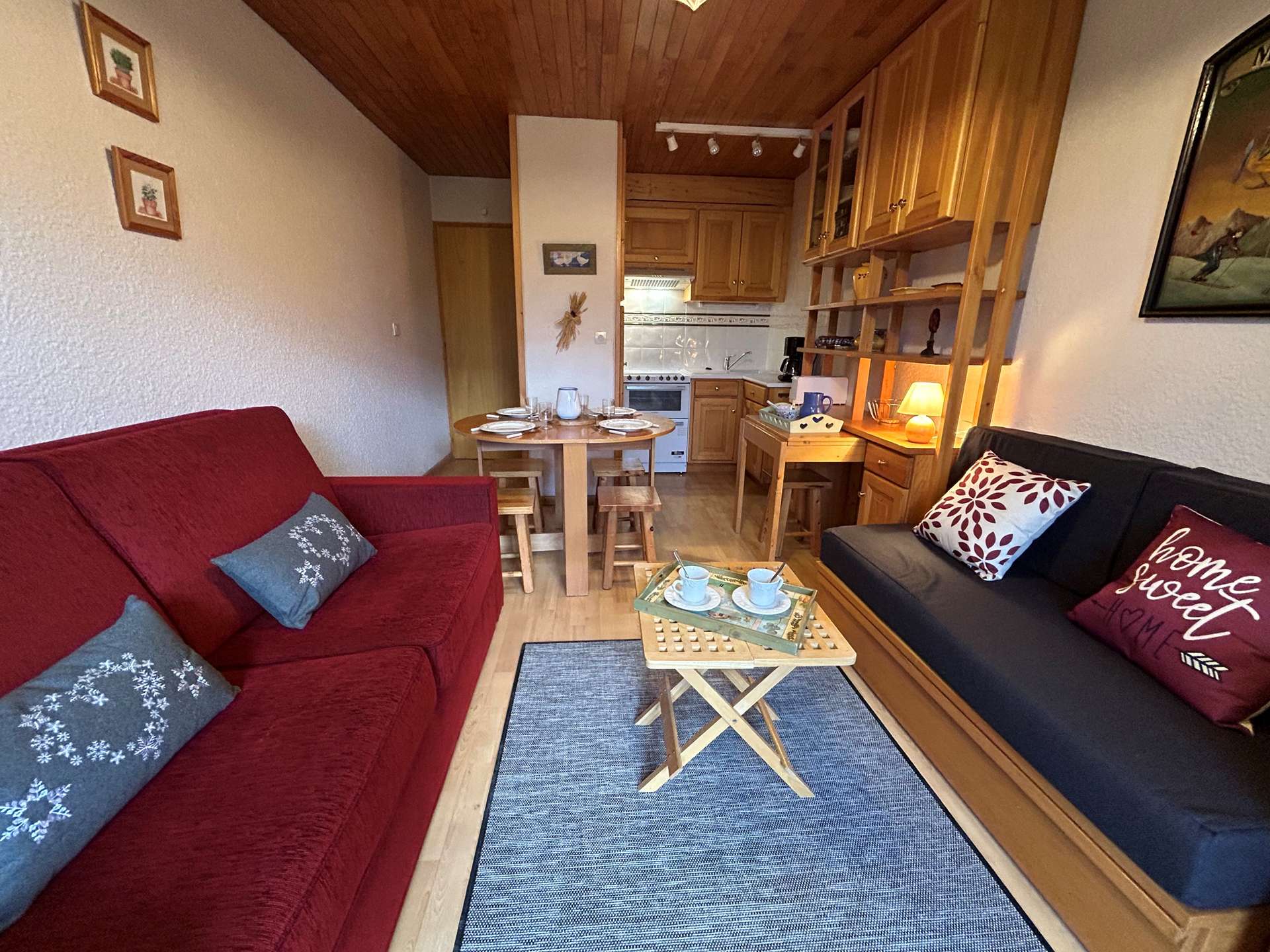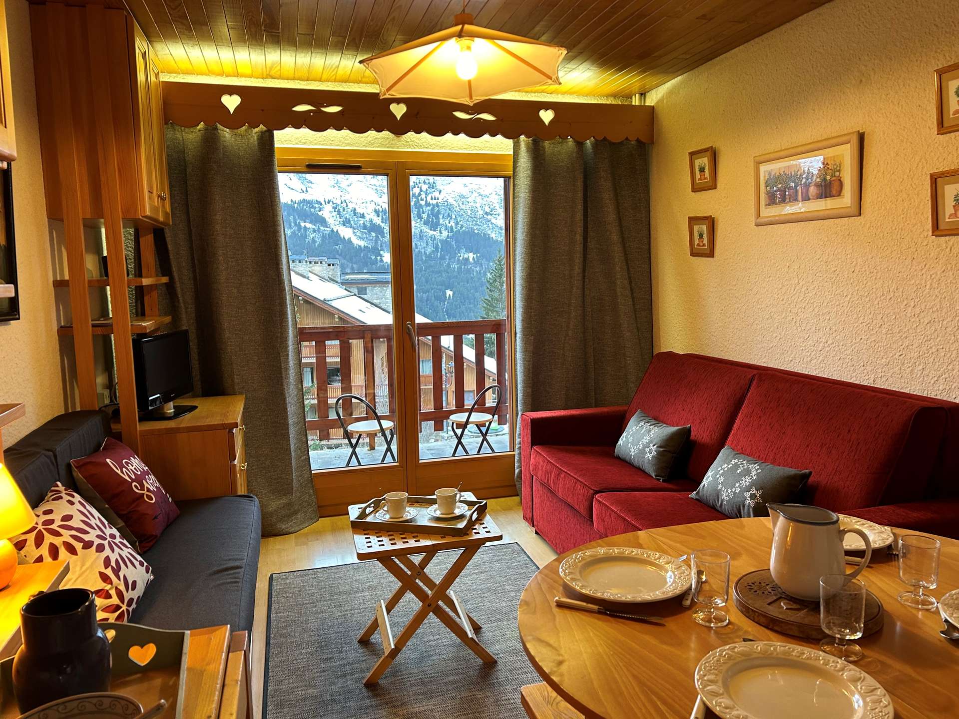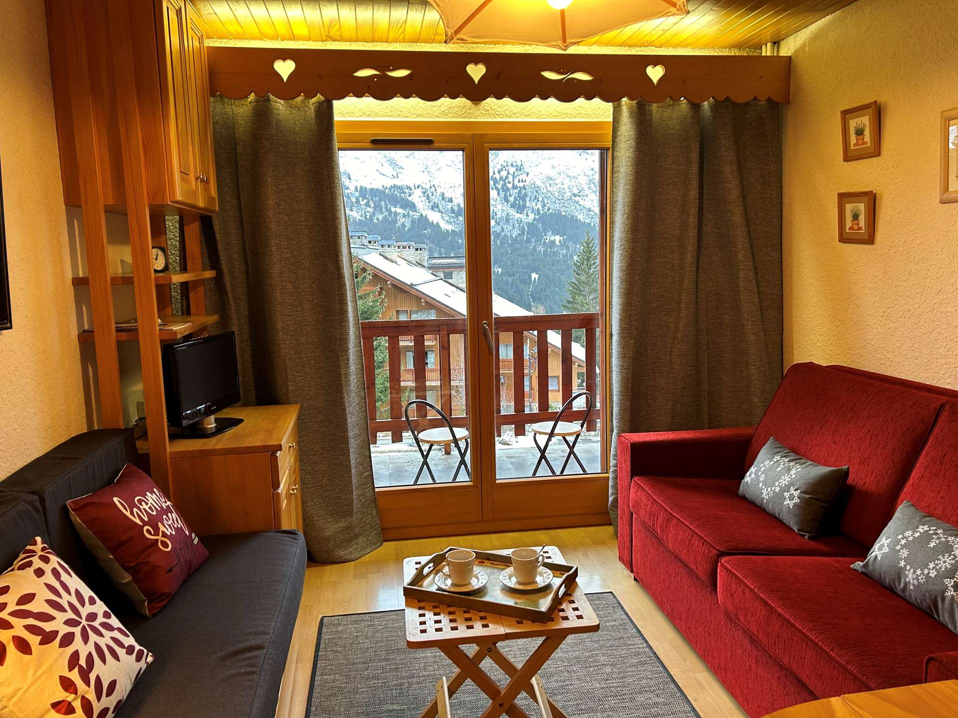 This apartment in the snow, located on the 1st floor of the residence, with lift, includes 1 kitchen open to the living room with a dining area, 1 sofa bed (140x190), 1 television, 1 bathroom, 1 separate toilet and 1 bedroom with 2 single beds (80x190).