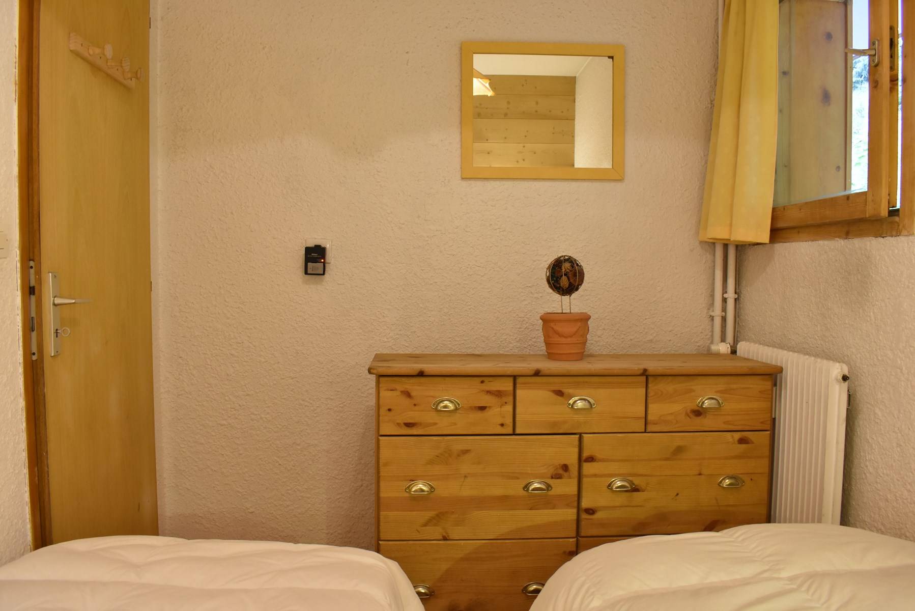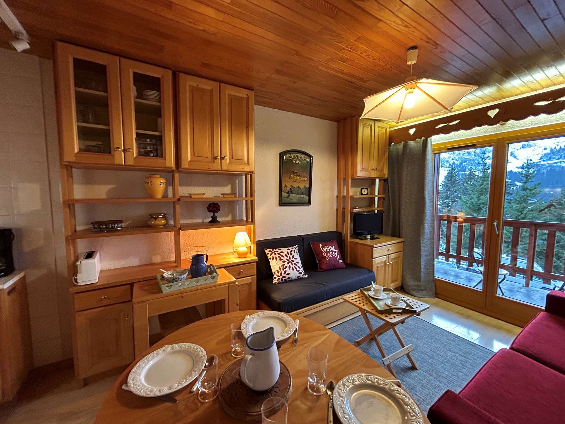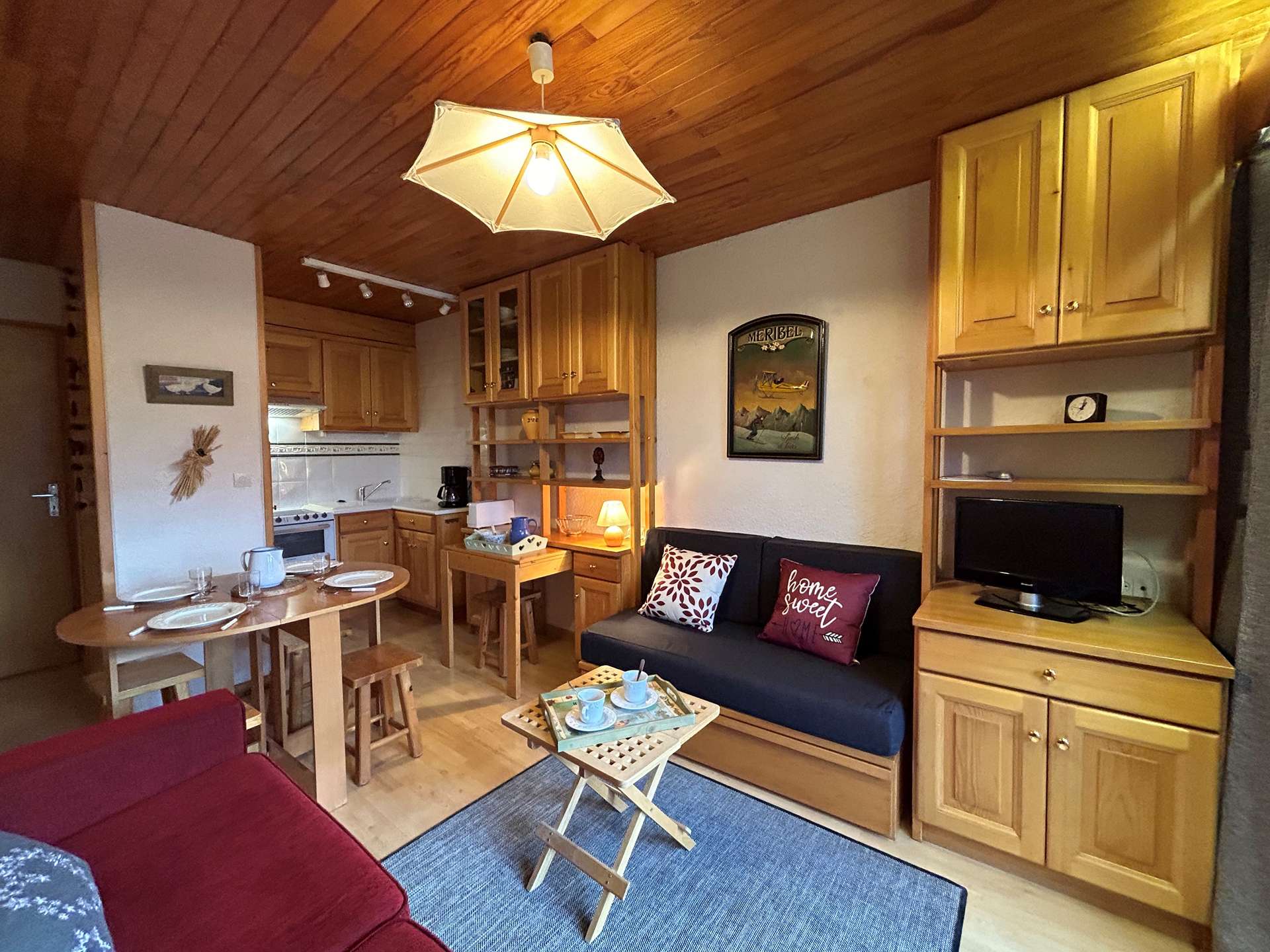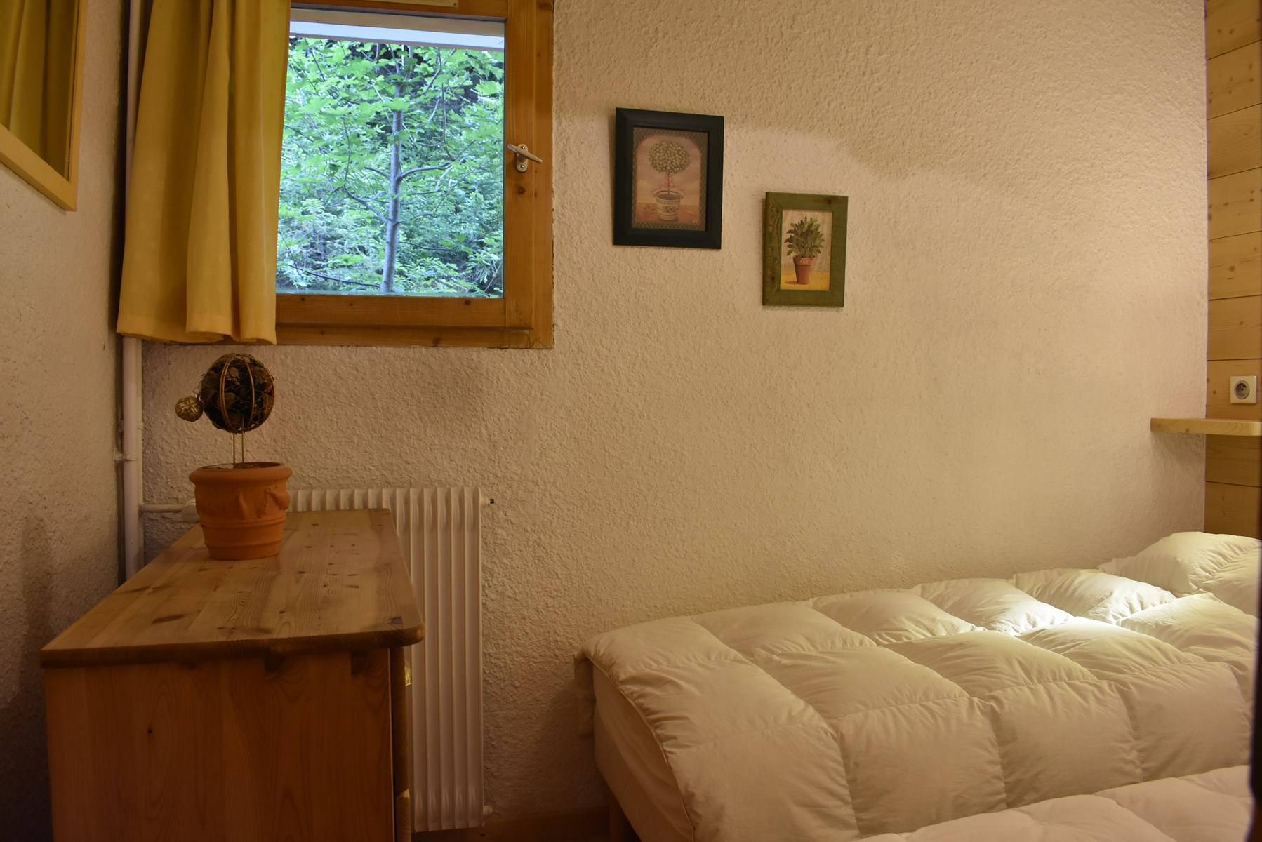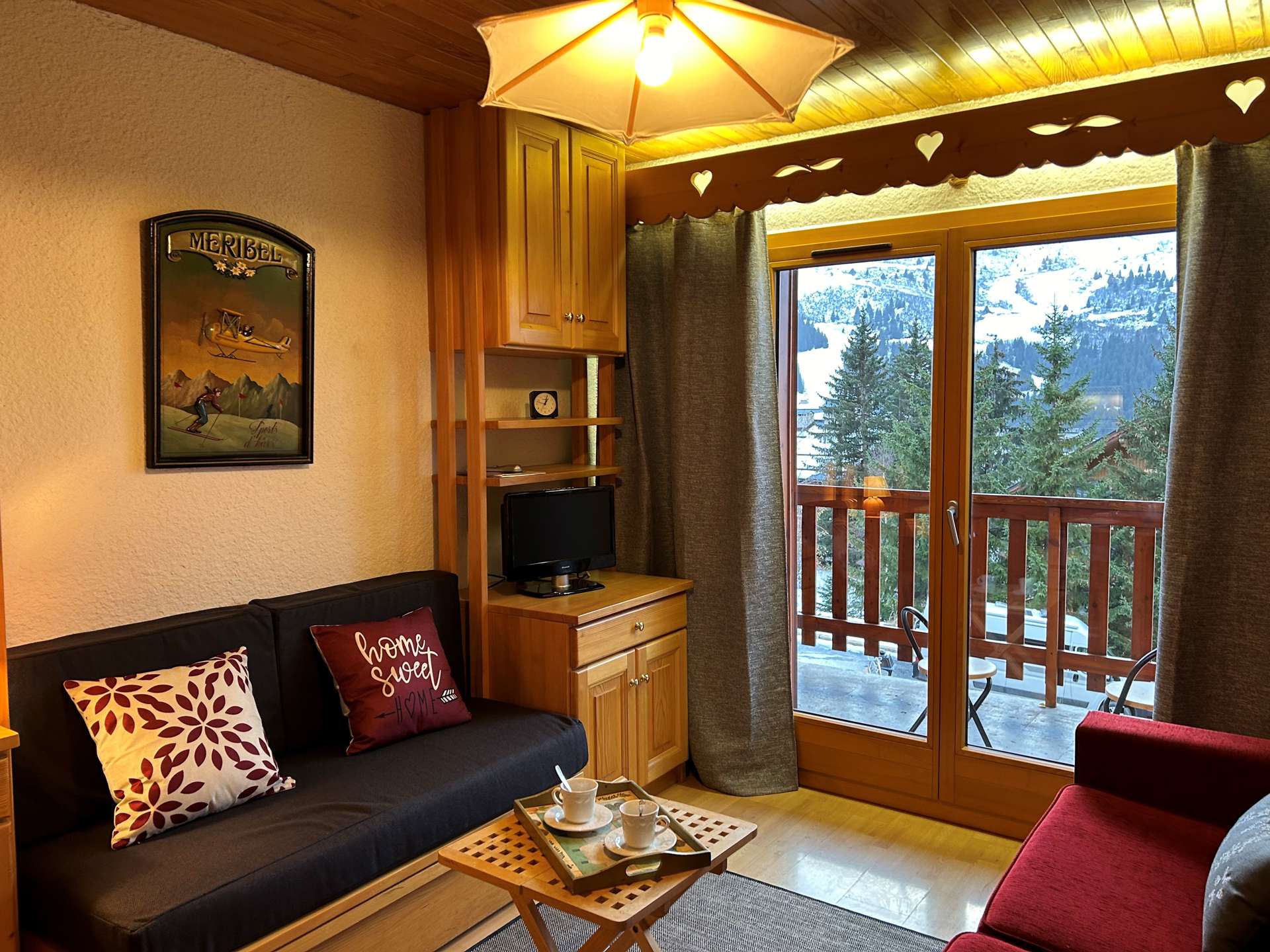 This apartment in the snow, located on the 1st floor of the residence, with lift, includes 1 kitchen open to the living room with a dining area, 1 sofa bed (140x190), 1 television, 1 bathroom, 1 separate toilet and 1 bedroom with 2 single beds (80x190).