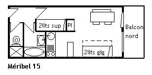 The “le Méribel” residence is located 20m from the slopes, 200m from the shuttle stop, shops and restaurants and 2.5 km from the resort center.