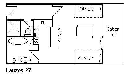 The “Les Lauzes” residence is located 100m from the slopes, 50m from the shuttle stop and shops and 2.5 km from the resort center.