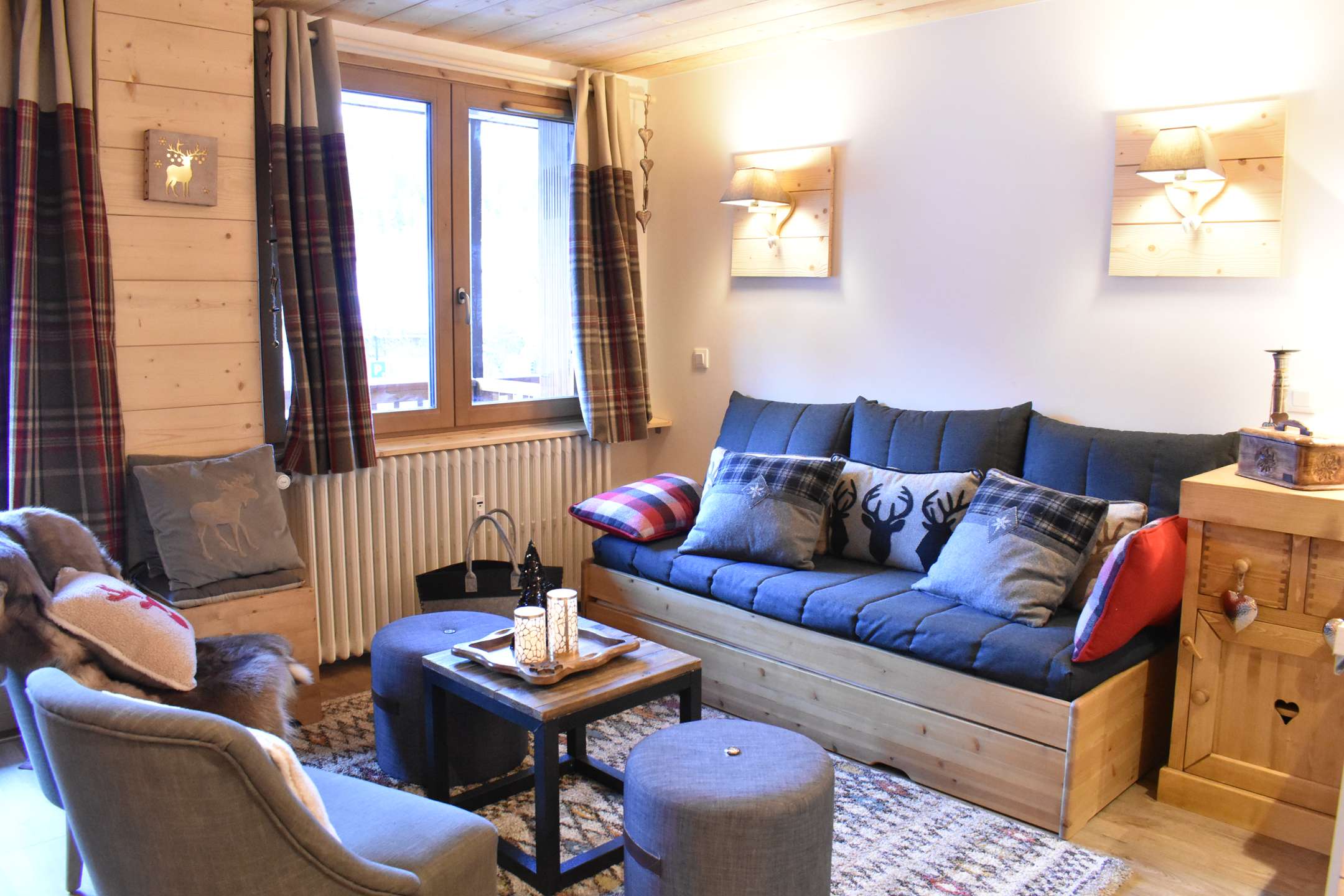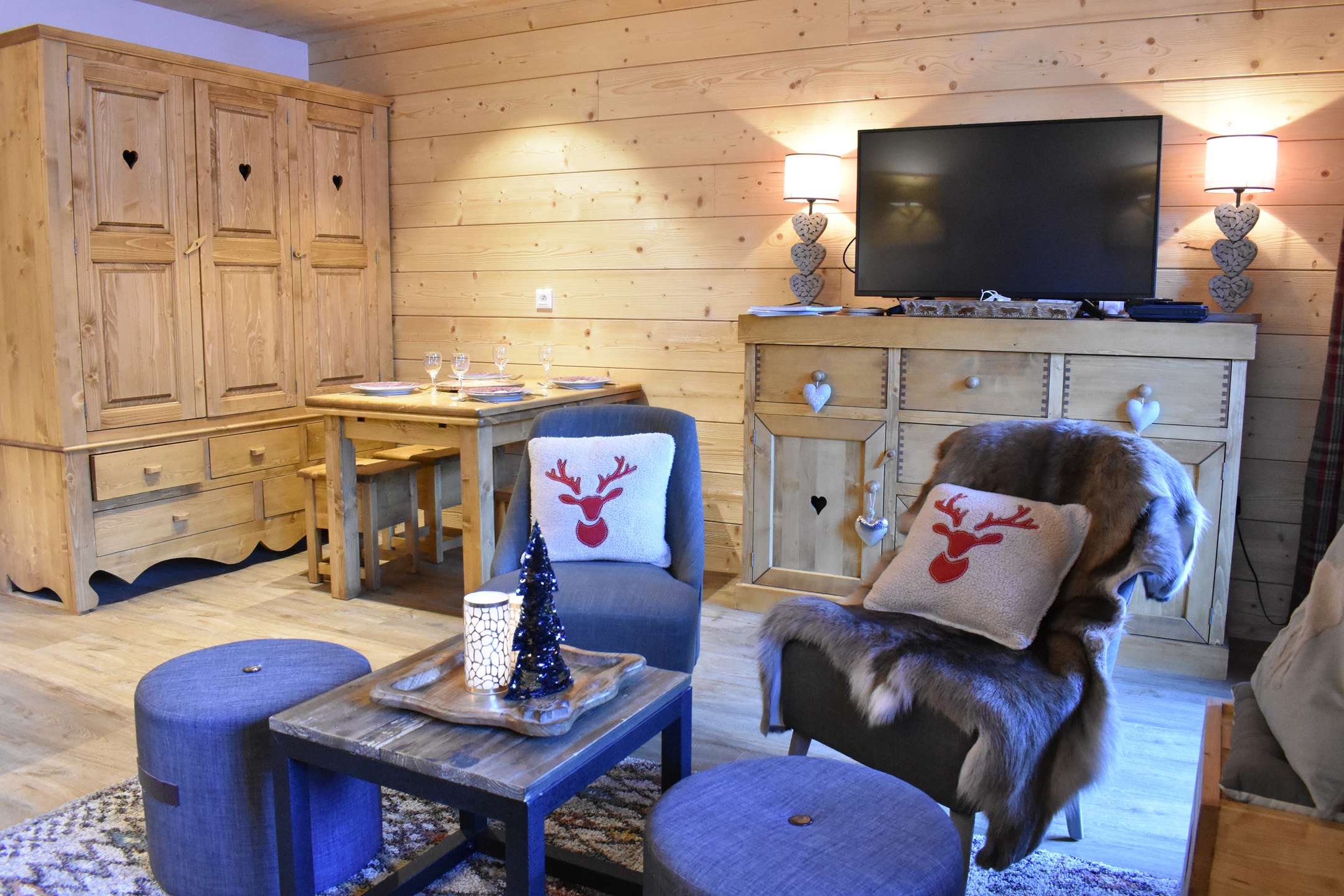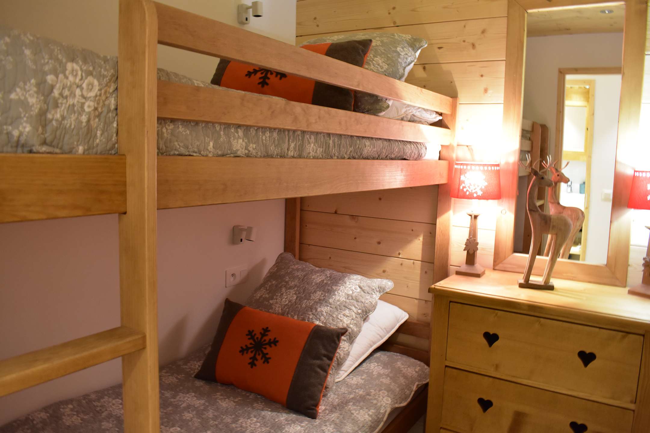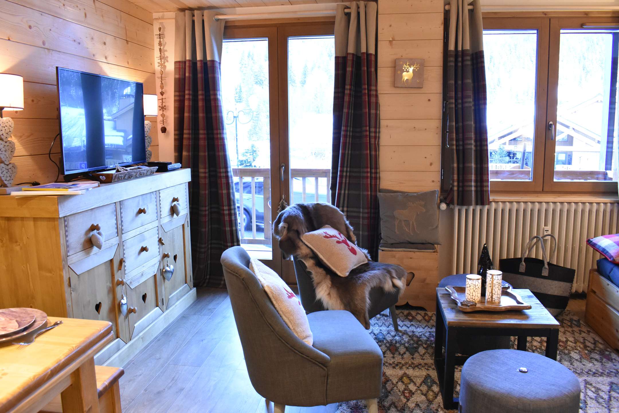 This apartment in the snow located on the 1st floor without lift consists of a beautiful pleasant living room with a kitchen equipped with a washing machine and dryer and open to the living room. It includes a dining area and a very cozy living room with a set of pull-out trundle beds, two armchairs, two poufs and a large television. The living room opens onto a west-facing balcony. You will have a closed alcove with a set of bunk beds, a bathroom with washer-dryer and a separate toilet.