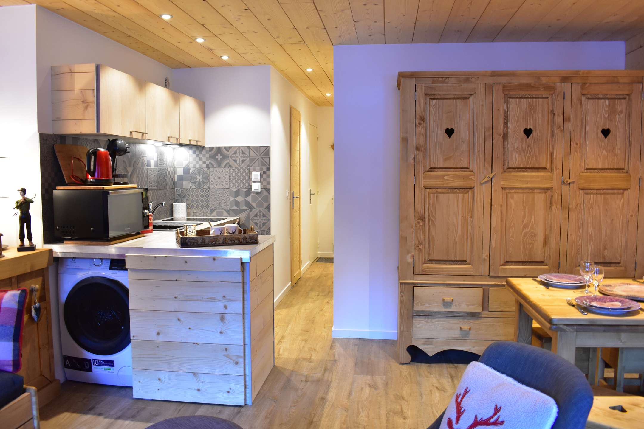 The advantages of this apartment: This very charming apartment has just been completely renovated. It is very well equipped and has a washer-dryer. It will give you complete satisfaction. A ski locker at your disposal at the entrance to the residence. A shoe locker next to the apartment is locked. A residence located next to the center and the shuttle stop which will take you free of charge to Mottaret, the Altiport or even the Belvédère. Wifi is included.
