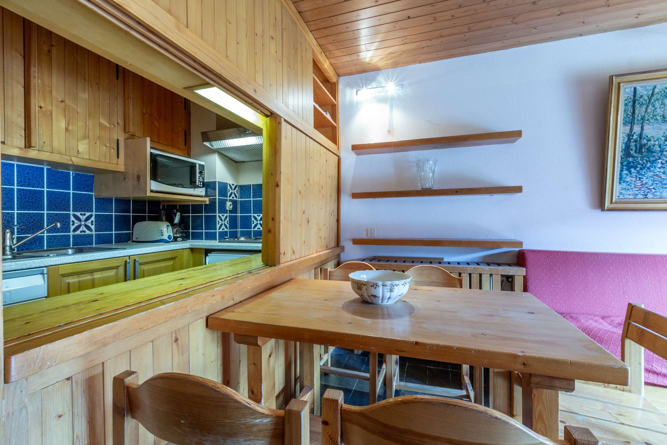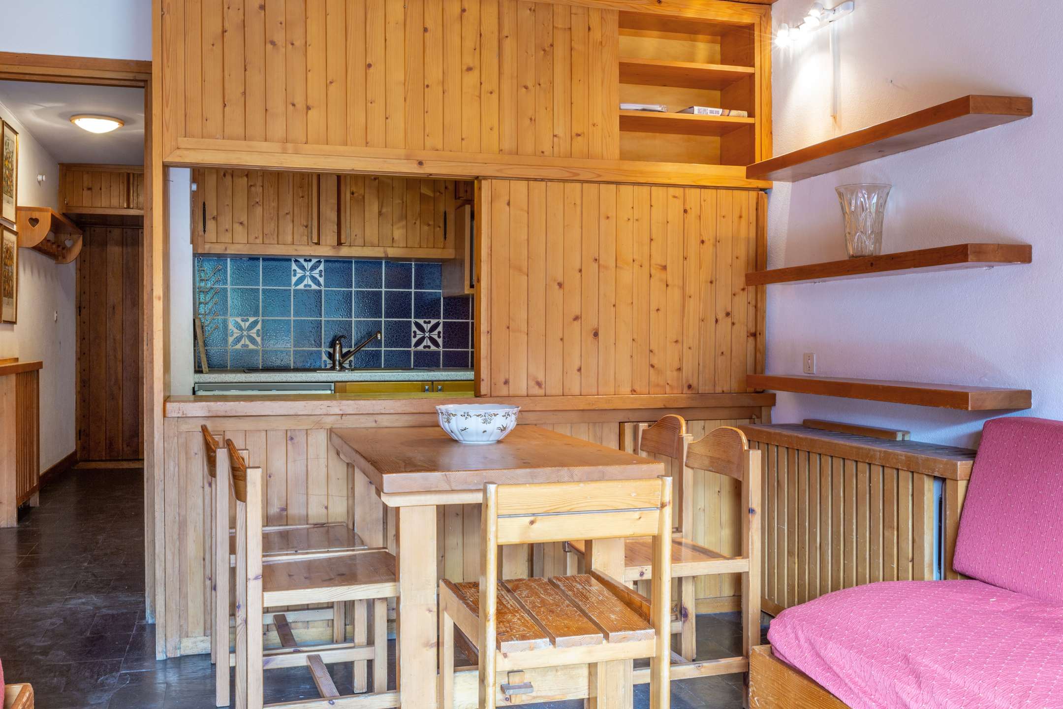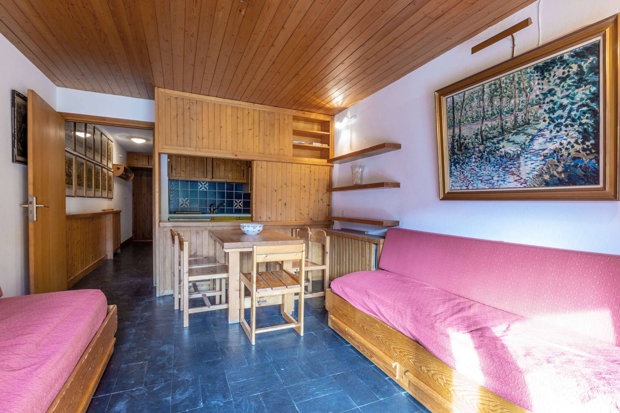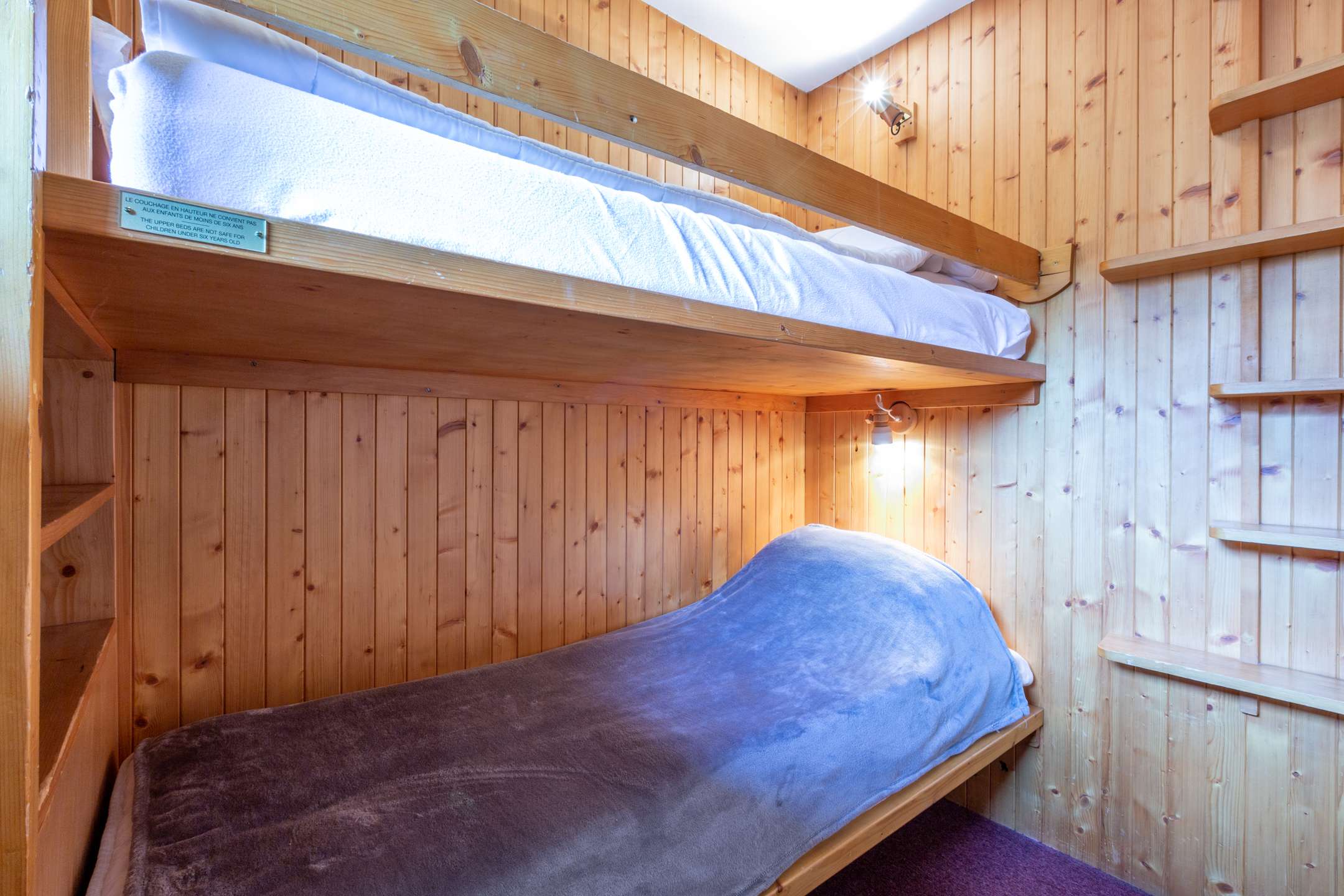 This apartment in the mountains located on the 1st floor and equipped with an elevator, includes 1 equipped kitchen open to the living room with a dining area opening onto a south-facing balcony, a living room with television, a bedroom 1 set of bunk beds, 1 bathroom bathroom and a separate toilet.