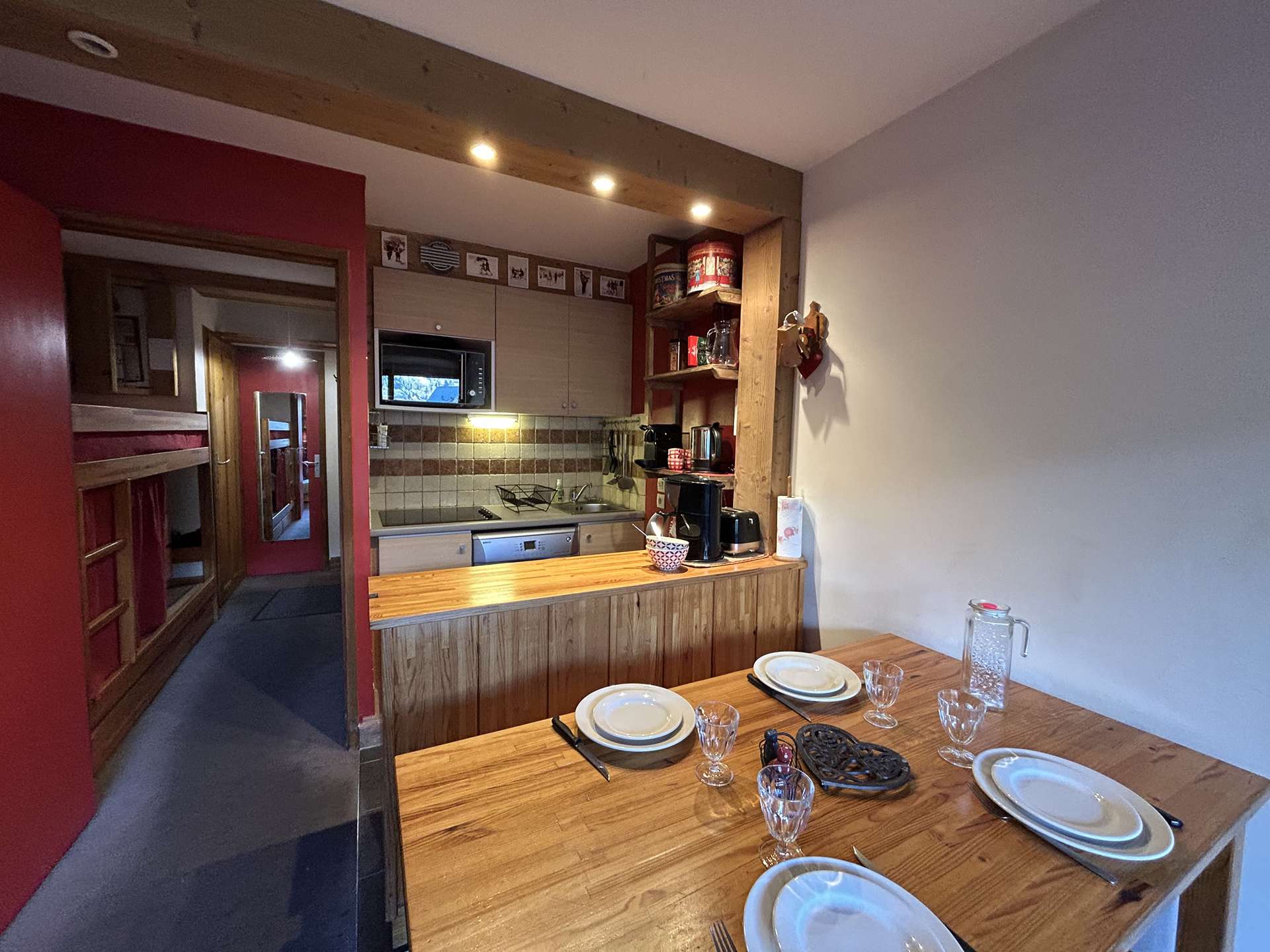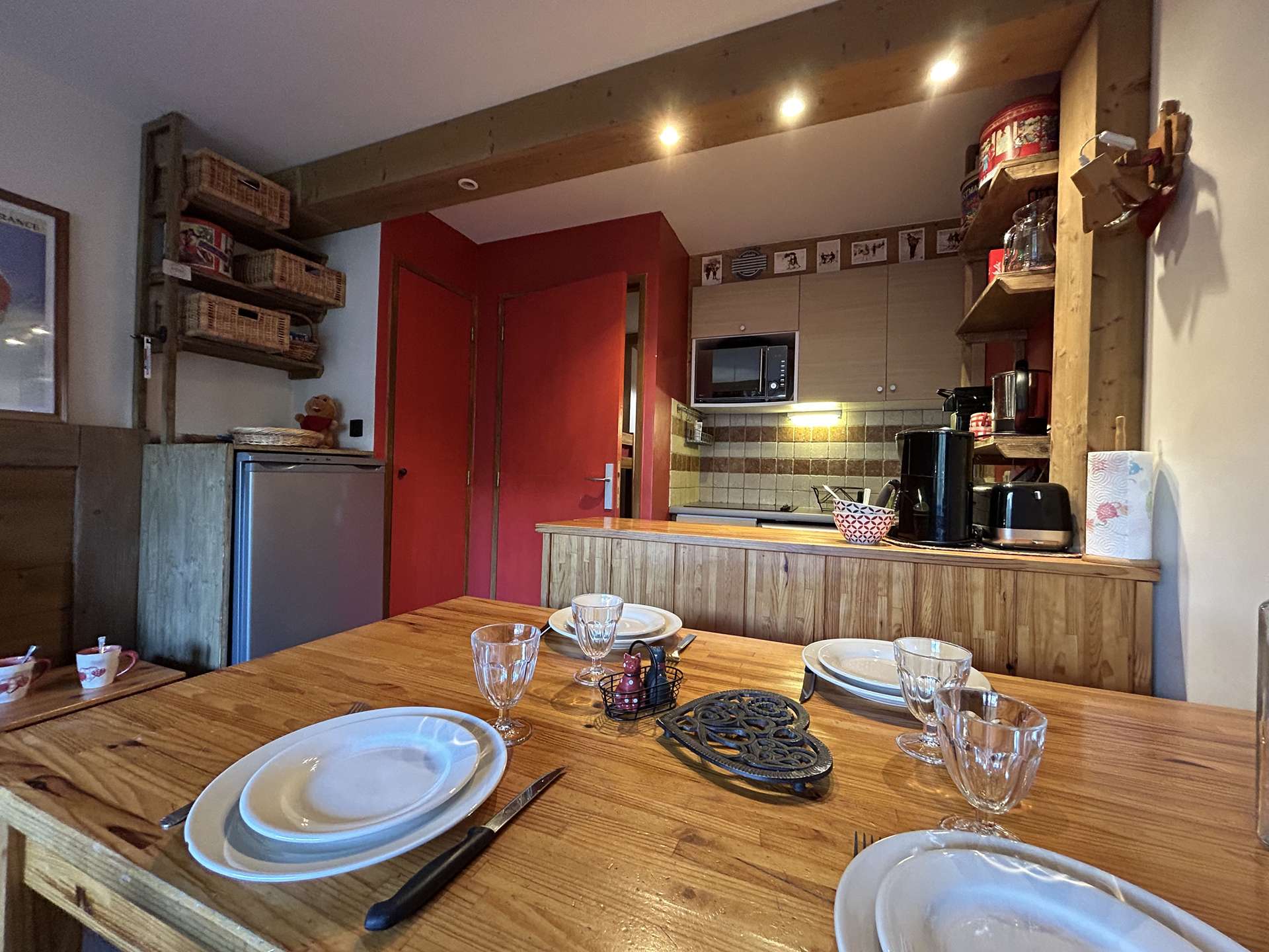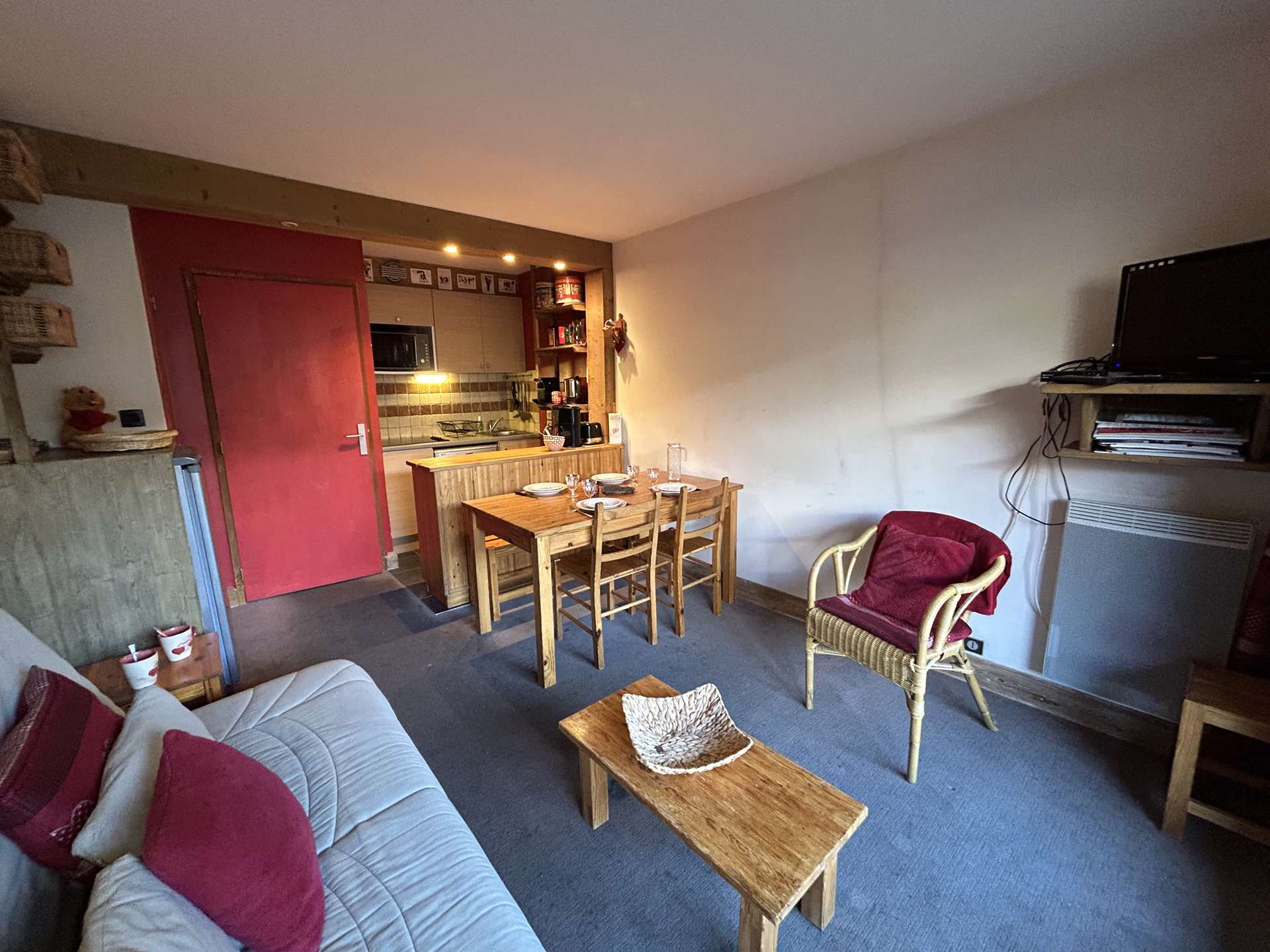 The advantage of this apartment in the mountains: The living room has a south-facing balcony offering you a nice view of the resort of Méribel. The free shuttle will allow you to move around the resort with great ease.