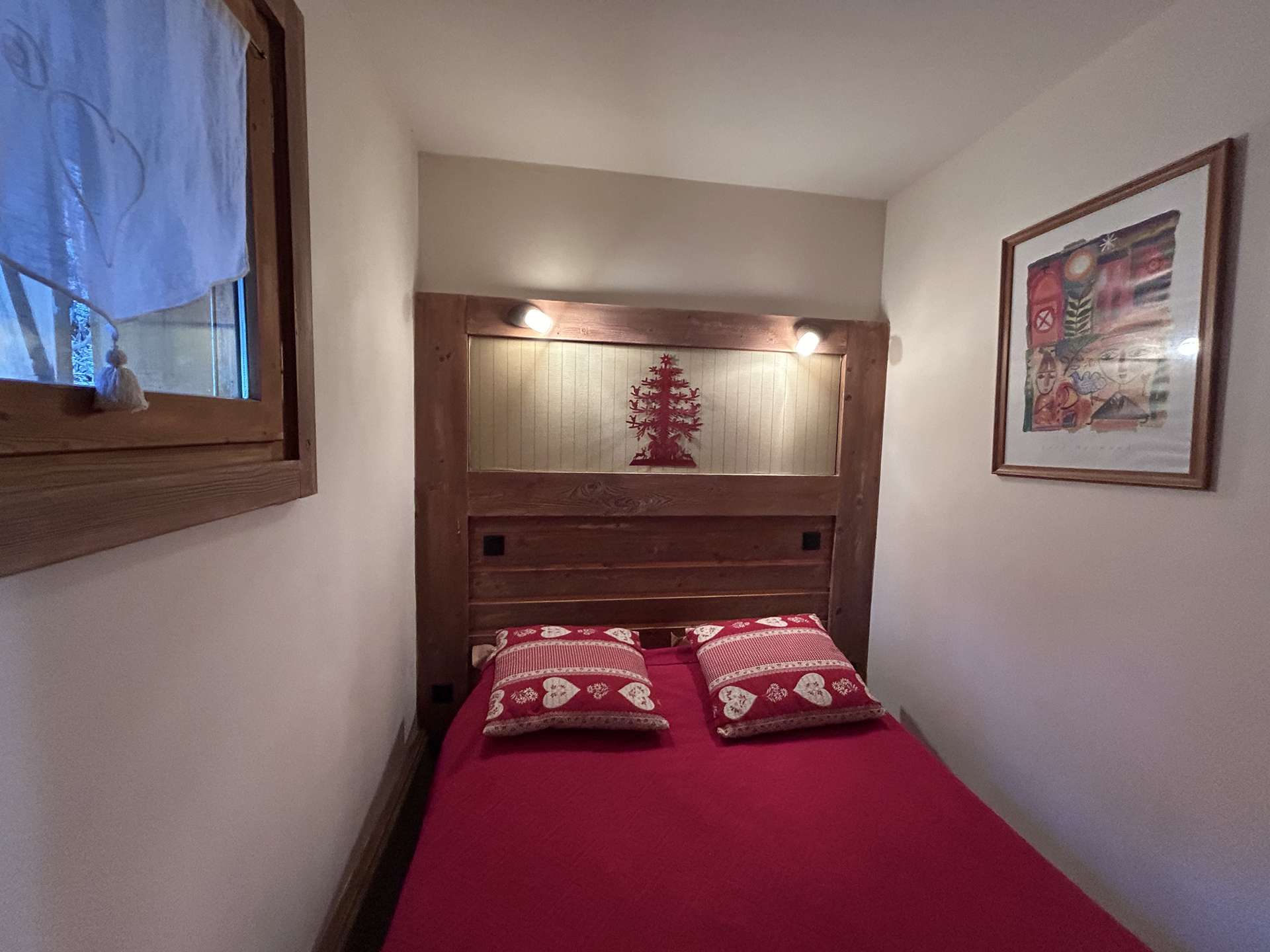 This apartment is located on the 2nd floor without lift and consists of a kitchen open to the living room with a dining area, a sofa bed for 2 people and 1 television. This living room opens onto a balcony which will offer you a splendid view of the southern slope of the Méribel Valley. On the same level, you will have a bedroom with 1 double bed 140, a shower with sink area and independent toilets.