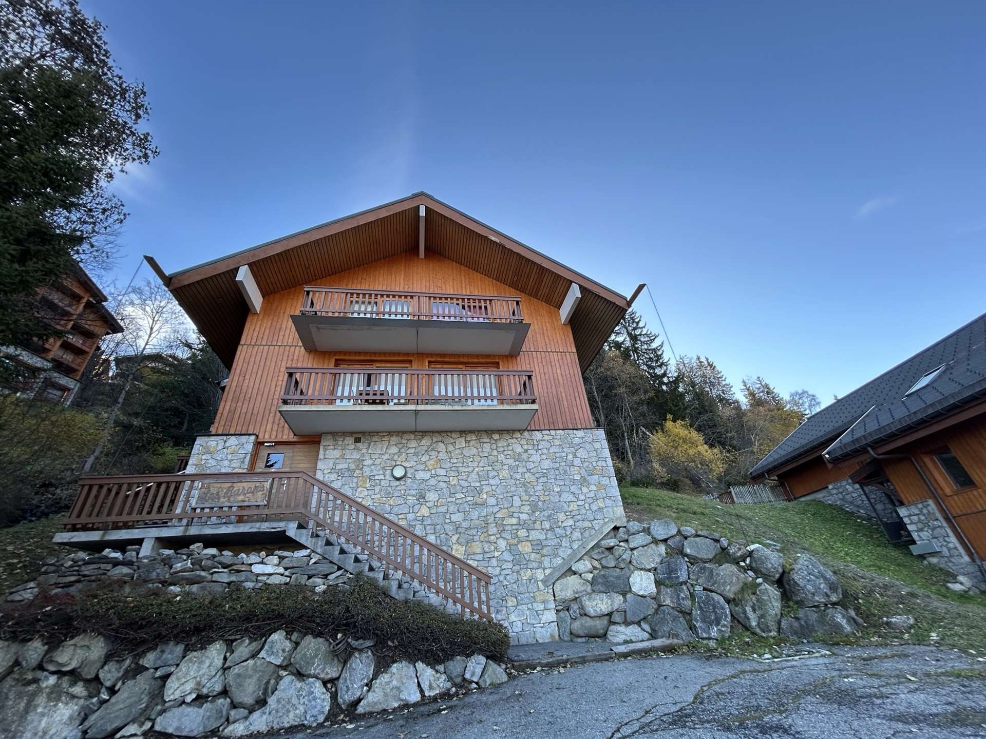 The Les Barons residence is located in the Plan du Moulin district, 300m from the center of the resort, shops and restaurants and 400m from the ski slopes. The free bus stop is located just in front of the residence.