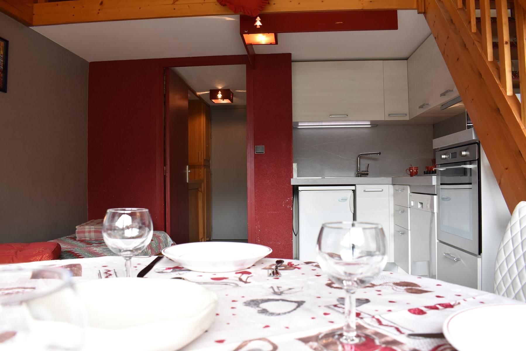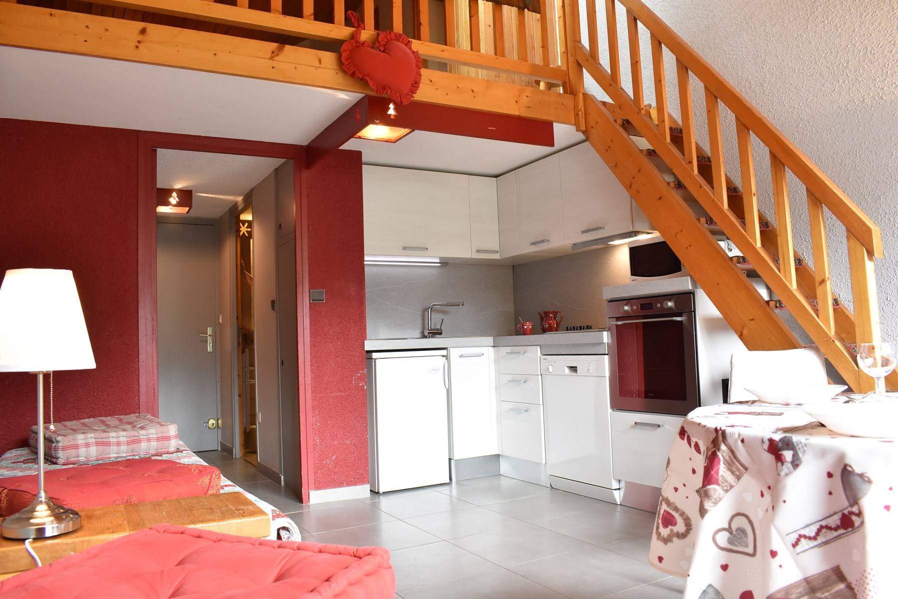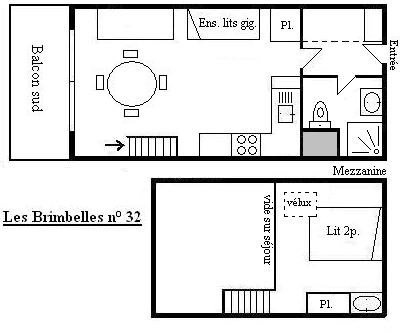 This apartment in the mountains located on the 6th floor, with lift, includes an equipped kitchen open to a living room with a dining area, 1 single bed and 1 set of pull-out pull-out beds with a south-facing balcony, a shower room with a WC . The first floor includes a south-facing sloping mezzanine with 1 low double bed 160 and a sink area. It is necessary to walk up 1 floor when exiting the elevator to access the apartment.