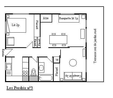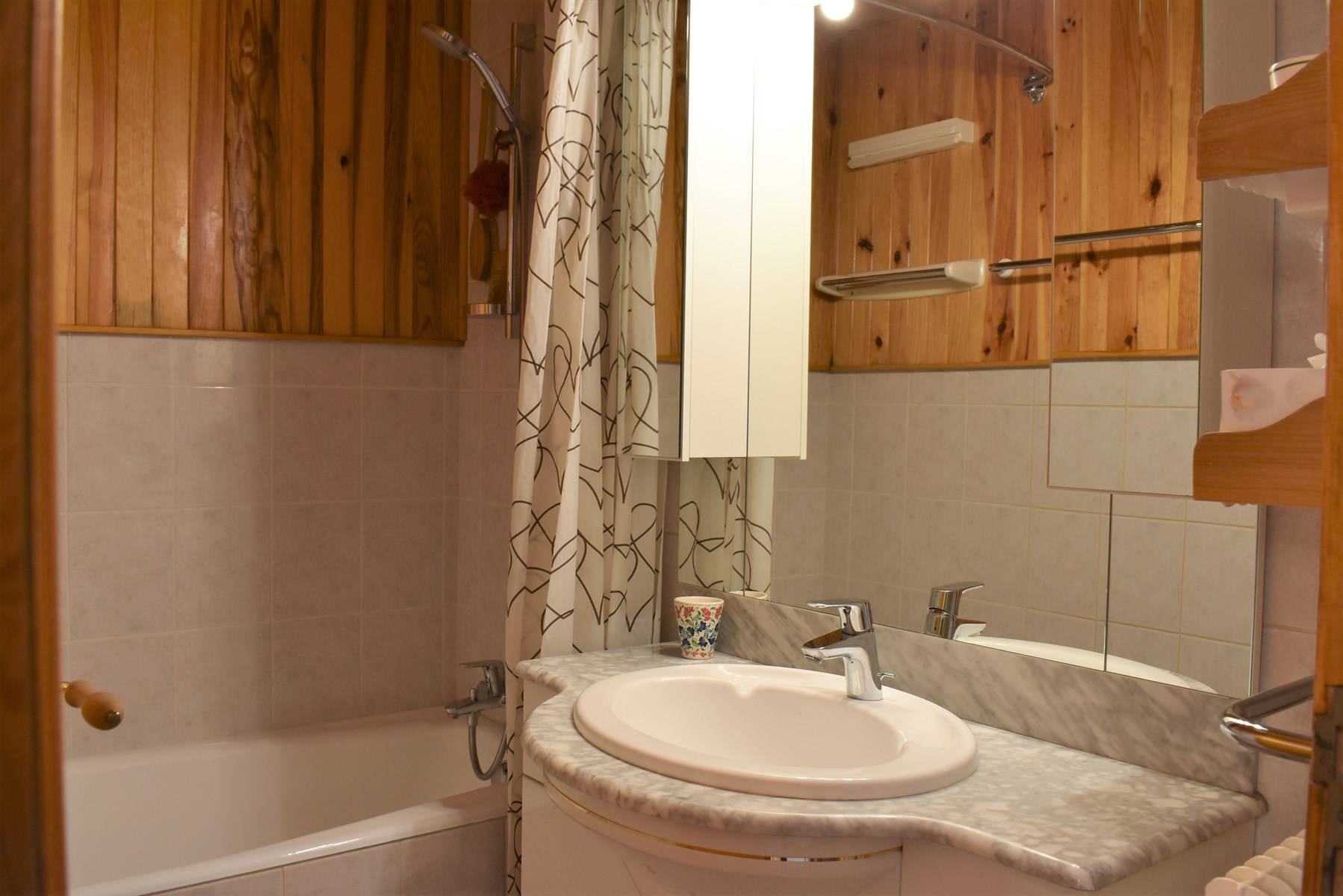 Located in the 1600 altitude sector, 250 meters from access to the slopes, this holiday apartment in the 3 valleys, on the ground floor (floor 1 from the entrance), without elevator, includes, 1 living room with television with DVD player separated by a sliding wooden wall with on one side a dining area, fireplace and a 1-person bench seat (120) and on the other side 1 double sofa bed (160). This rental includes a closed and equipped kitchen with dishwasher, 1 bedroom with 1 double bed (140), a bathroom and a separate toilet.