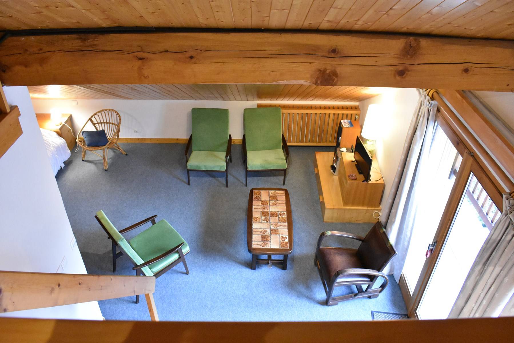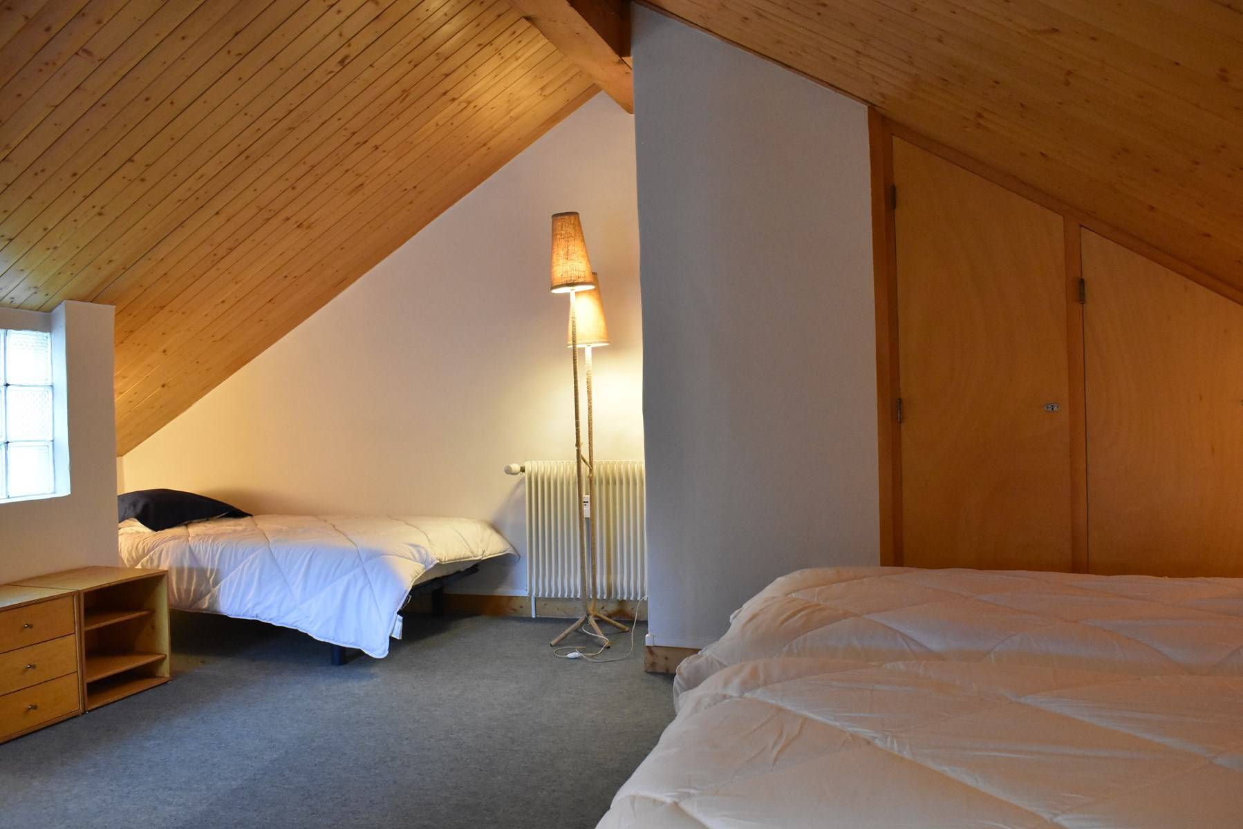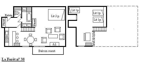 This rental in the mountains, located on the fourth floor by elevator (+ 1 floor on foot), includes an equipped kitchen opening onto a television living room (west balcony) with 1 double bed, a bathroom (washing machine/dryer ), a separate toilet; upstairs, a mezzanine with two single beds (80) and a single bed (90), 1 ski locker (high ground floor)