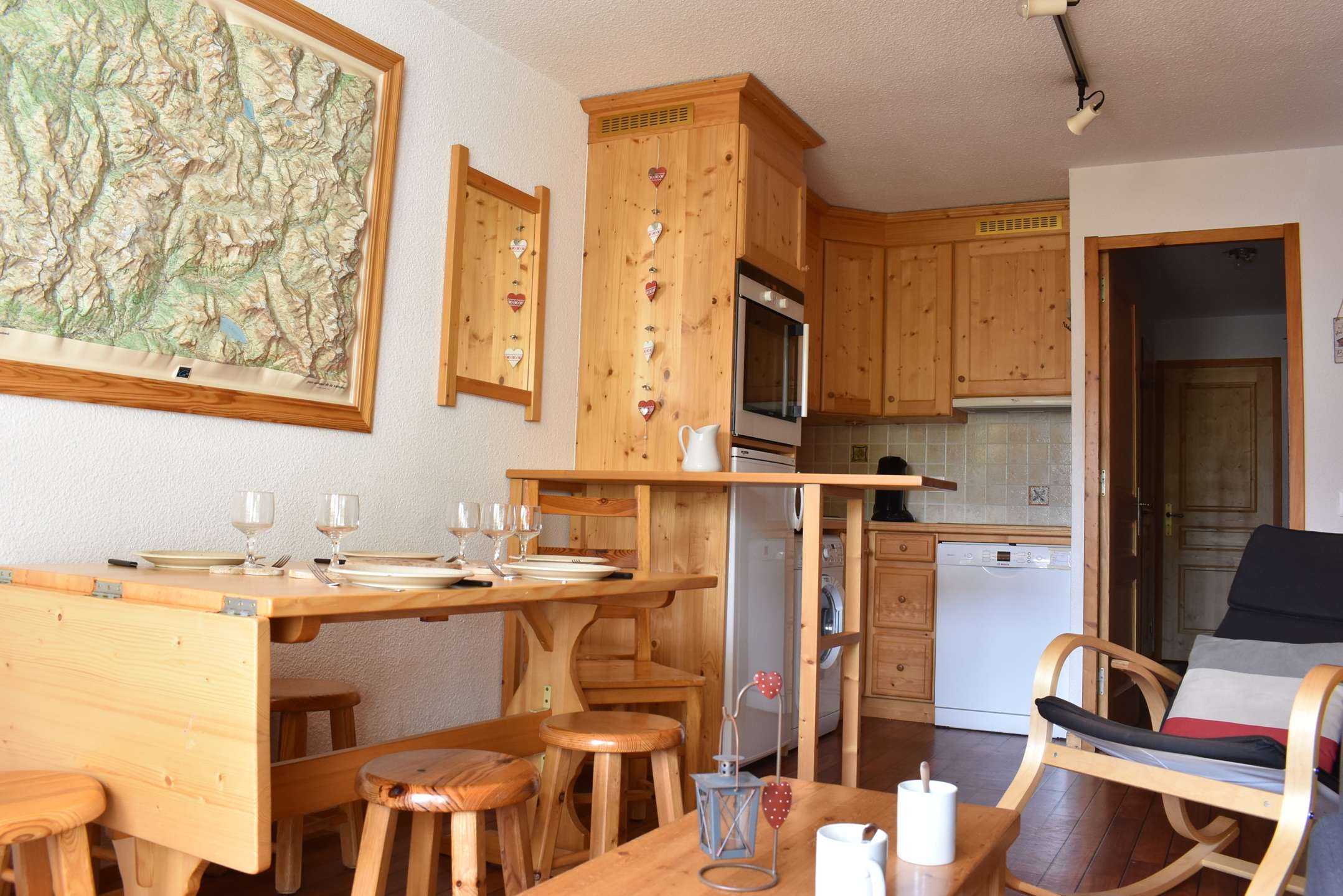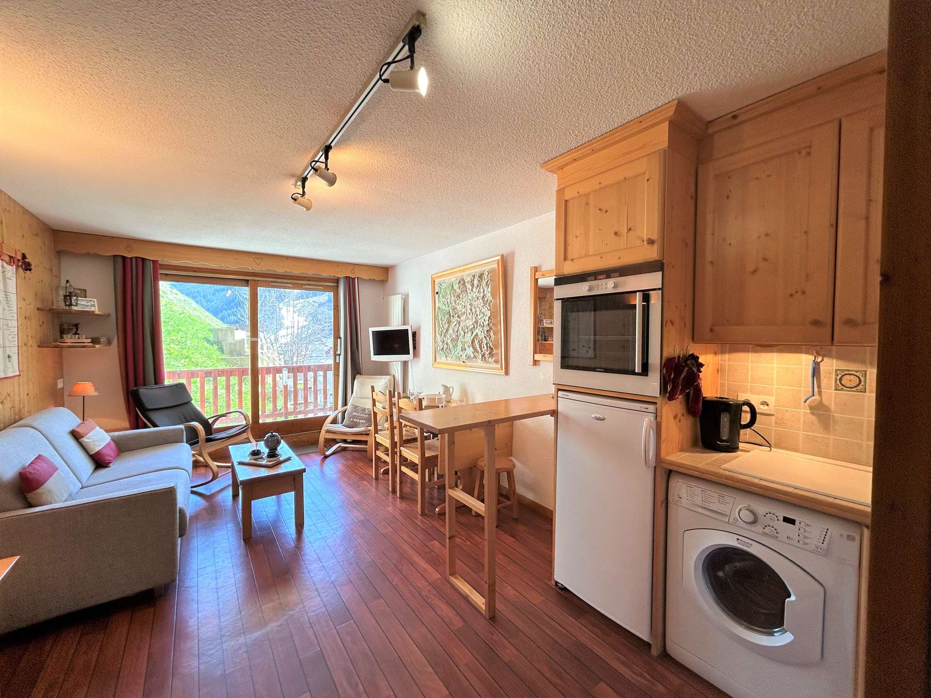 The advantages of this snow rental: It is close to the slopes, shops, restaurants, sports shops, etc. It benefits from a south-facing balcony offering you a lovely view of the mountains.