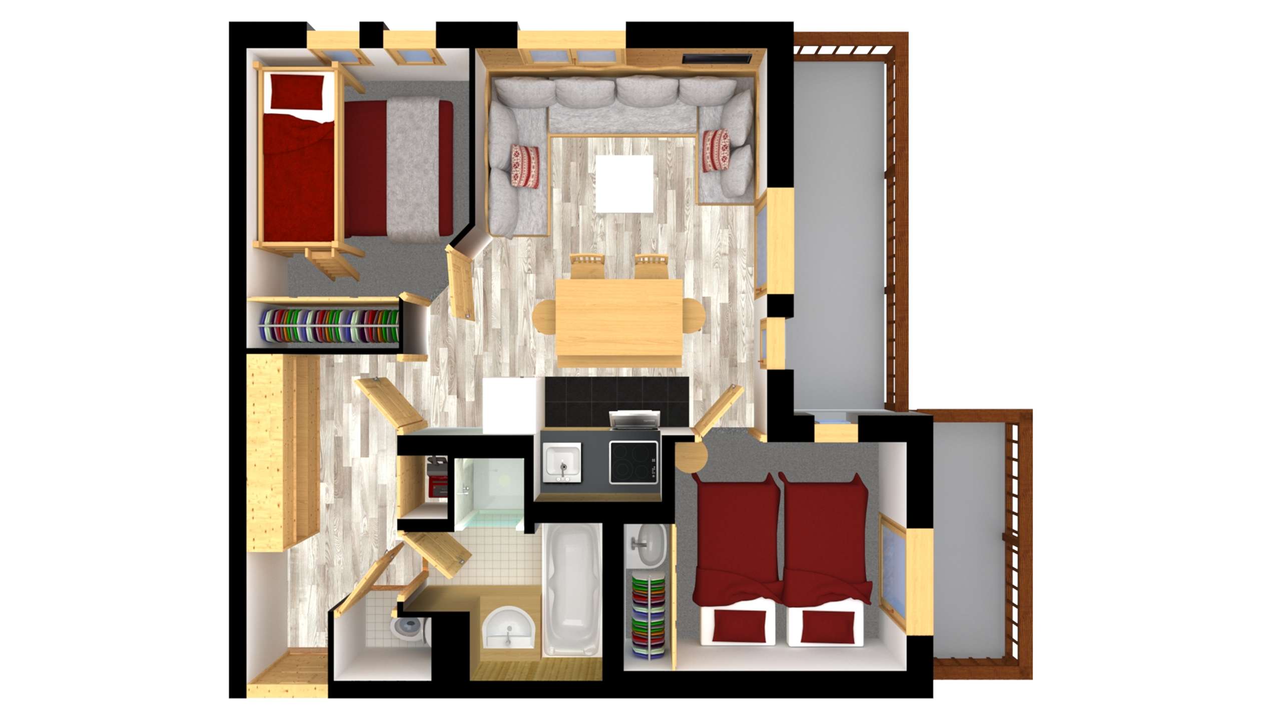 Plateau. Appt 3 pièces. 5 ppl.