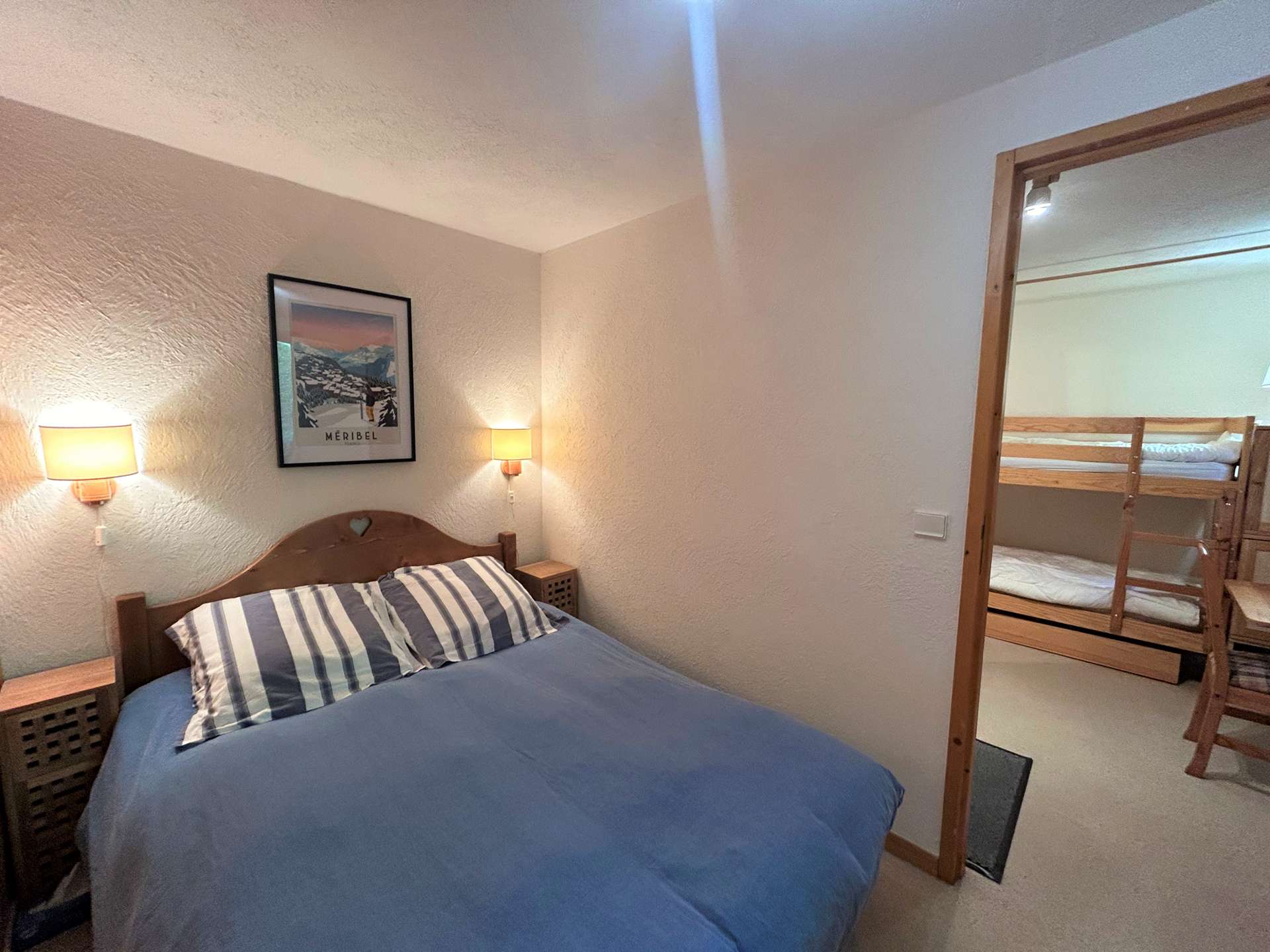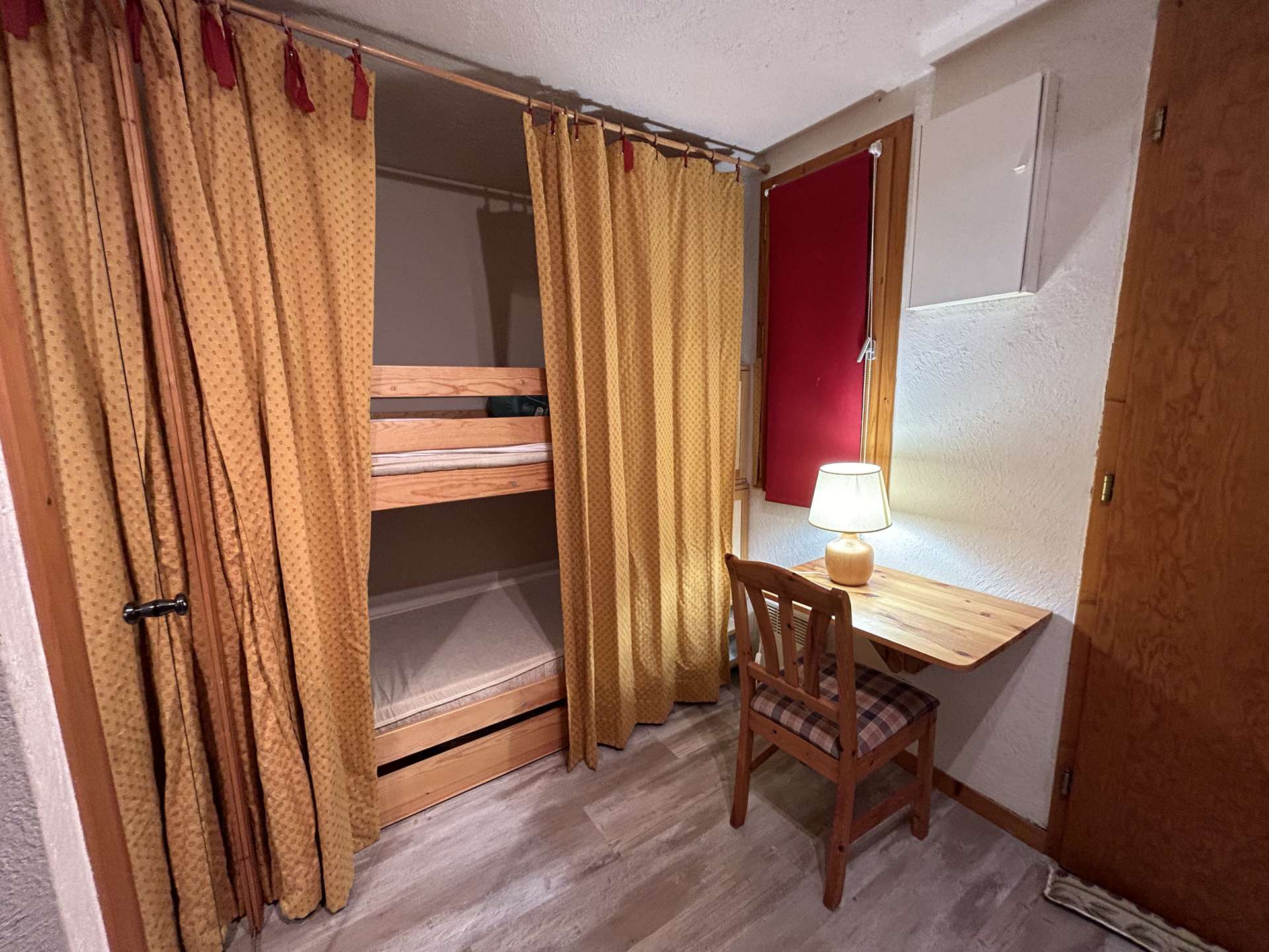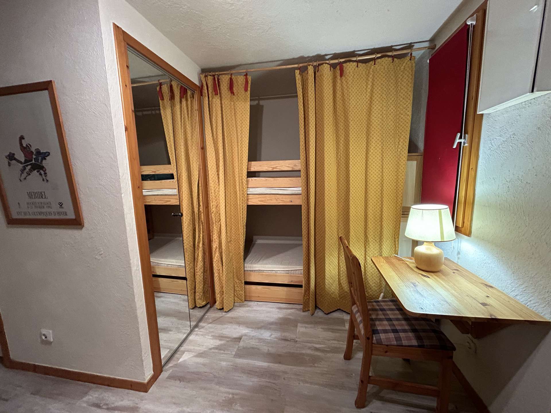 The Hauts de Chantemouche residence is located approximately 130m from the bus stop, 150m from the Morel chairlift slopes and 300m from the shops. This apartment is located on the second floor with elevator. It consists of an entrance with a cabin 1 set of 2 bunk beds, 1 equipped kitchen opening onto a living room with a 140 sofa bed, a television and balcony offering you a nice view of the West slope, a bathroom and separate toilets.