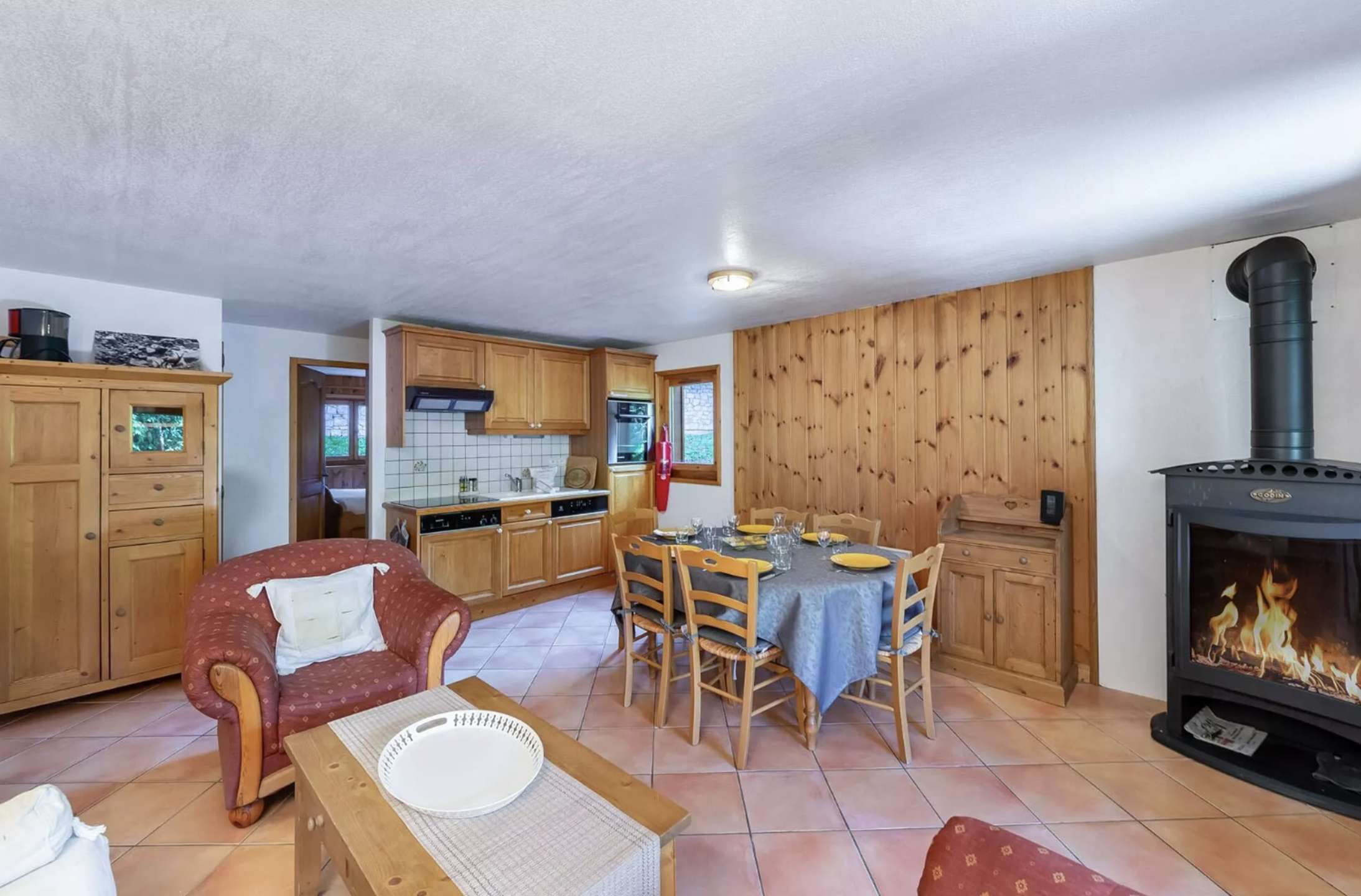 It offers a large bright living room with a very well equipped kitchen with washing machine and open to the living room and a lounge with a wood stove overlooking a loggia terrace South/ West.