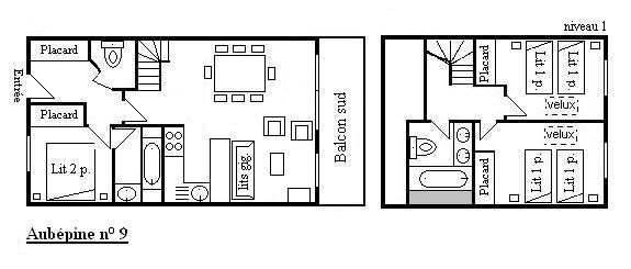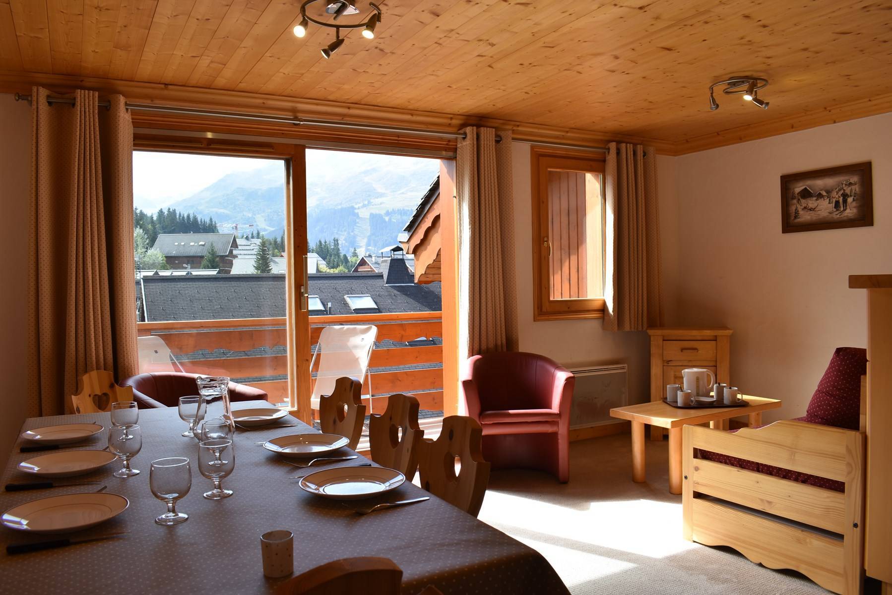 The Aubépine residence is located 80m from the bus stop, 100m from the slopes and 250m from the shops. This holiday apartment, located on the 2nd floor, with lift, consists of an equipped kitchen open to the living room with a dining area, 1 set of pull-out pull-out beds and a south-facing balcony offering a lovely view of the Méribel Valley .