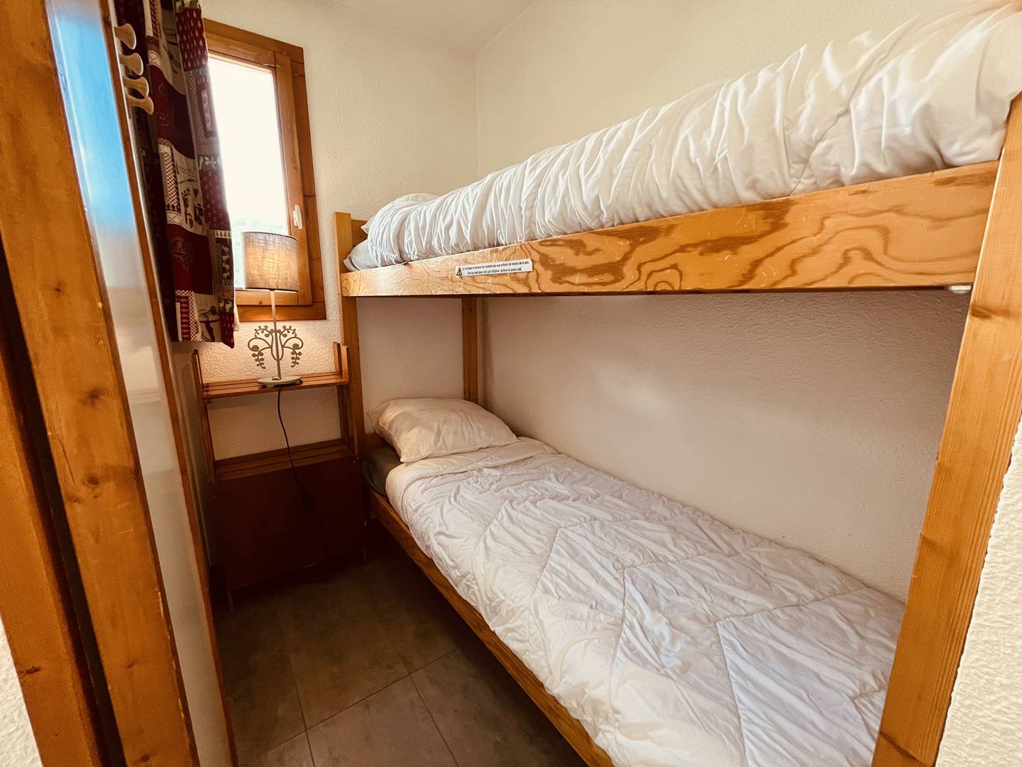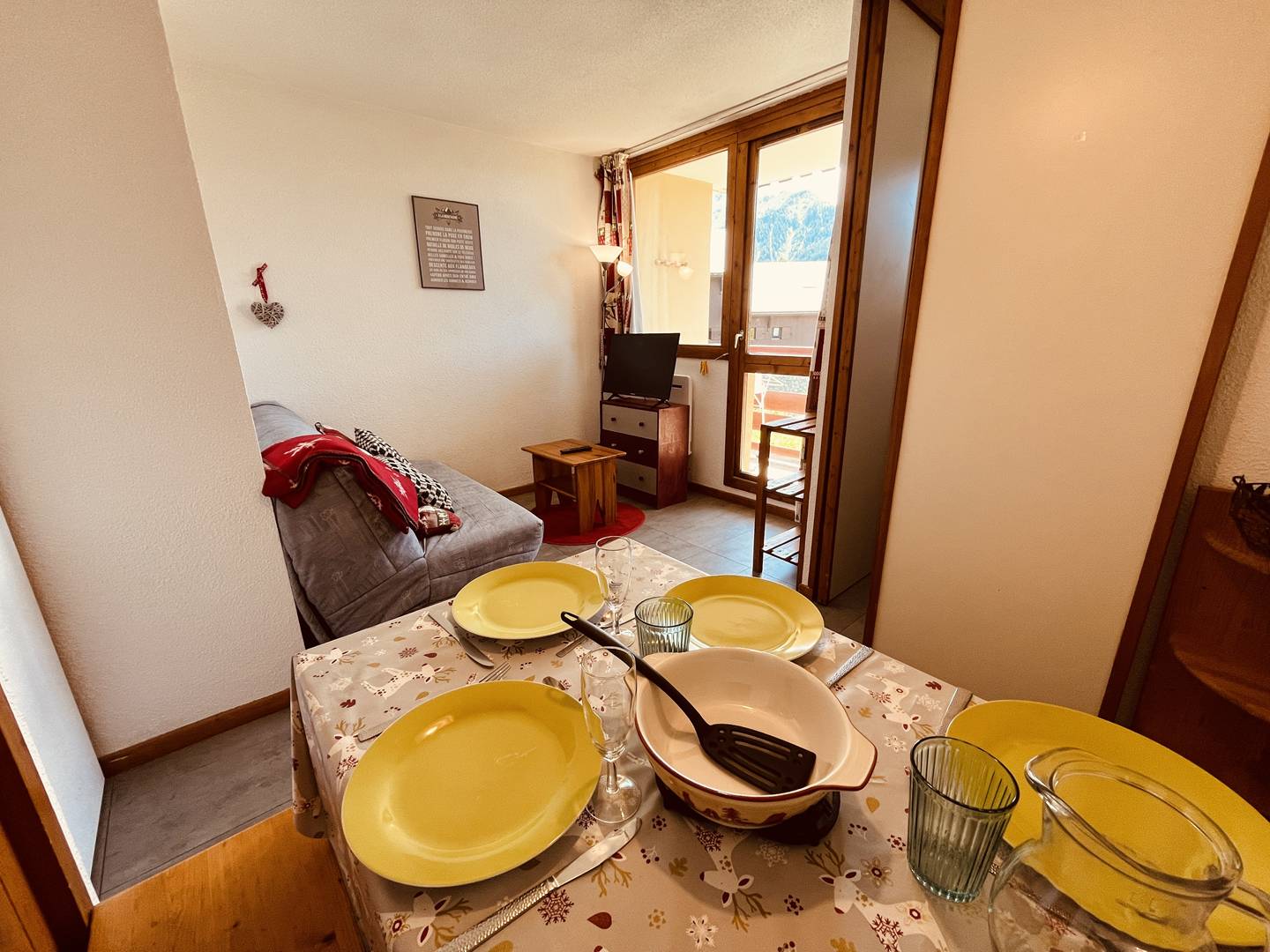 Studio for 4 people of 20 m², located on the 3rd floor with balcony (level -2 compared to the upper entrance to the residence), without elevator, facing South-West and benefiting from the proximity of the resort center and the tracks