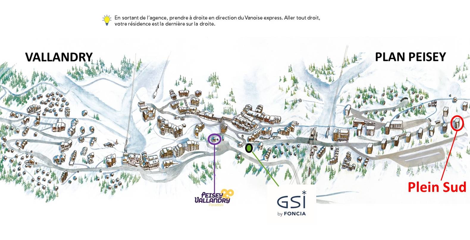 Located in Plan Peisey after the Vanoise Express, this is the last residence along the road. Access to the slopes is along the shopping center and in front of the Belvédère residence.