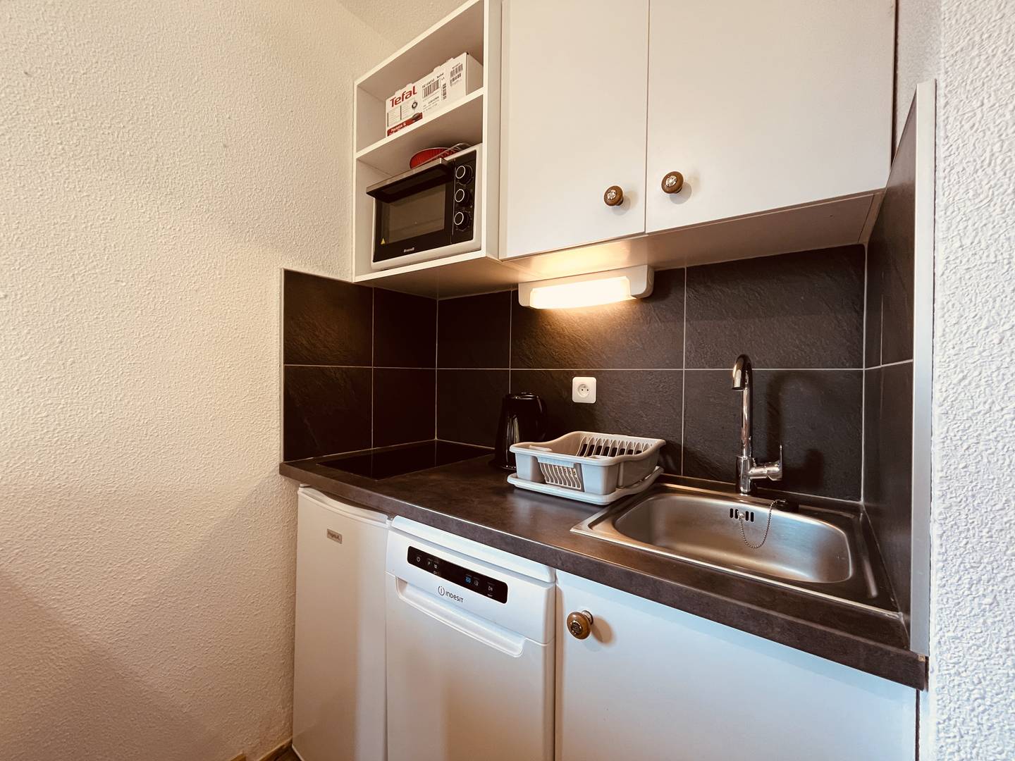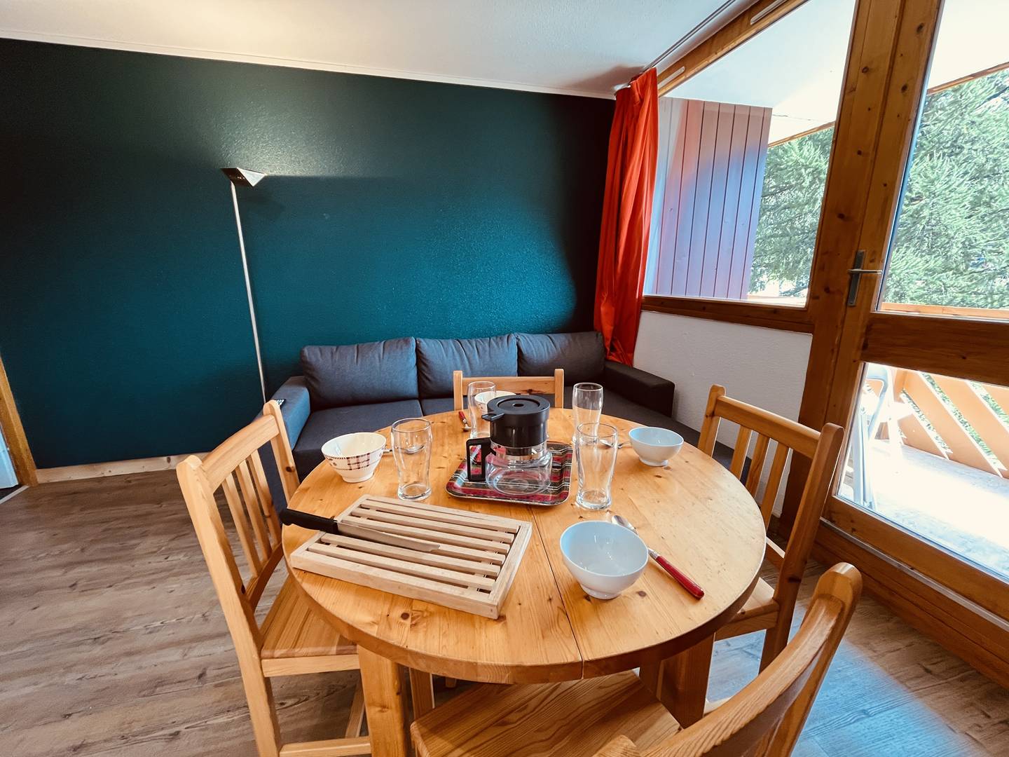 2-room apartment for 4 people, 34 m², located on the 4th floor with balcony (level 1 in relation to the upper entrance to the residence), no elevator, south-facing and close to the resort center and slopes.