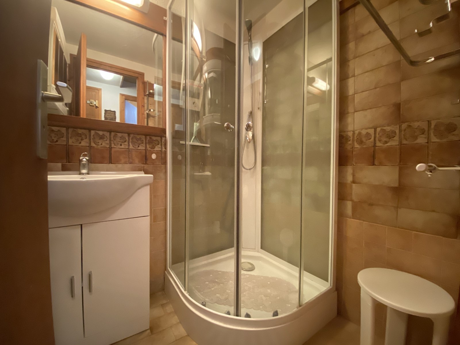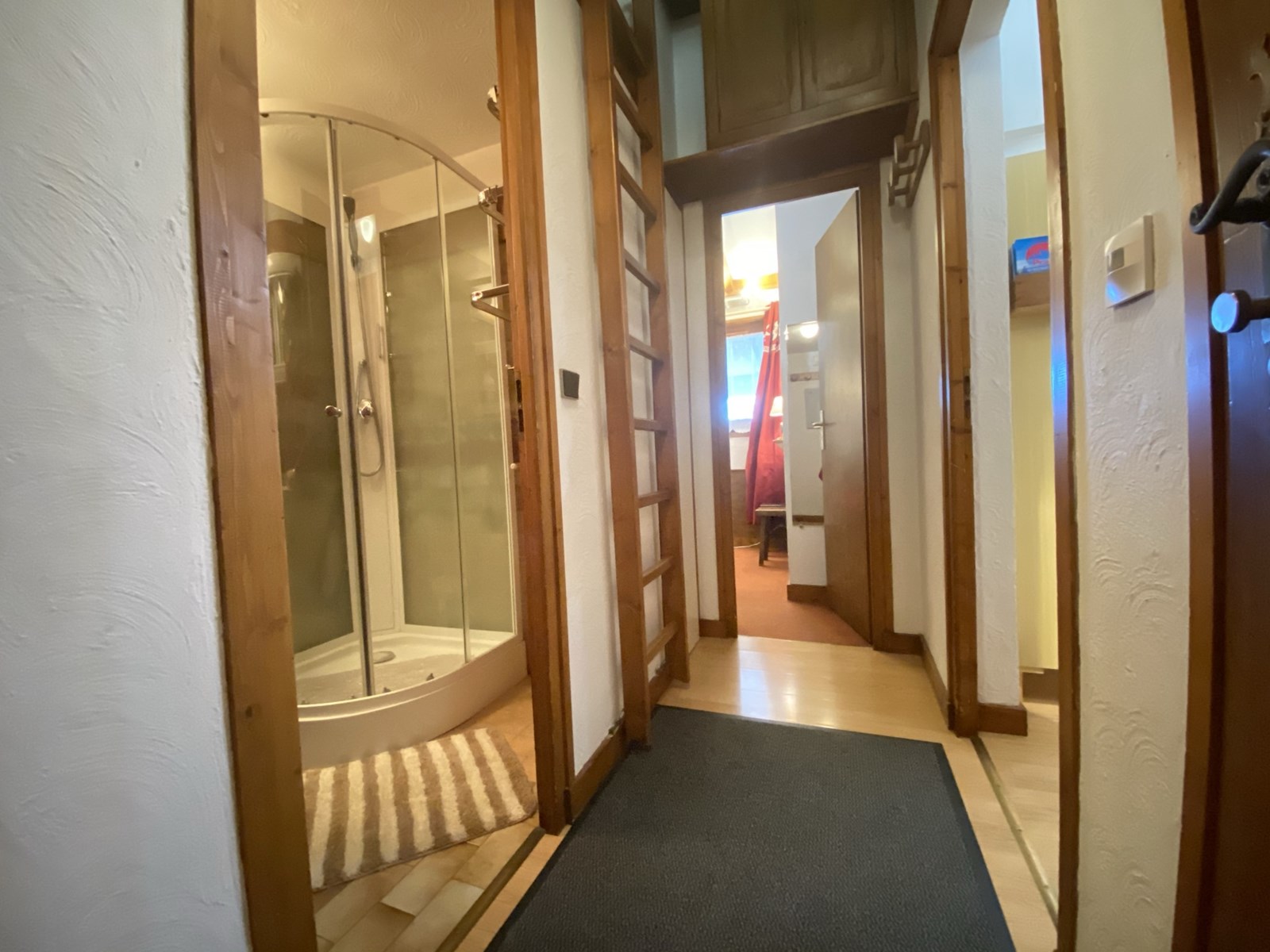 This holiday apartment has an entrance hall, a bedroom with 3 single beds and a pull-out bed, a lounge/living room with a pull-out sofa bed, a fully-equipped kitchenette, a mezzanine with a double bed for two people, a shower room and a separate toilet.