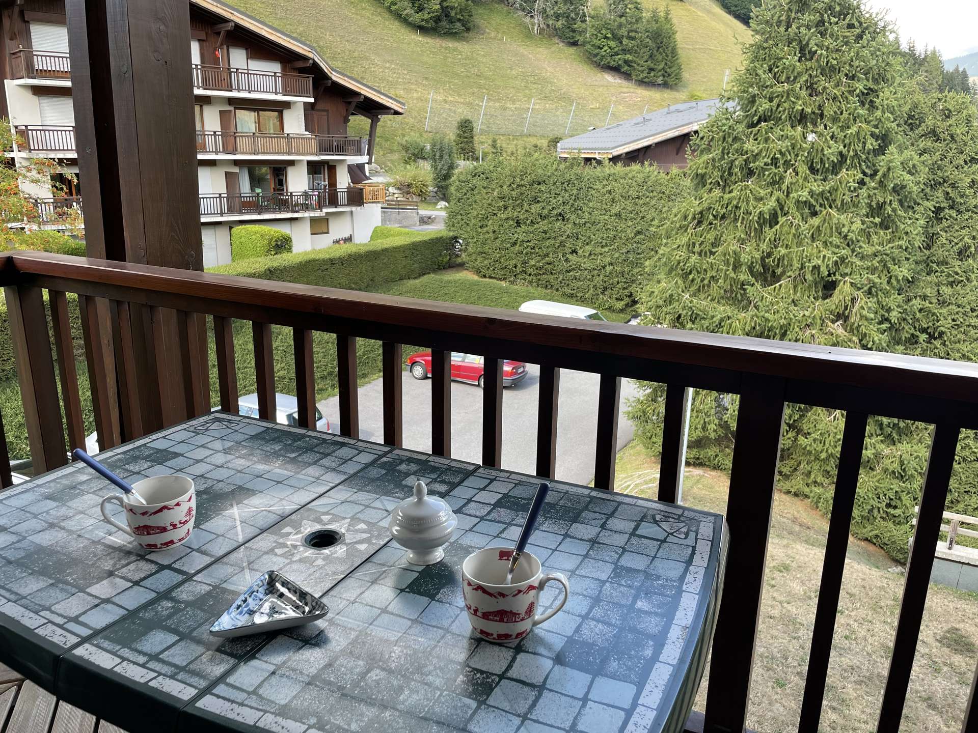 There is a shared outdoor car park at the residence, as well as a private ski locker. The east-facing balcony offers views of the surrounding mountains.