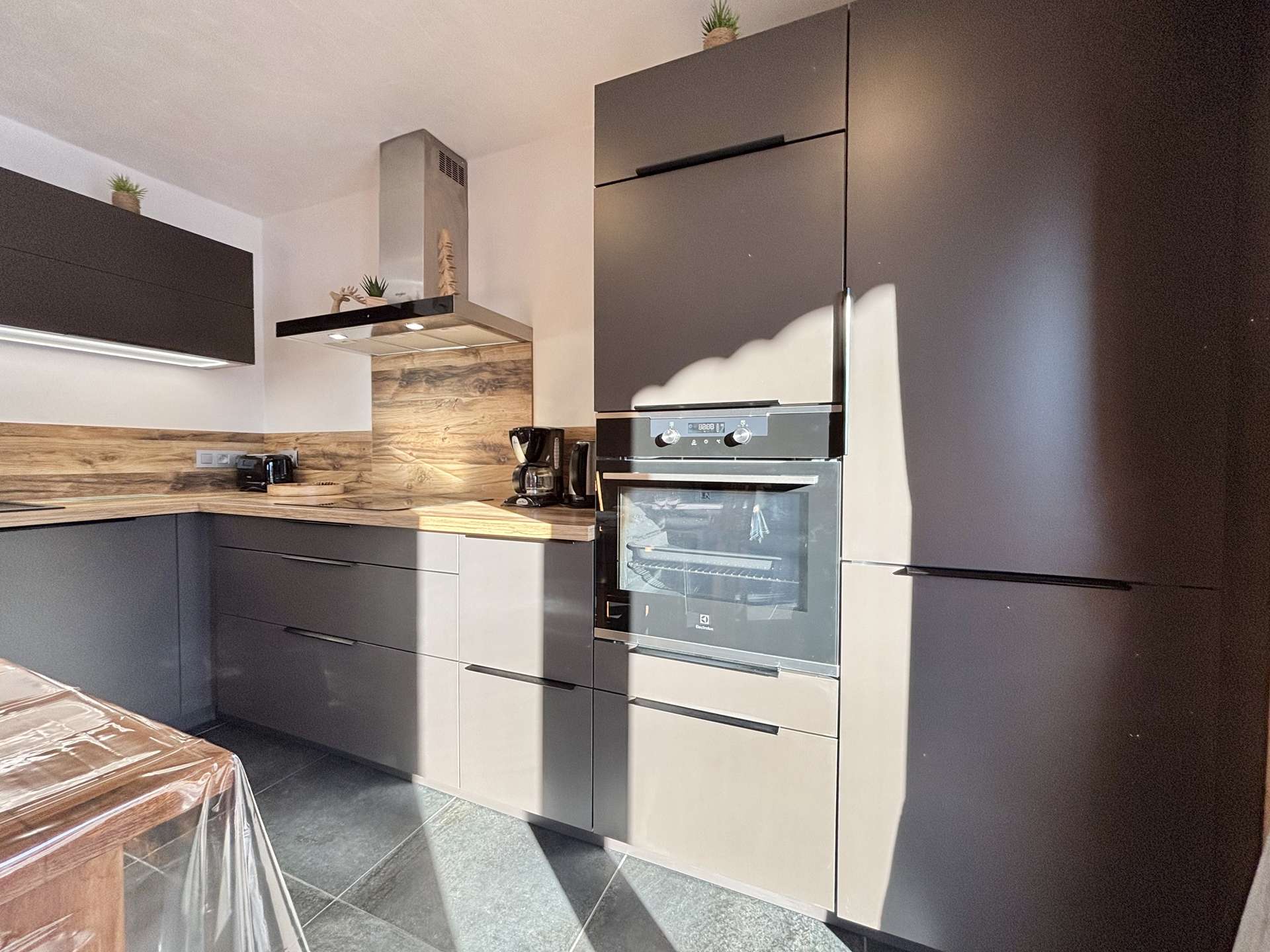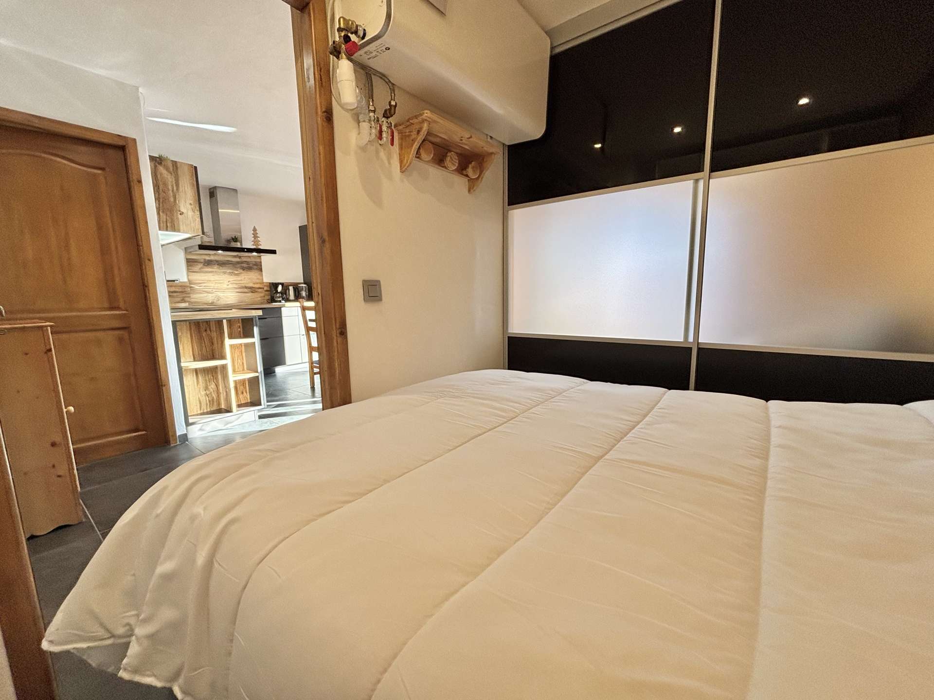 This brand new holiday apartment, located on the ground floor of the residence, comprises a living room with a sofa bed for two people, a fully equipped kitchenette, a alcove with a double bed for two people and storage cupboard, a bathroom with shower and a separate toilet.