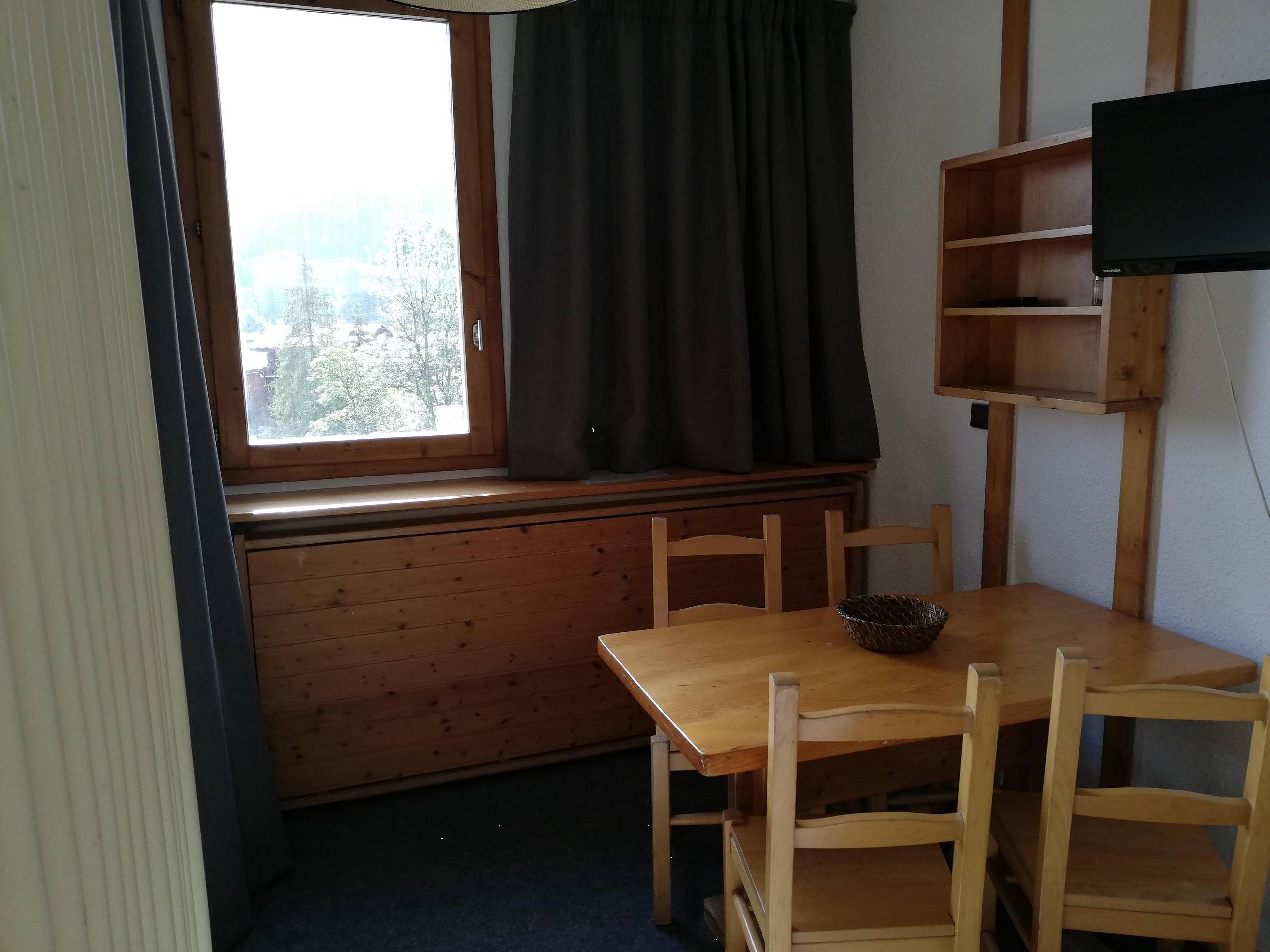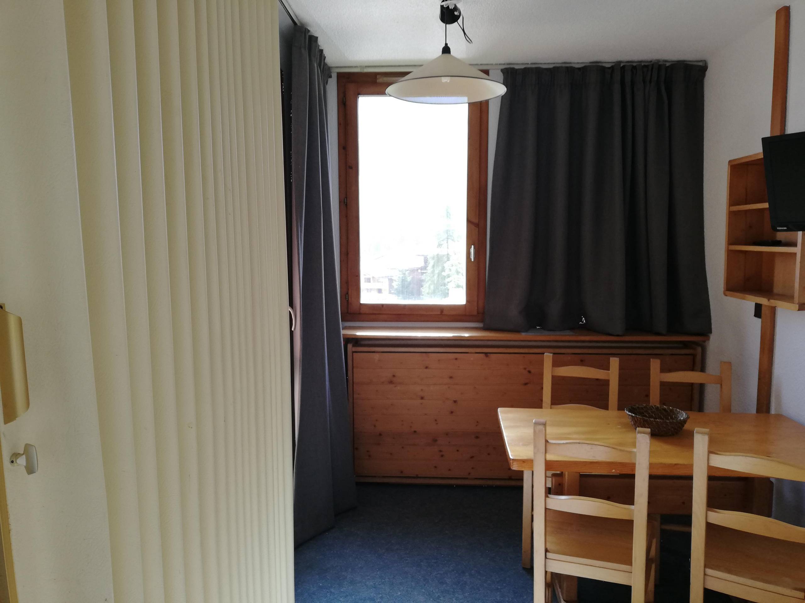 -Dining area with dining table and 4 chairs. TV.