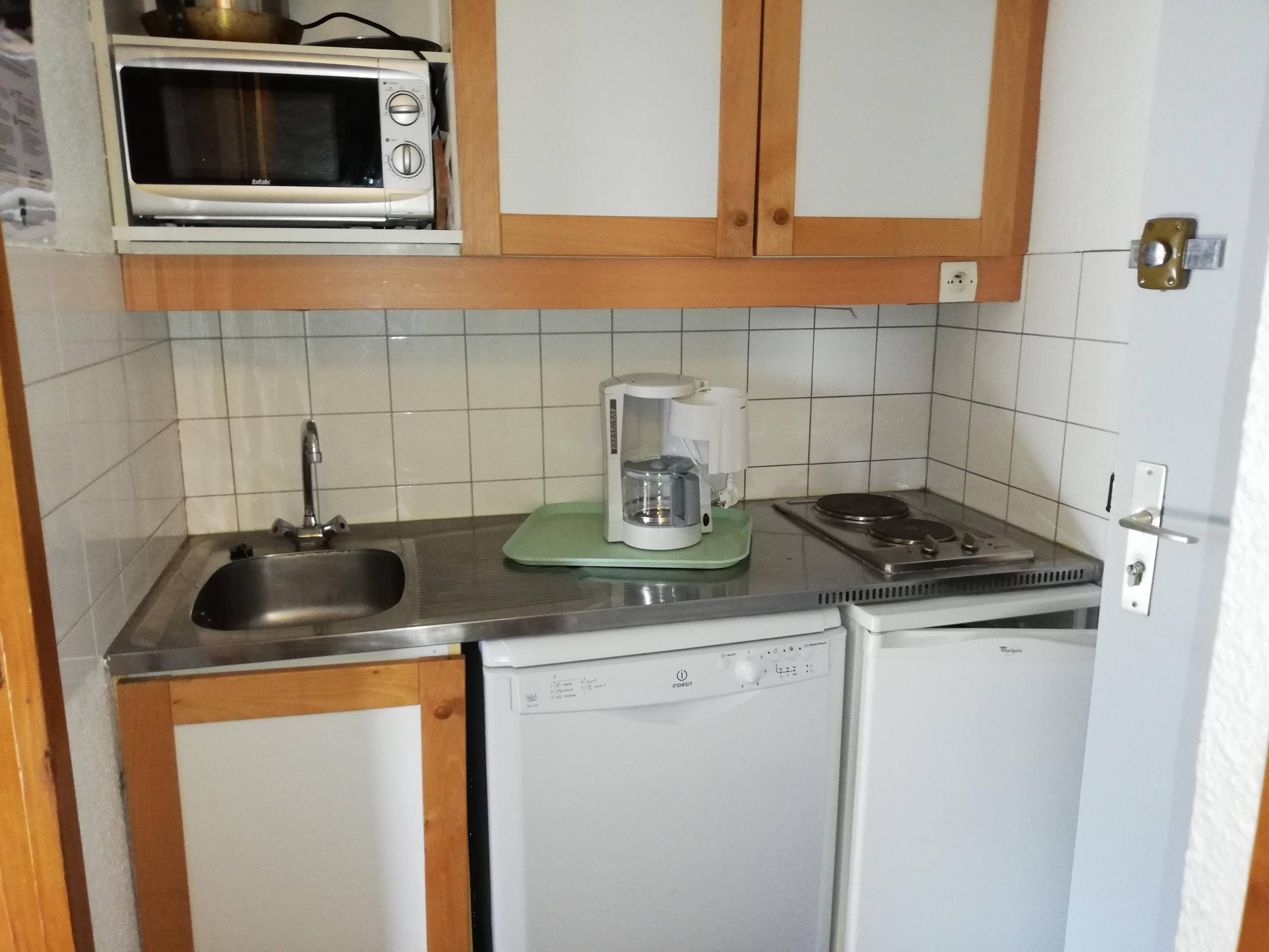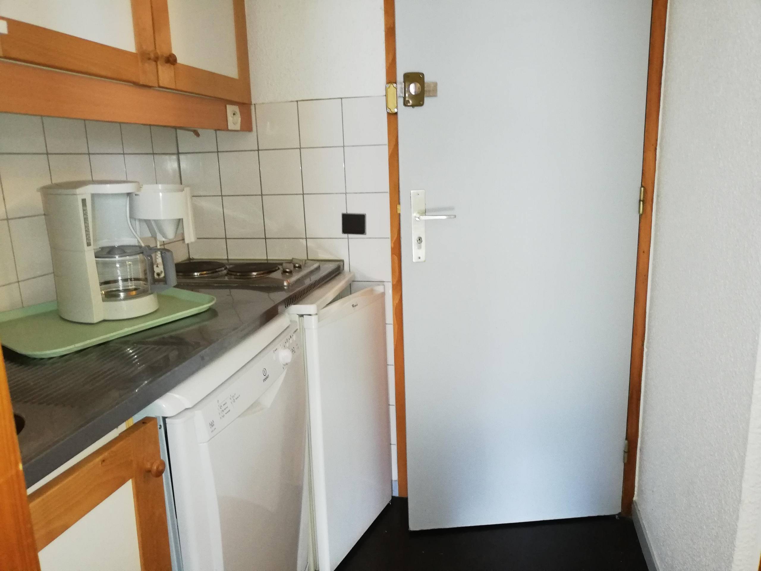 -Kitchen equipped with electric hob, oven, dishwasher, fridge, filter coffee maker.