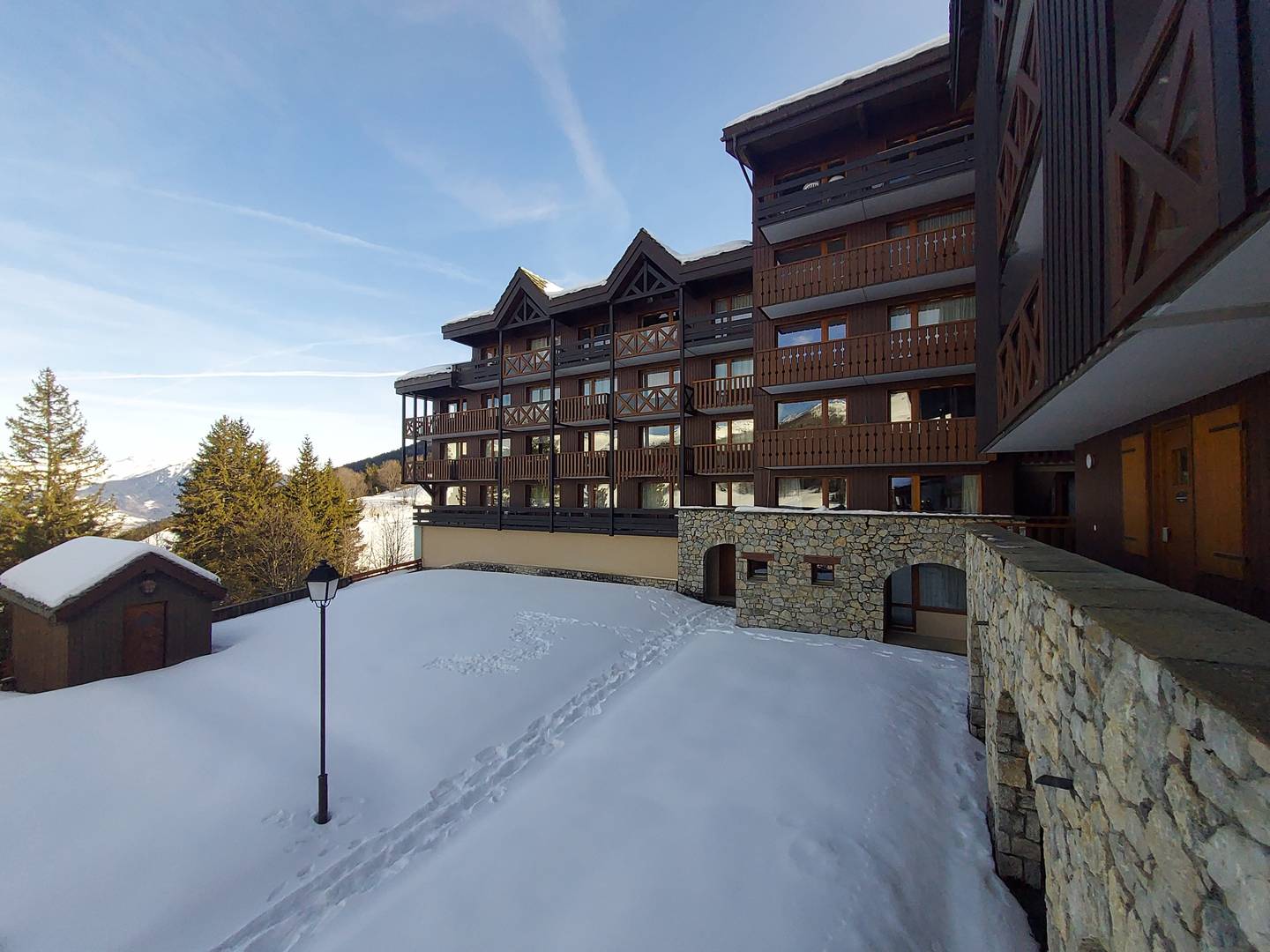 Located in the hamlet of Crève Coeur, in the mid-level sector of Valmorel, connected to the center and the hamlet of Mottet by the Télébourg gondola. You will find essential shops nearby (sports shop, bakery, mini-market, restaurant). Paid parking is available at the foot of the residences.