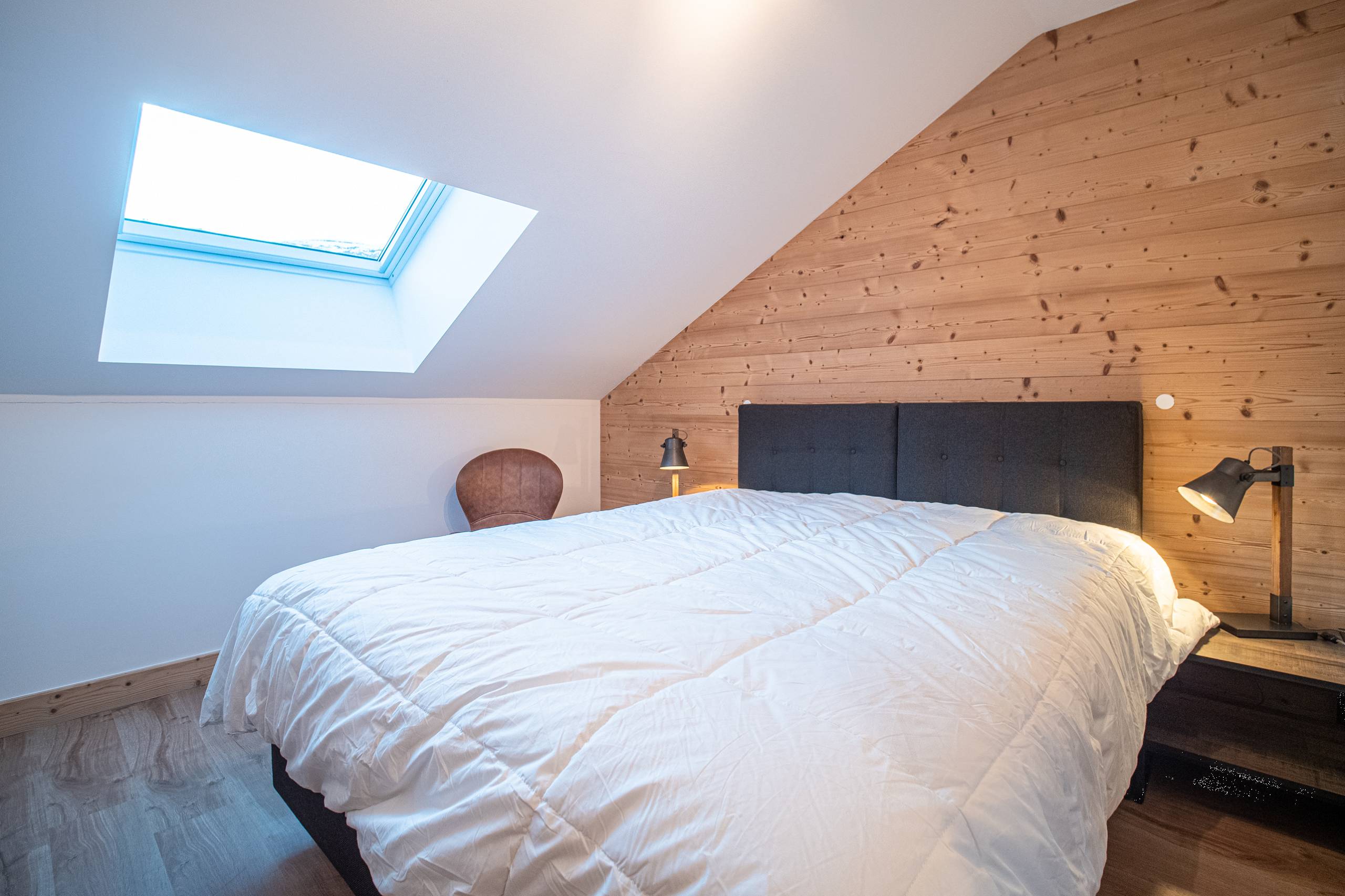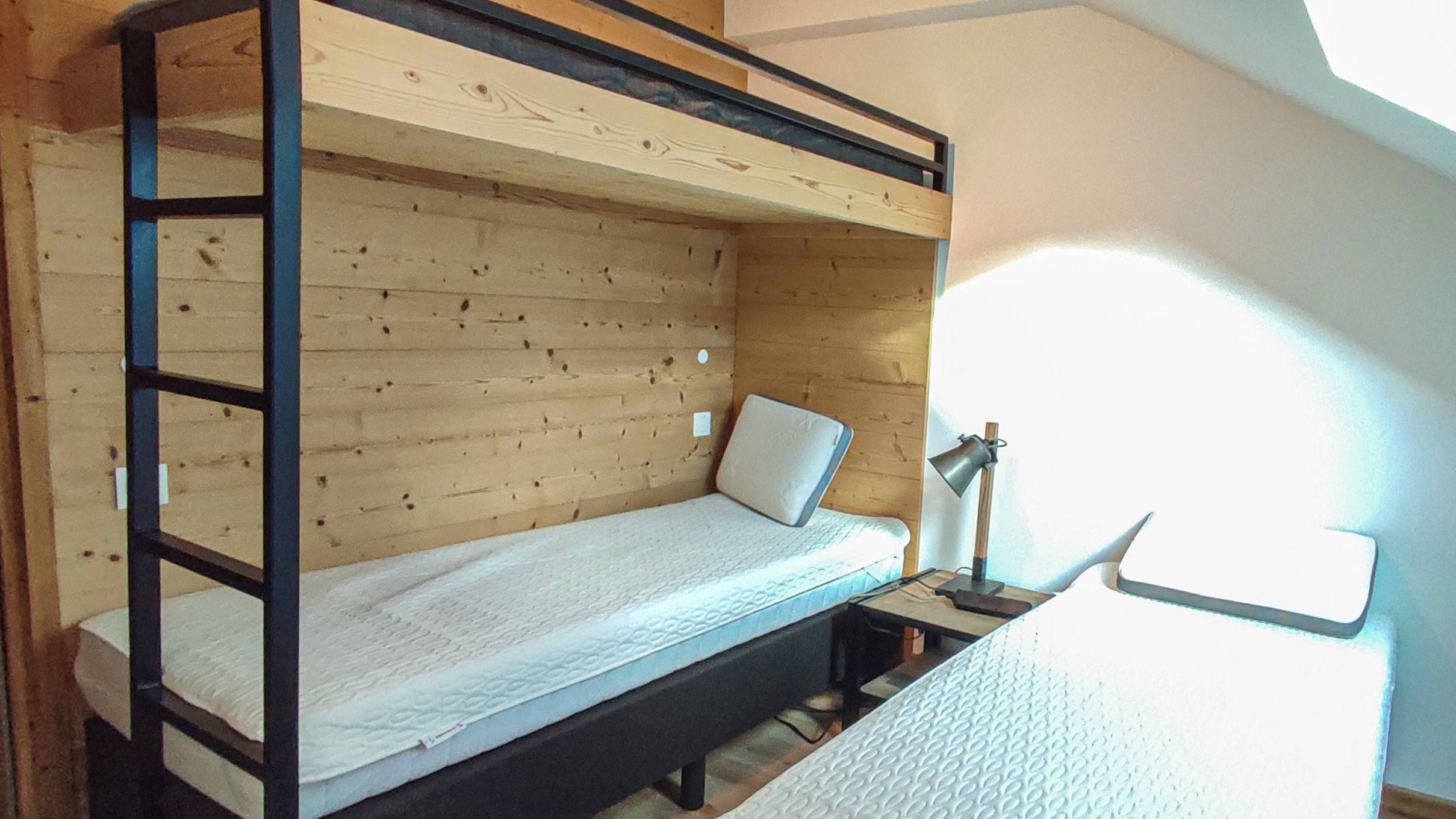 - Room : 2 single beds (2 persons. 80 x 200 cm), with velux