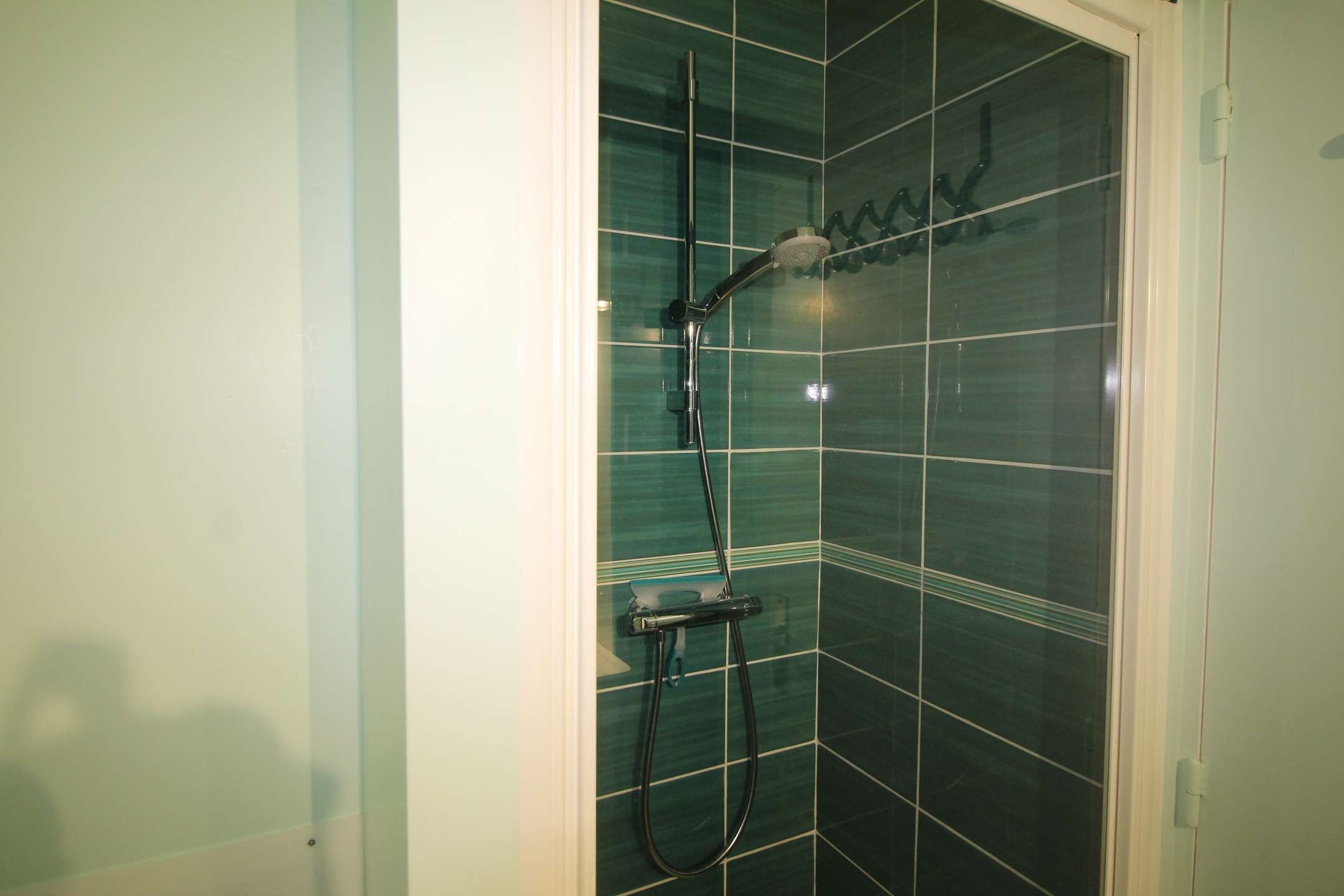 Le logement est composé d'un séjour avec un canapé convertible Clic Clac 2 personnes ( 140 cm) et d'un lit superposé dans la même pièce , d'une salle de bain rénovée avec douche et des WC.
