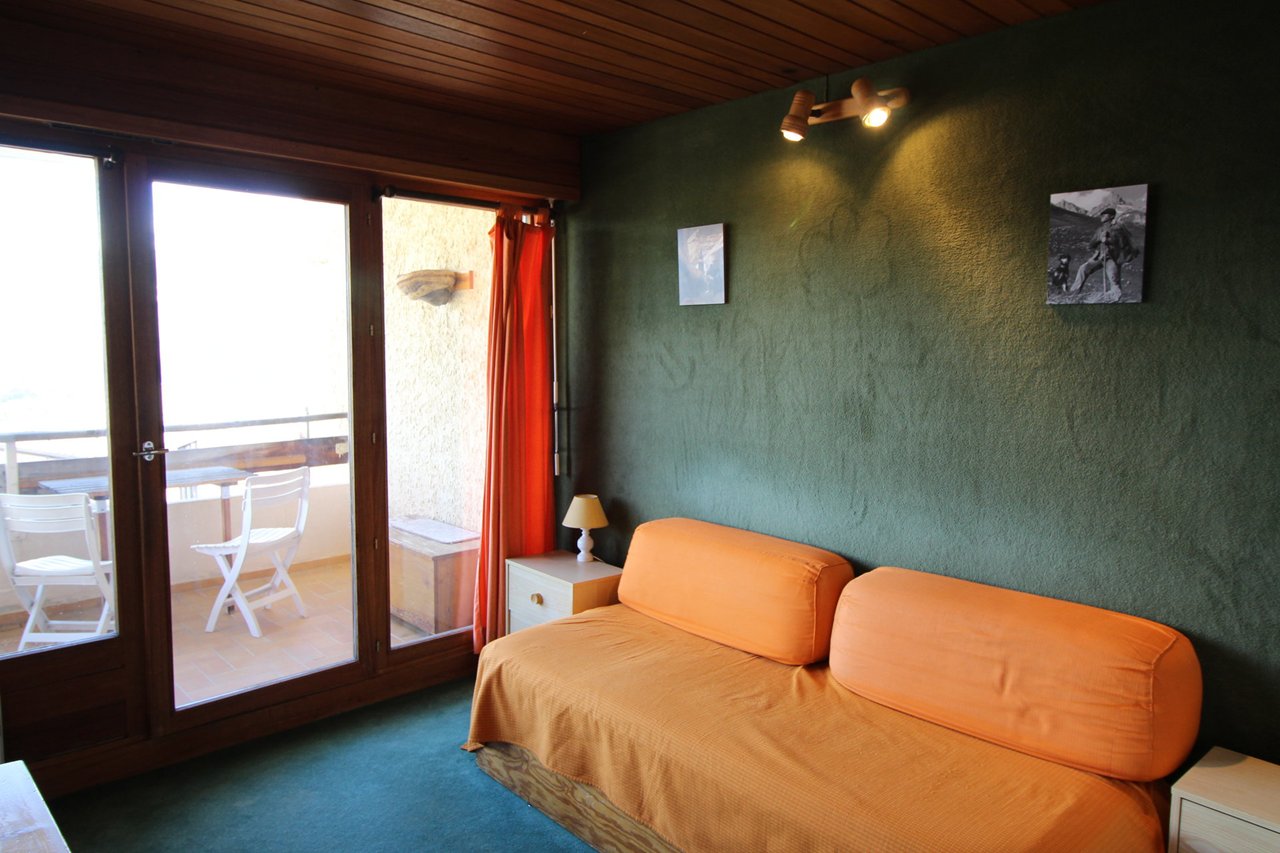 Studio cabine bien placé au pied des pistes. Le balcon sud-est offre une vue dégagée sur les massifs de l'Oisans.