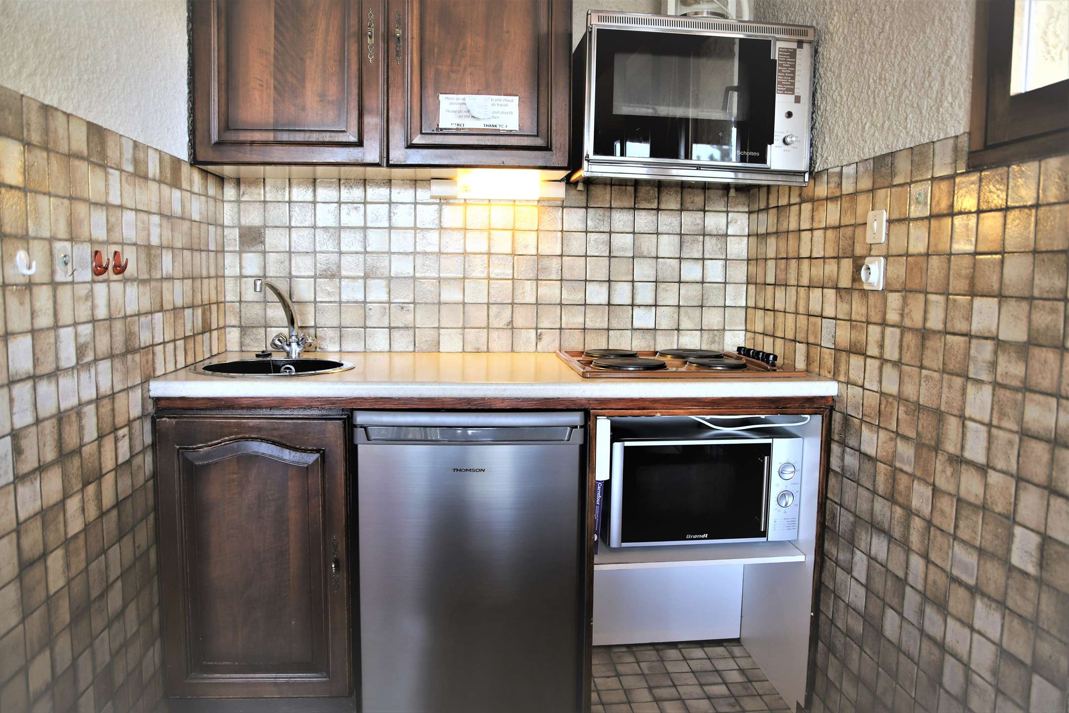 Le logement est composé d'un séjour avec un canapé convertible gigogne (2 personnes), d'un coin cuisine entièrement équipé, d'une chambre avec un lit double (2 personnes), d'une salle de bain avec une baignoire et des WC séparés
