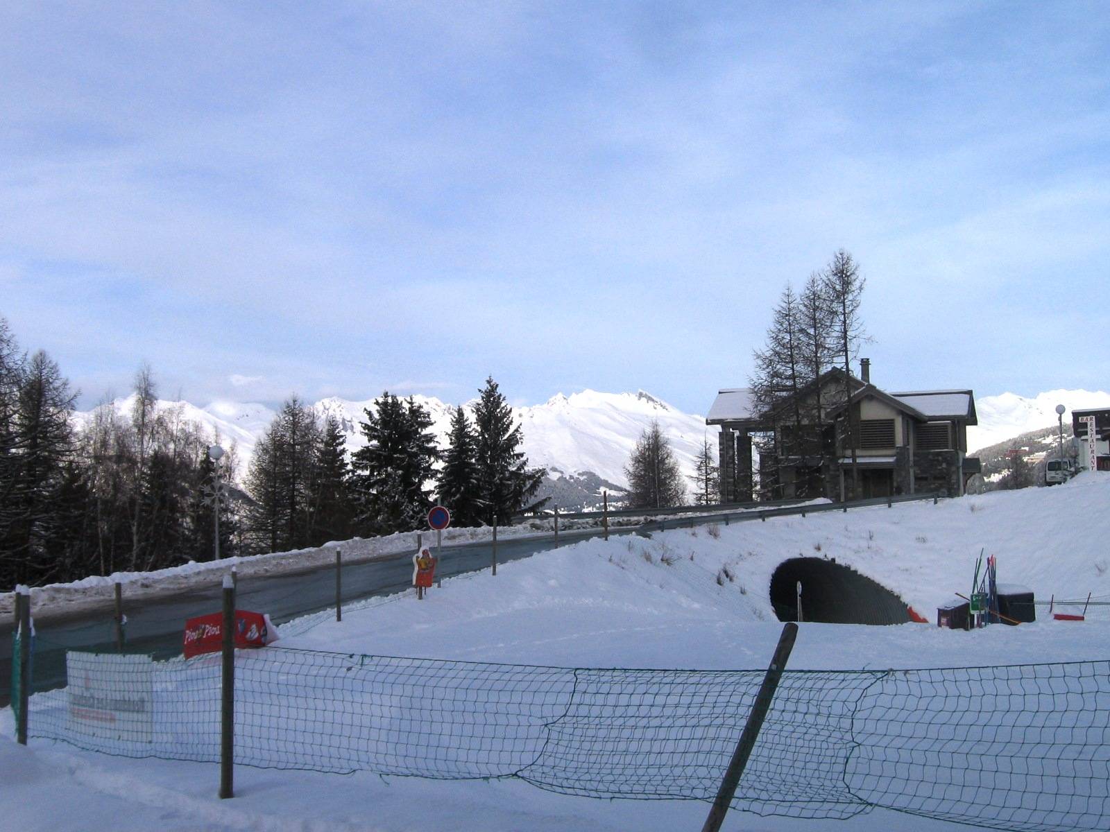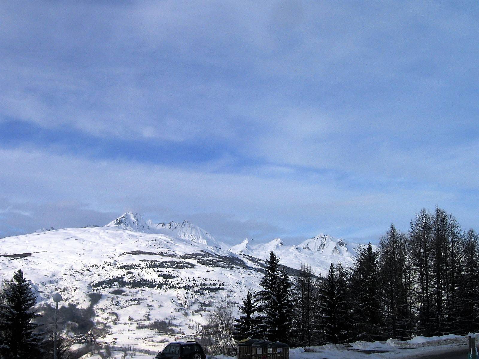 Le balcon avec vue sur le Mont Blanc est exposé Nord. Le casier à skis est dans la résidence.
