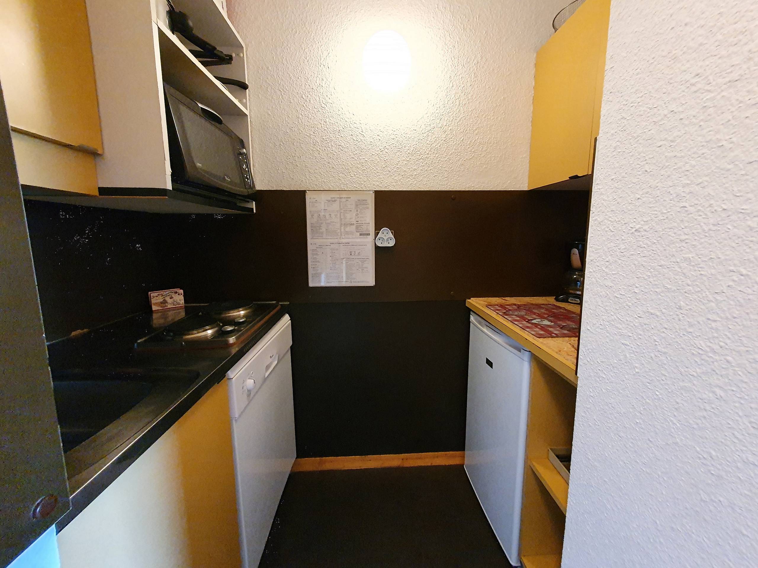 Ce studio divisible par cloison mobile de 27 m², est situé au 1er étage (avec ascenseur) et est équipé pour 4 personnes. Il comprend :