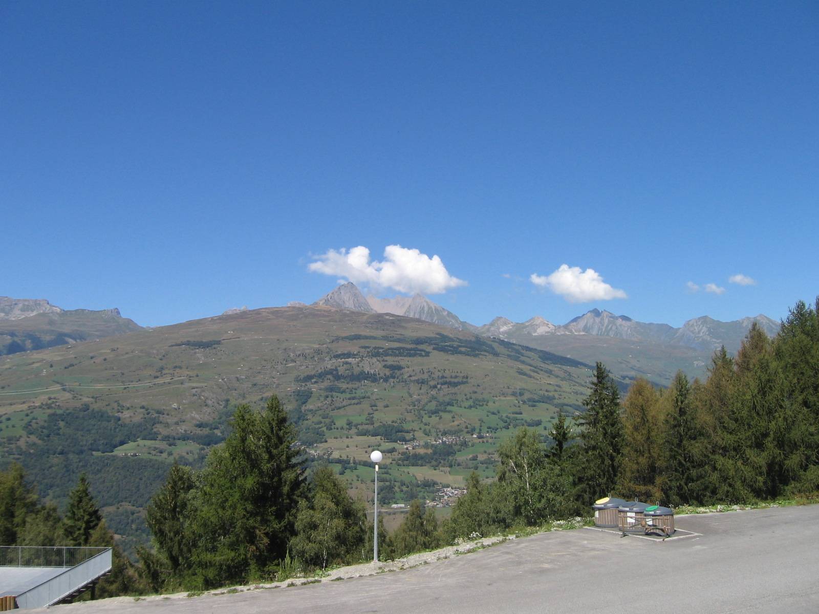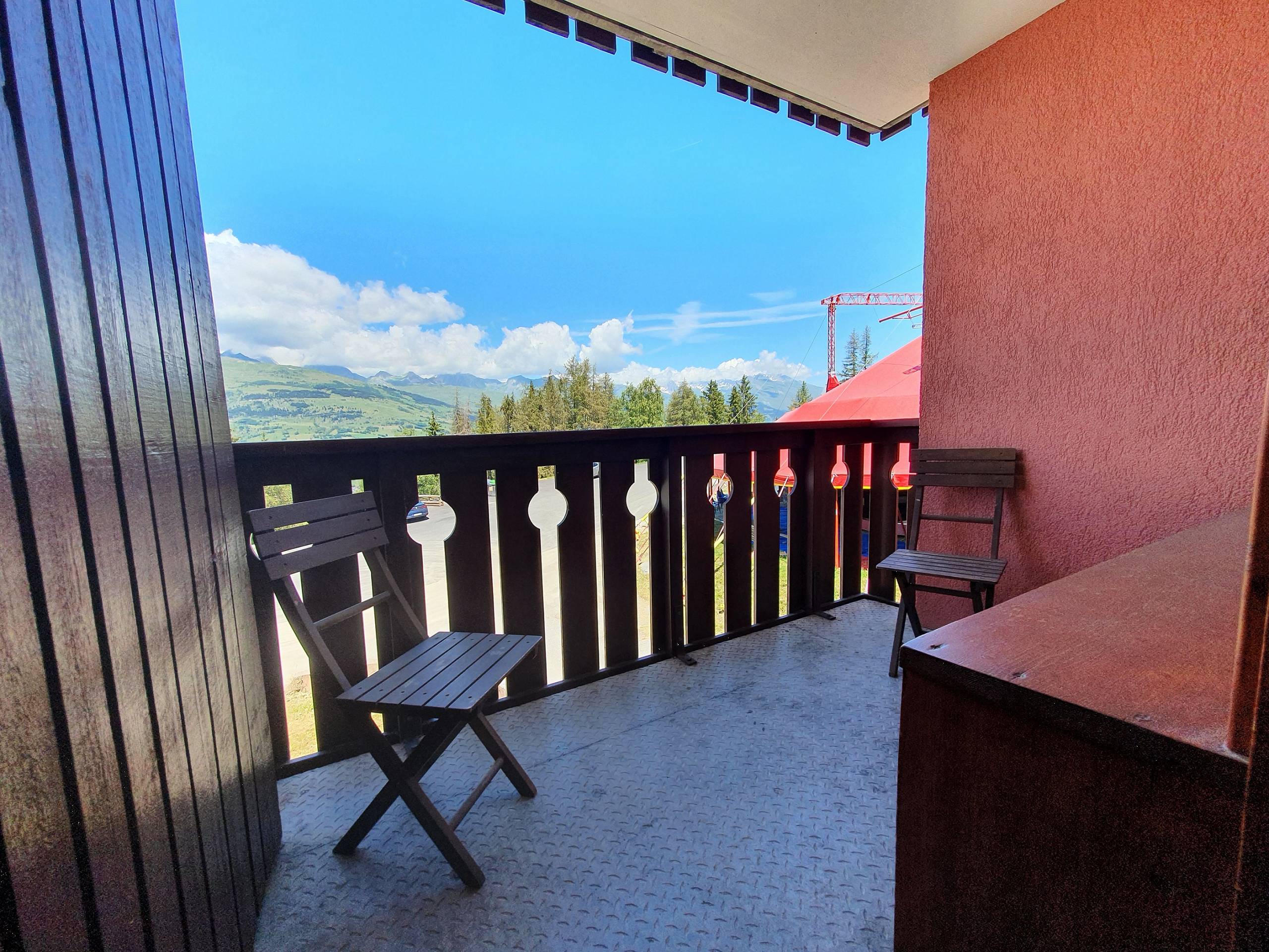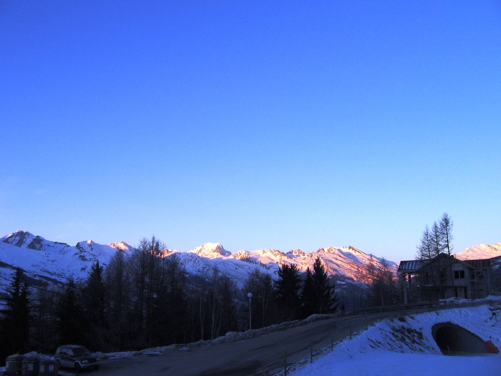 Le balcon avec vue sur le Mont Blanc est exposé Nord. Le casier à skis est dans la résidence.