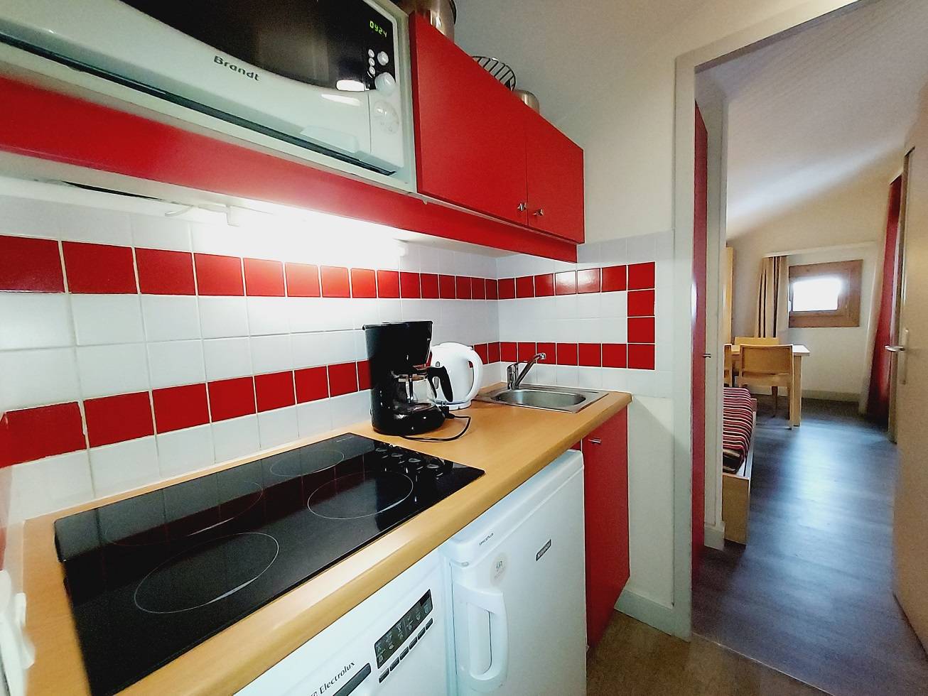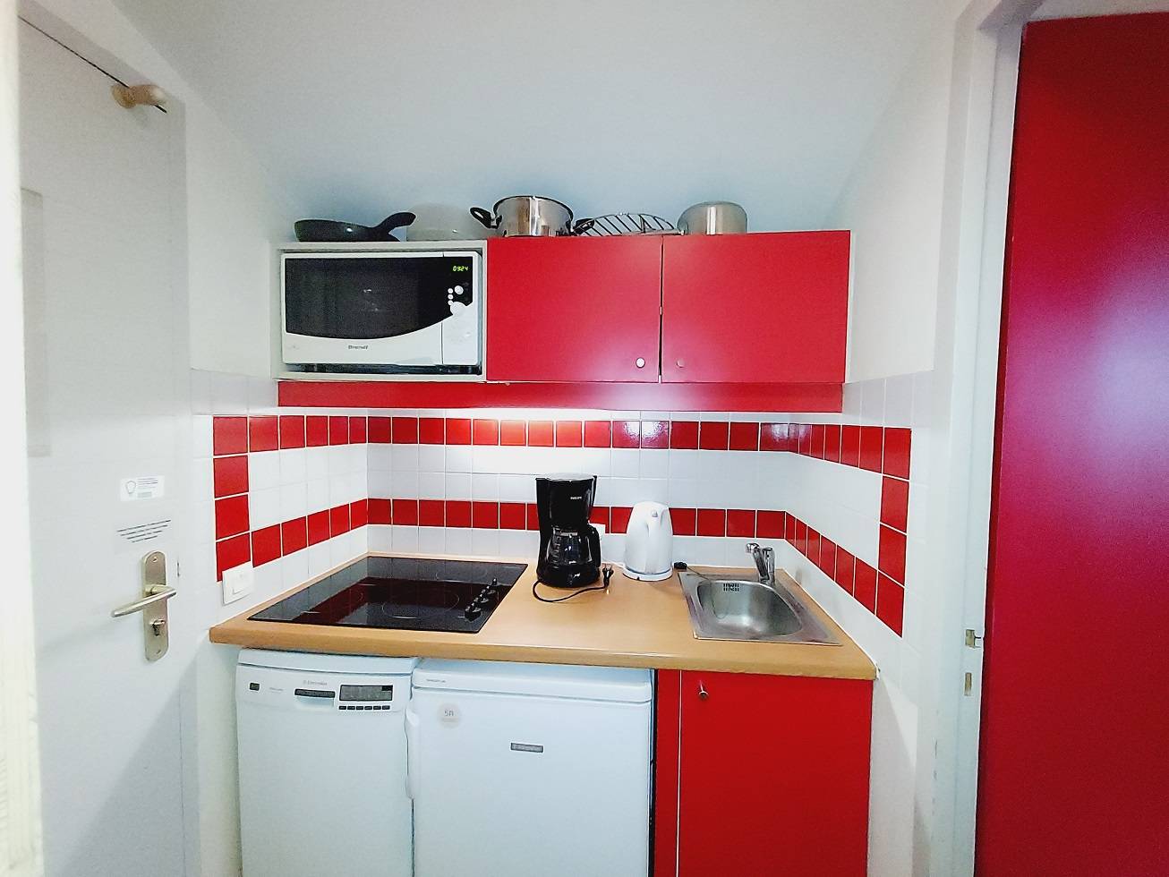 La cuisine est entièrement équipée avec micro-ondes, réfrigérateur, plaques vitrocéramiques 4 feux, cafetière, grille pain, bouilloire.