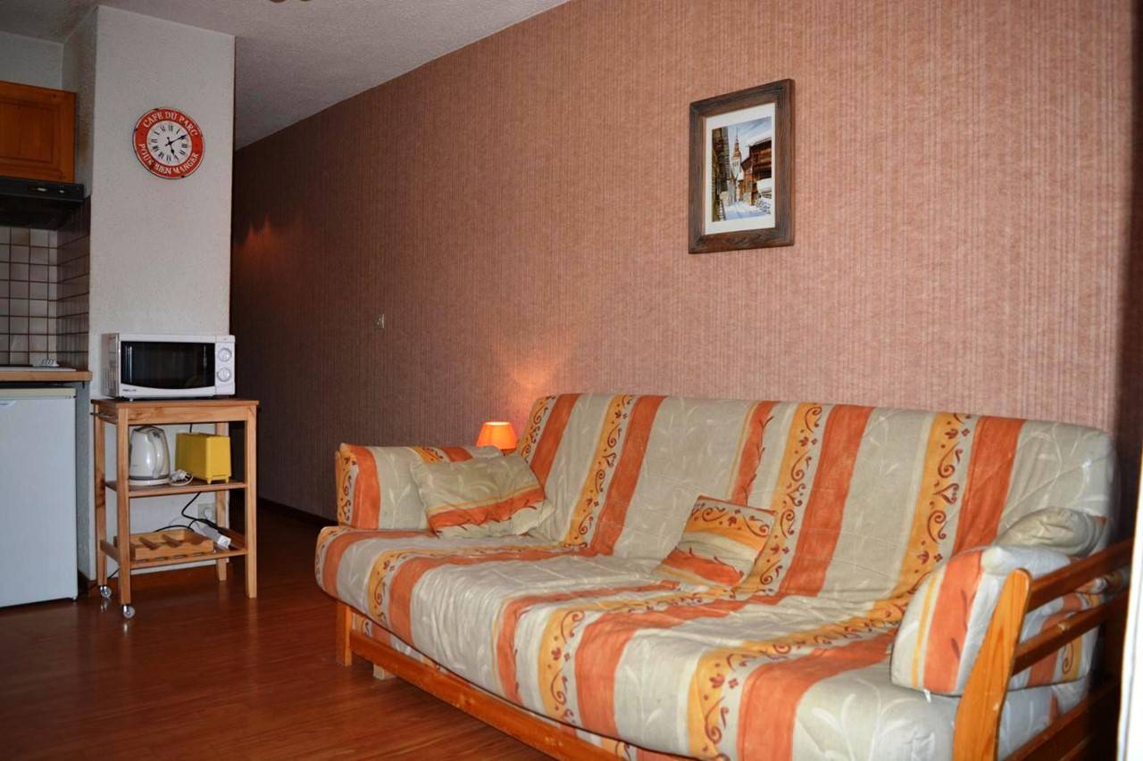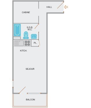 Cet appartement de vacances situé au niveau -2, comprend un séjour avec 1 canapé convertible 2 places et télévision, un accès balcon sud avec vue sur le domaine skiable, un coin cuisine équipé, un coin nuit avec 2 lits superposés , une salle de bains avec WC.