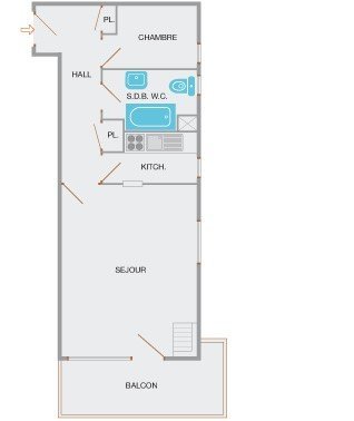 Cet appartement de vacances situé au 1er étage comprend un séjour avec canapé convertible, et télévision avec balcon sud donnant vue sur les pistes, un coin cuisine équipé, une cabine avec 2 lits superposés, une salle de bain avec WC. Arrêt navette à moins de 50 m.